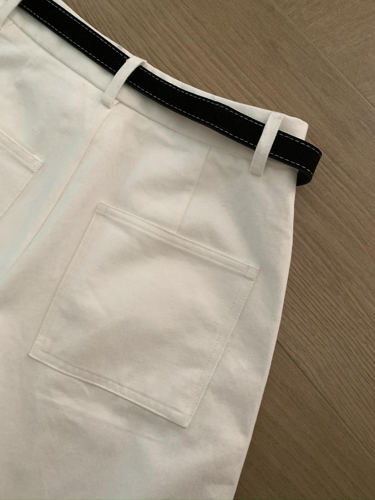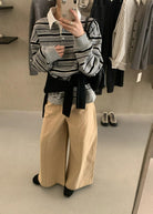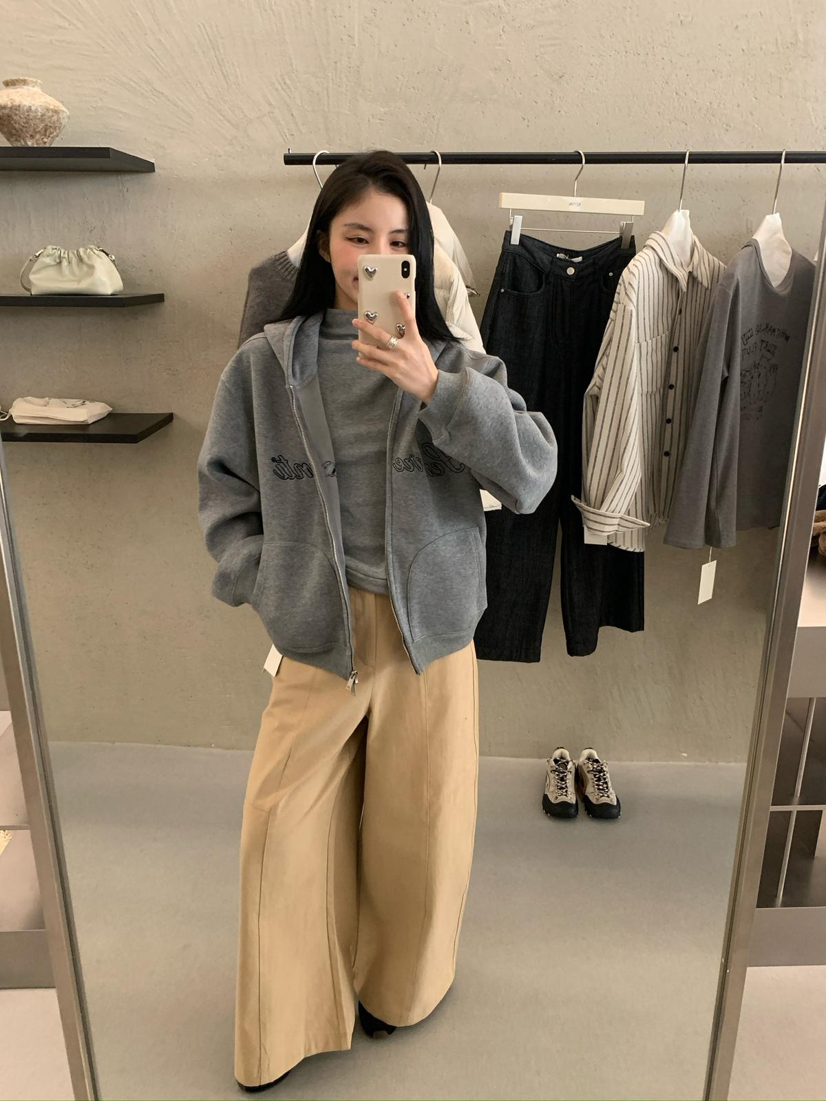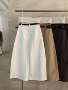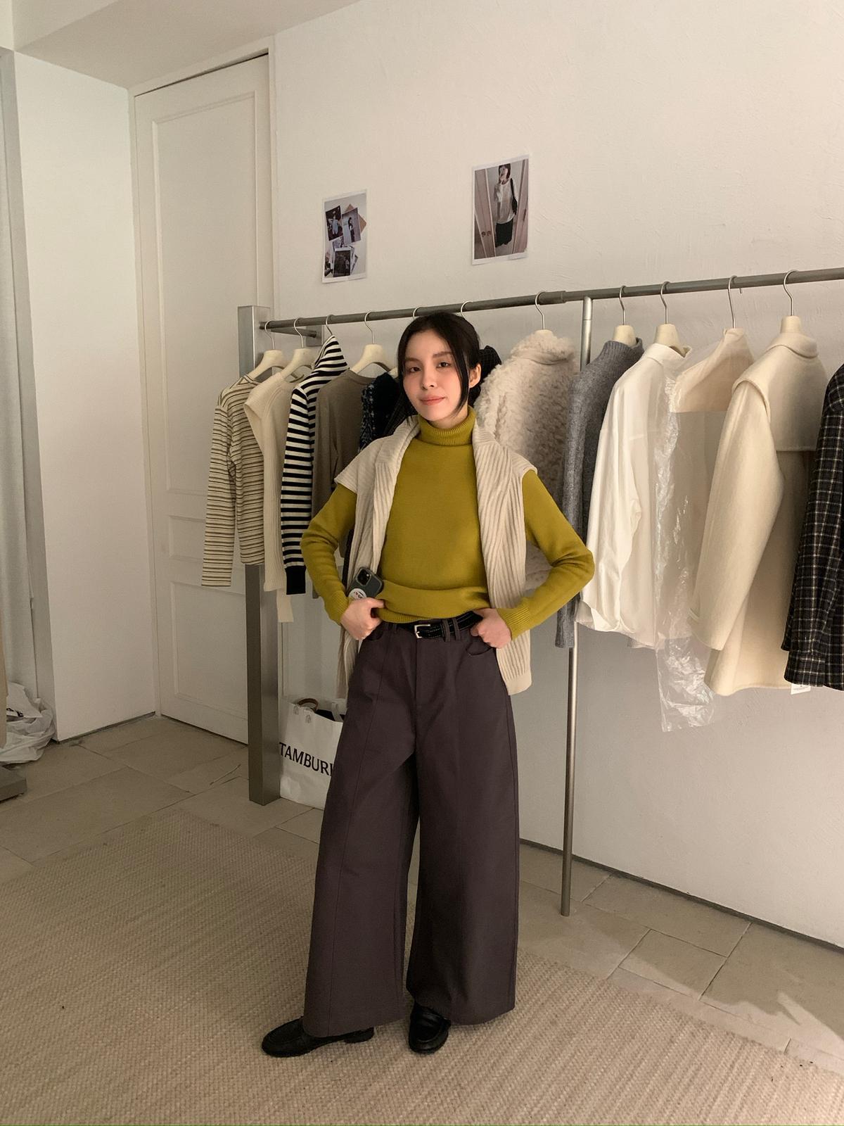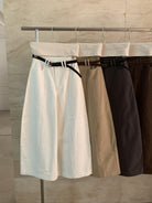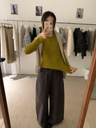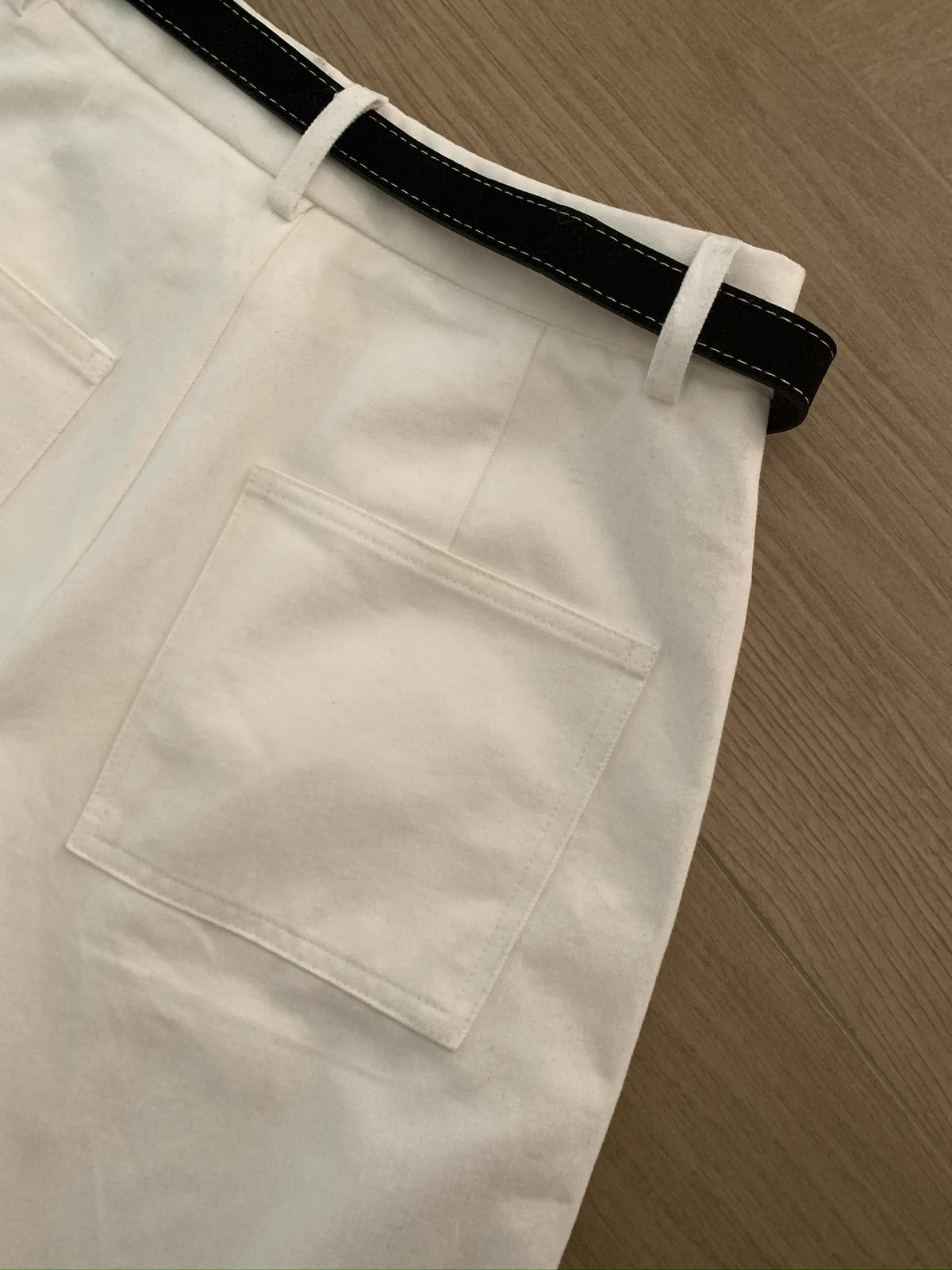 【C8162】簡約高腰磨毛絨感闊腿彎刀型休閒褲(配腰帶)