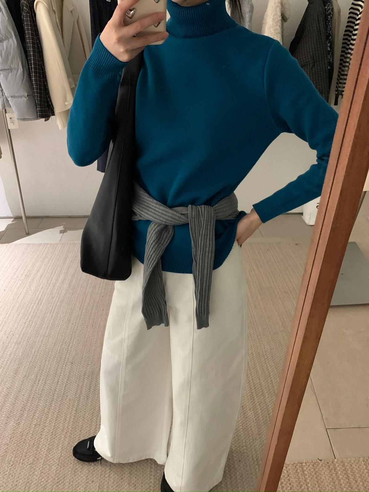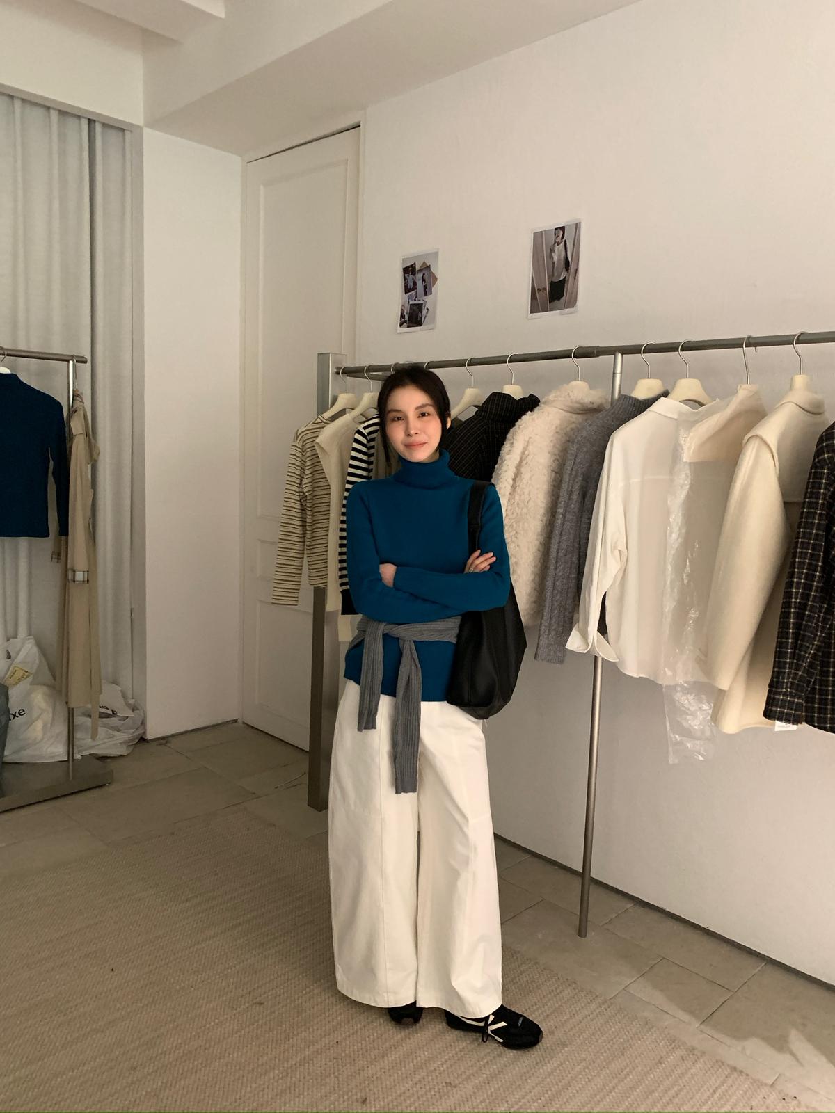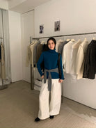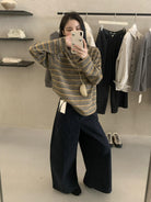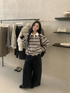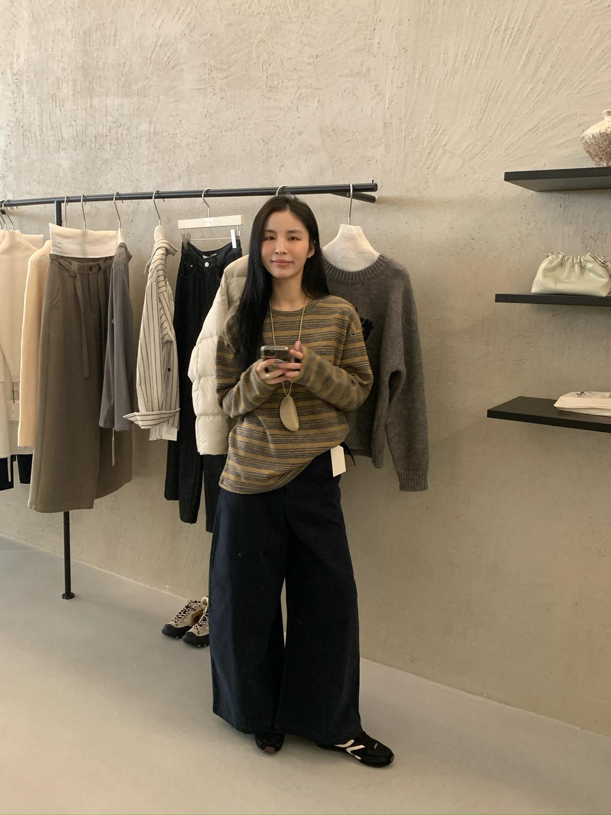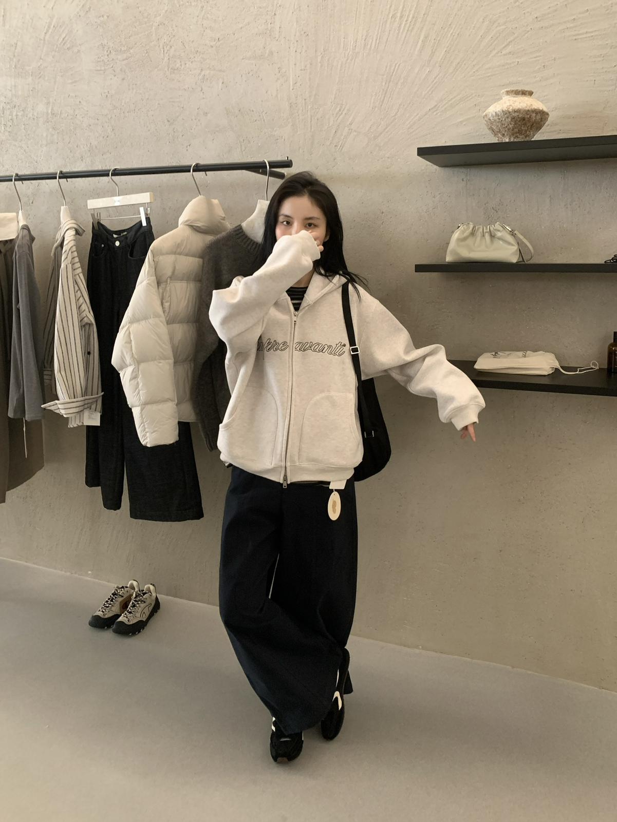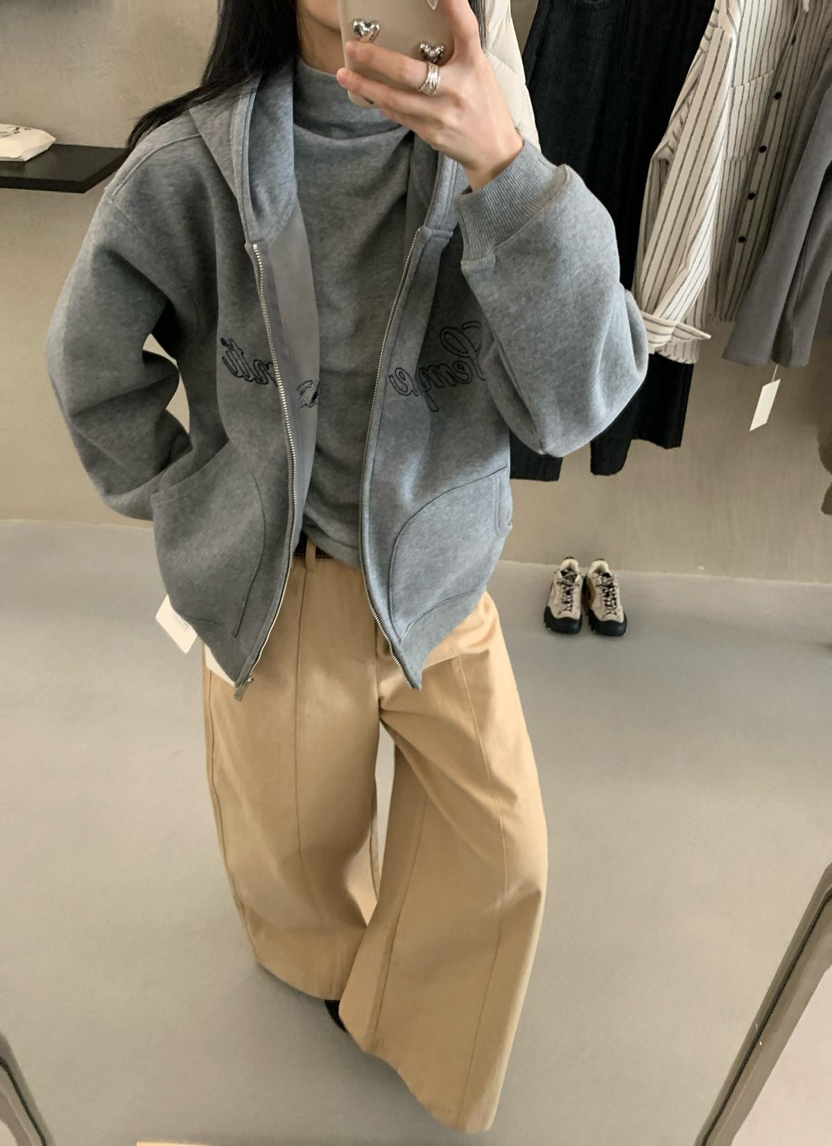【C8162】簡約高腰磨毛絨感闊腿彎刀型休閒褲(配腰帶)