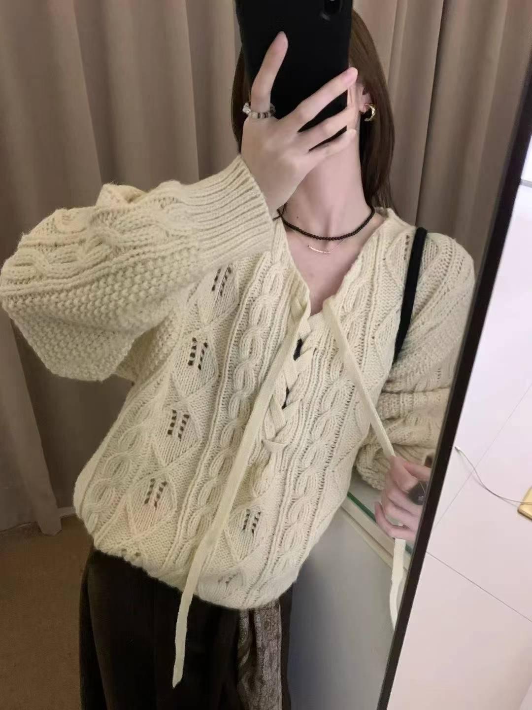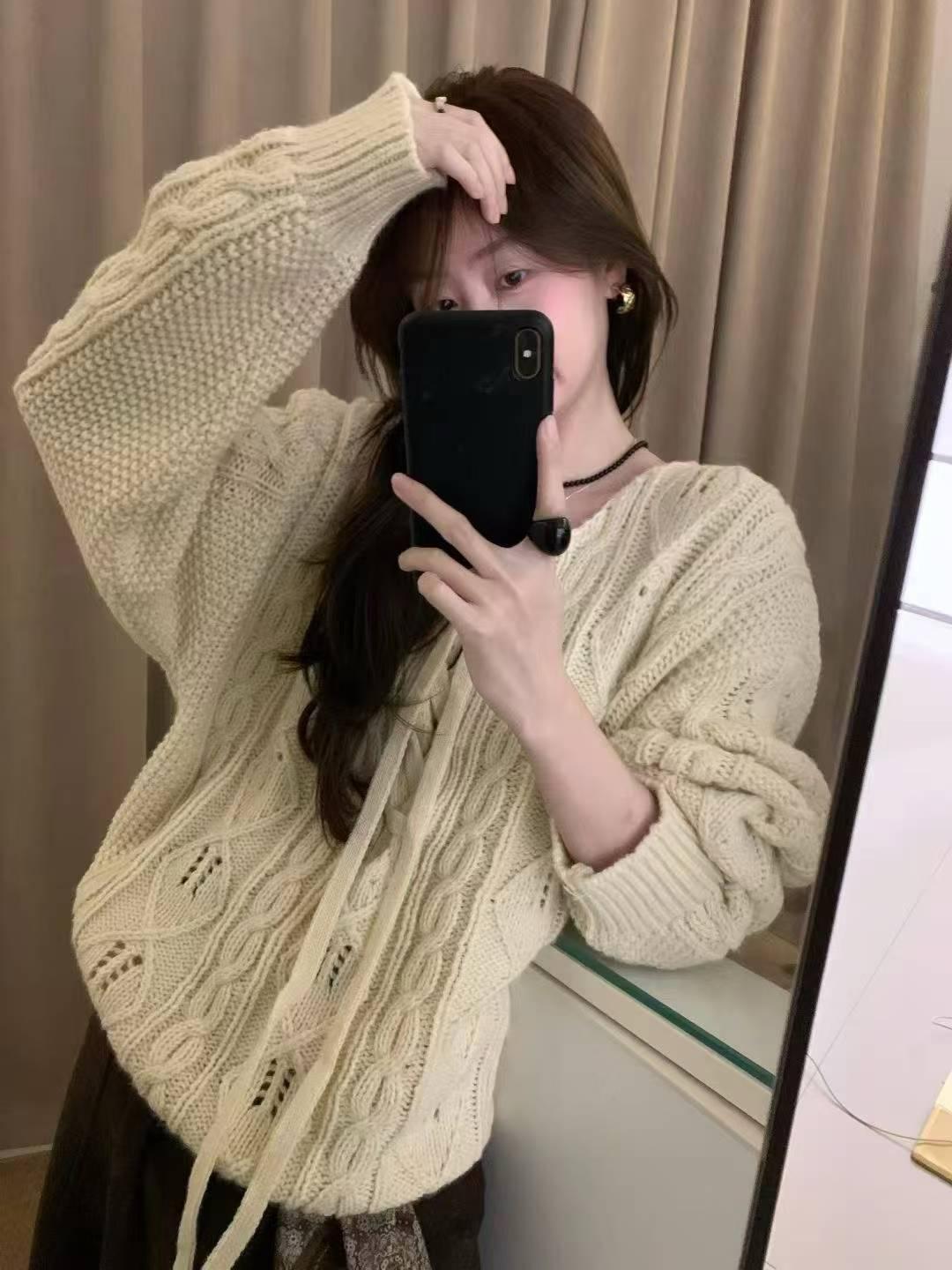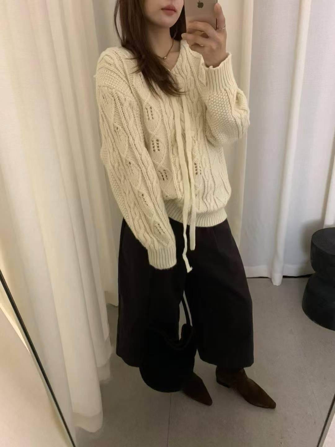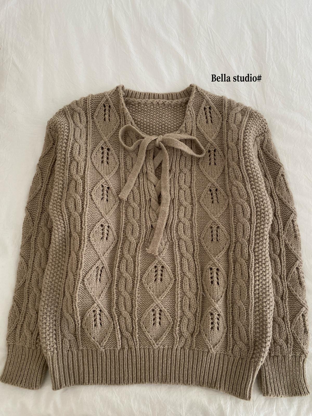 3. 【C8175】韓系簡約時髦繫帶麻花寬鬆氣質大氣百搭加厚保暖毛衣