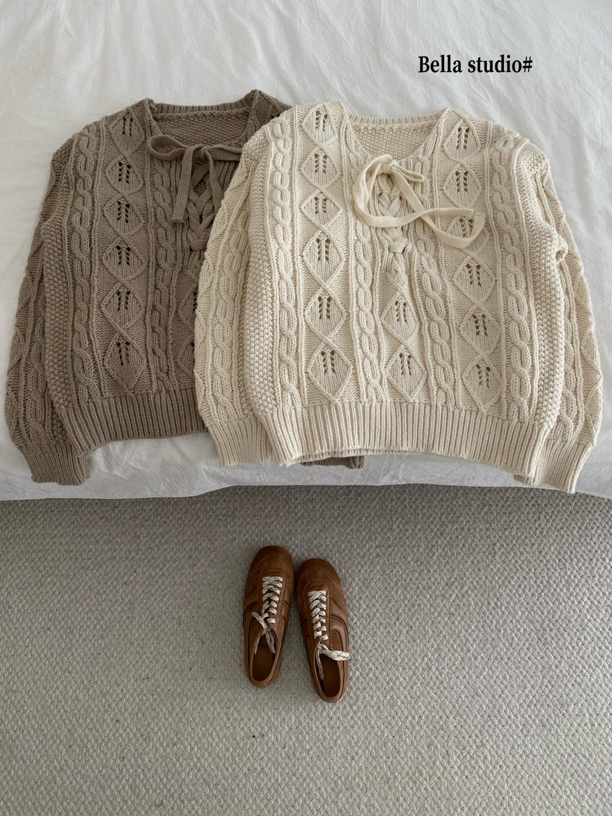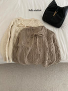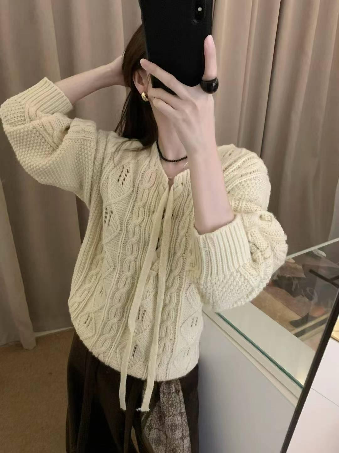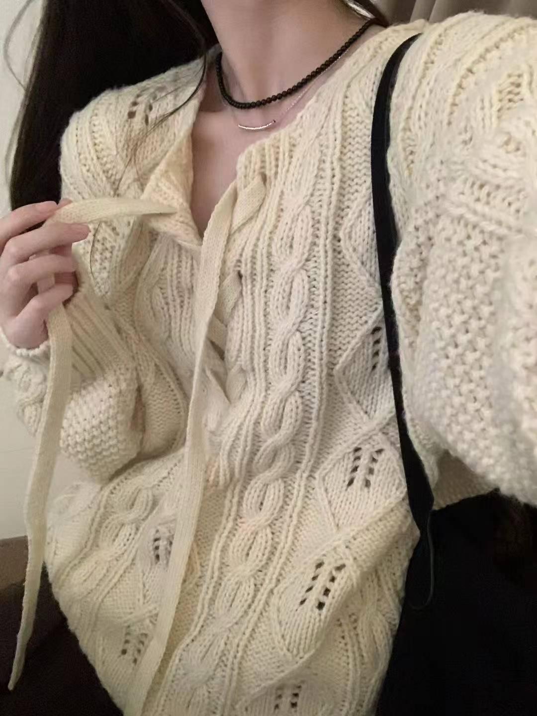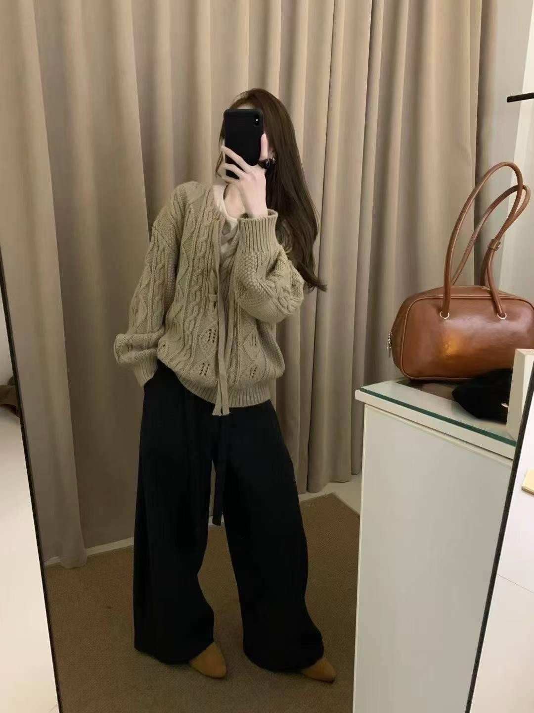 3. 【C8175】韓系簡約時髦繫帶麻花寬鬆氣質大氣百搭加厚保暖毛衣