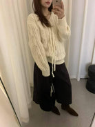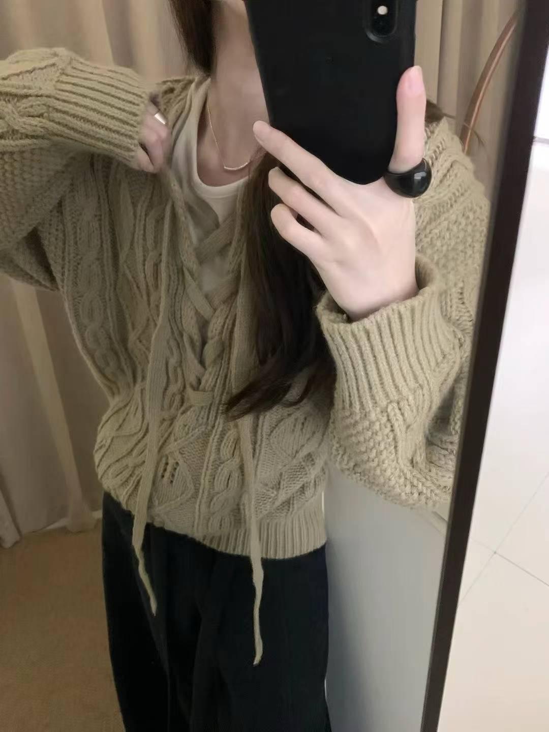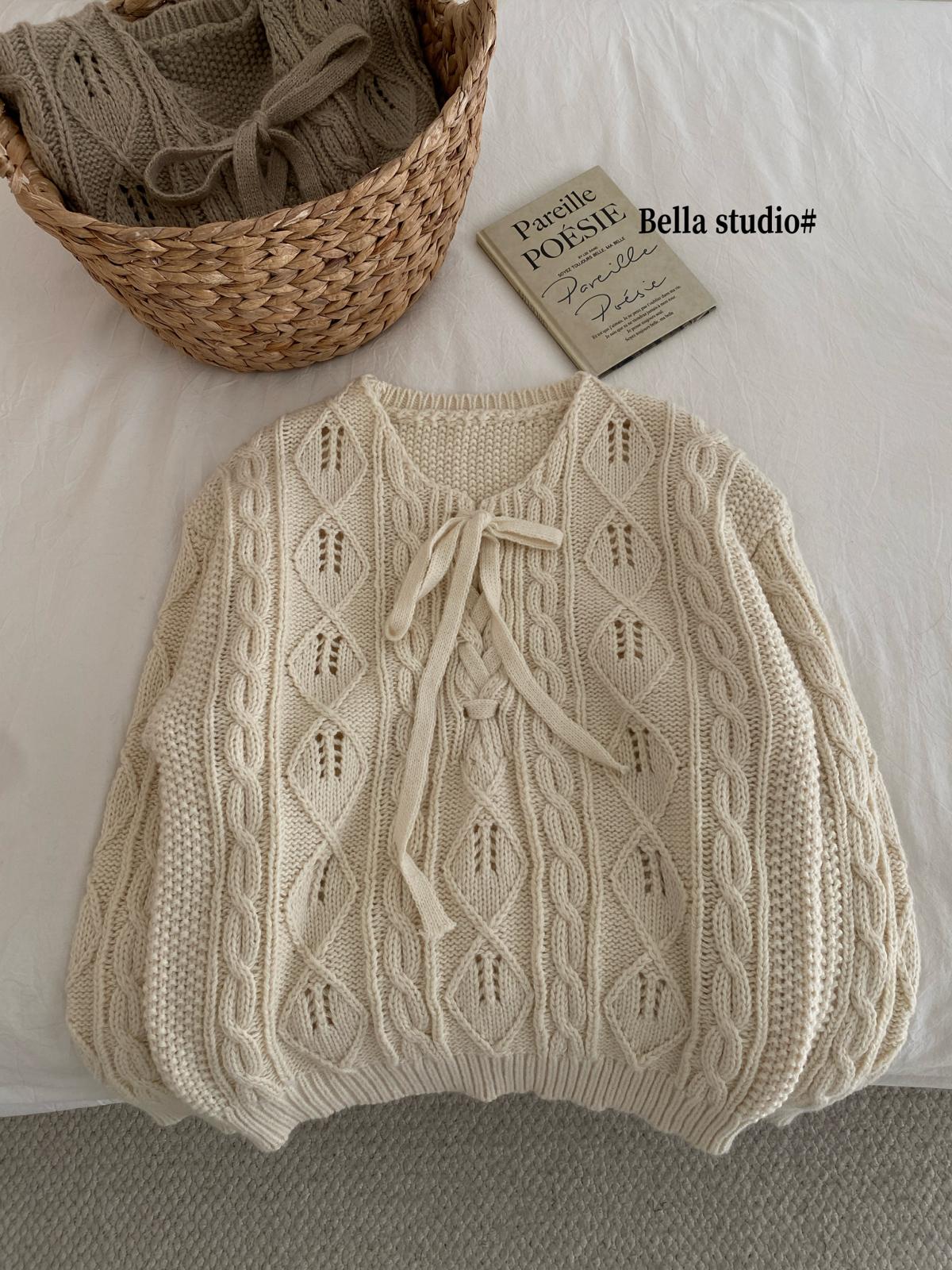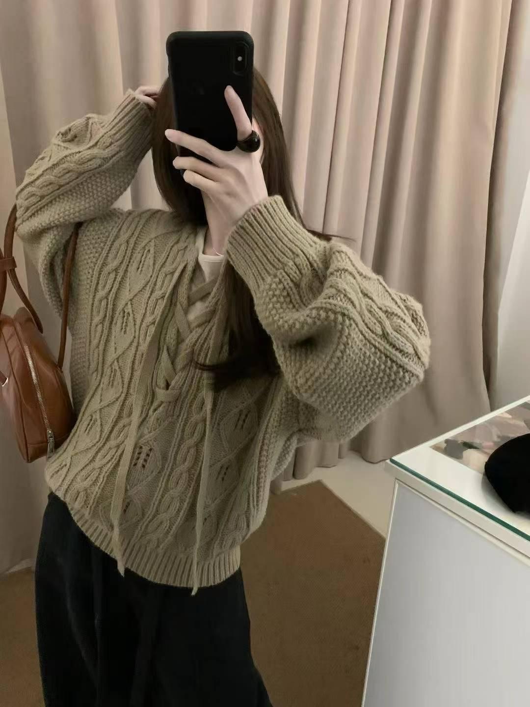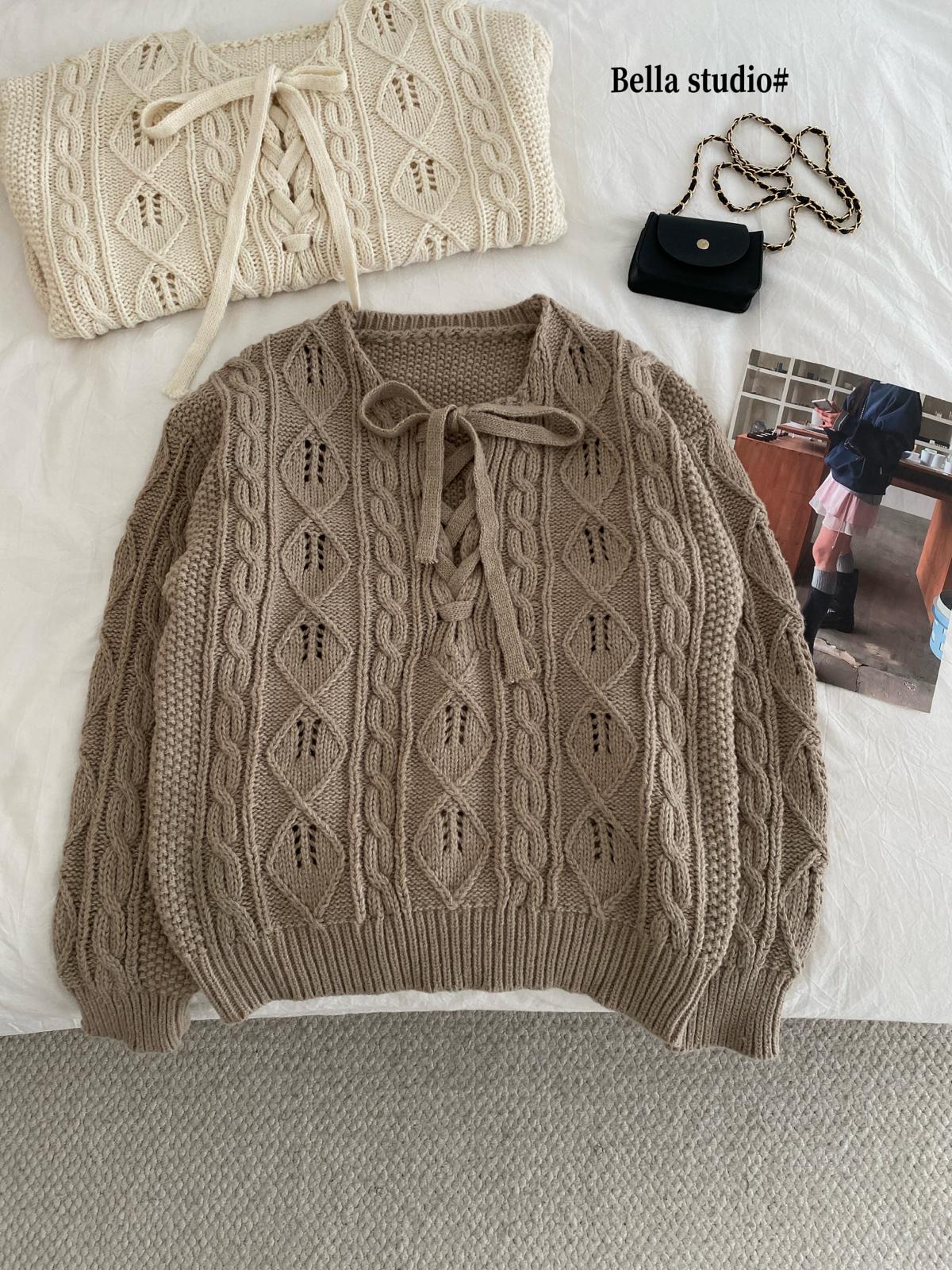 【C8175】韓系簡約時髦繫帶麻花寬鬆氣質大氣百搭加厚保暖毛衣