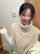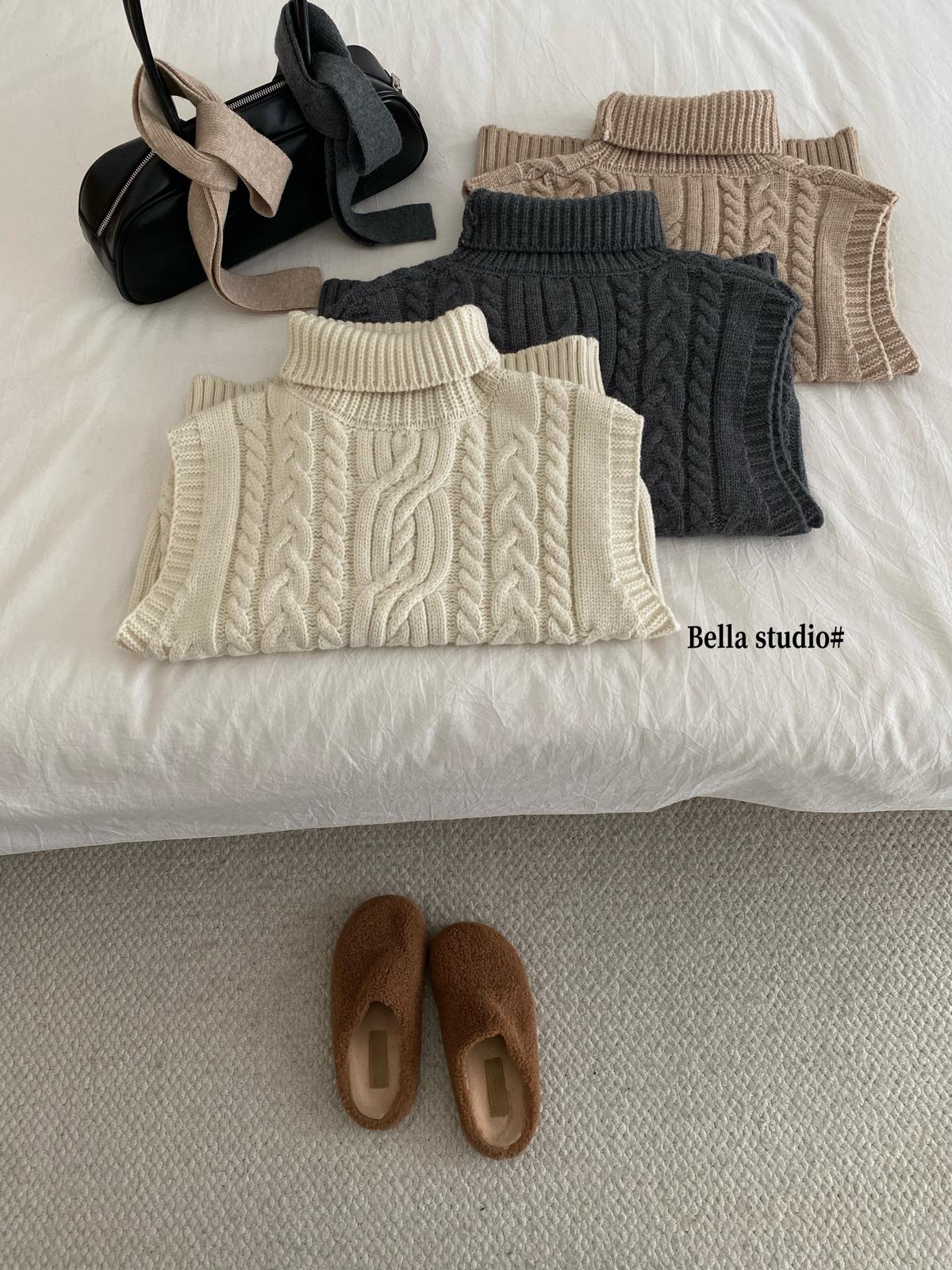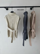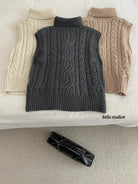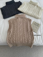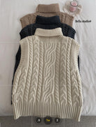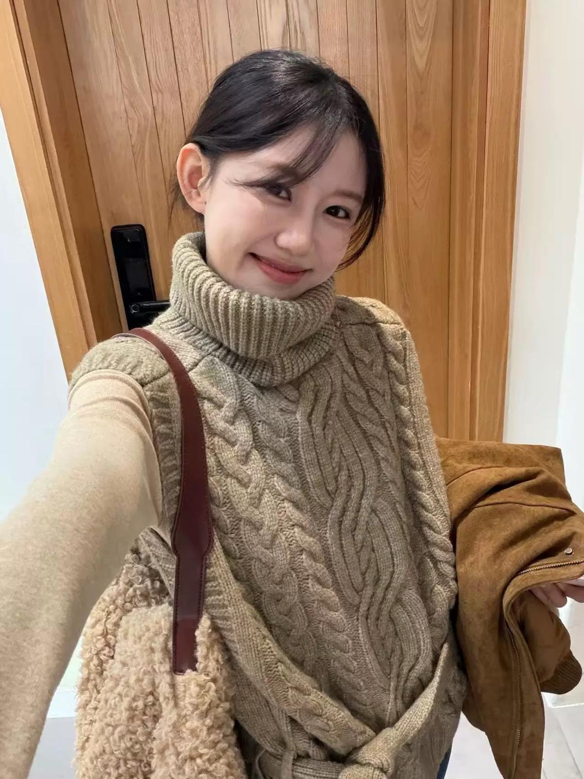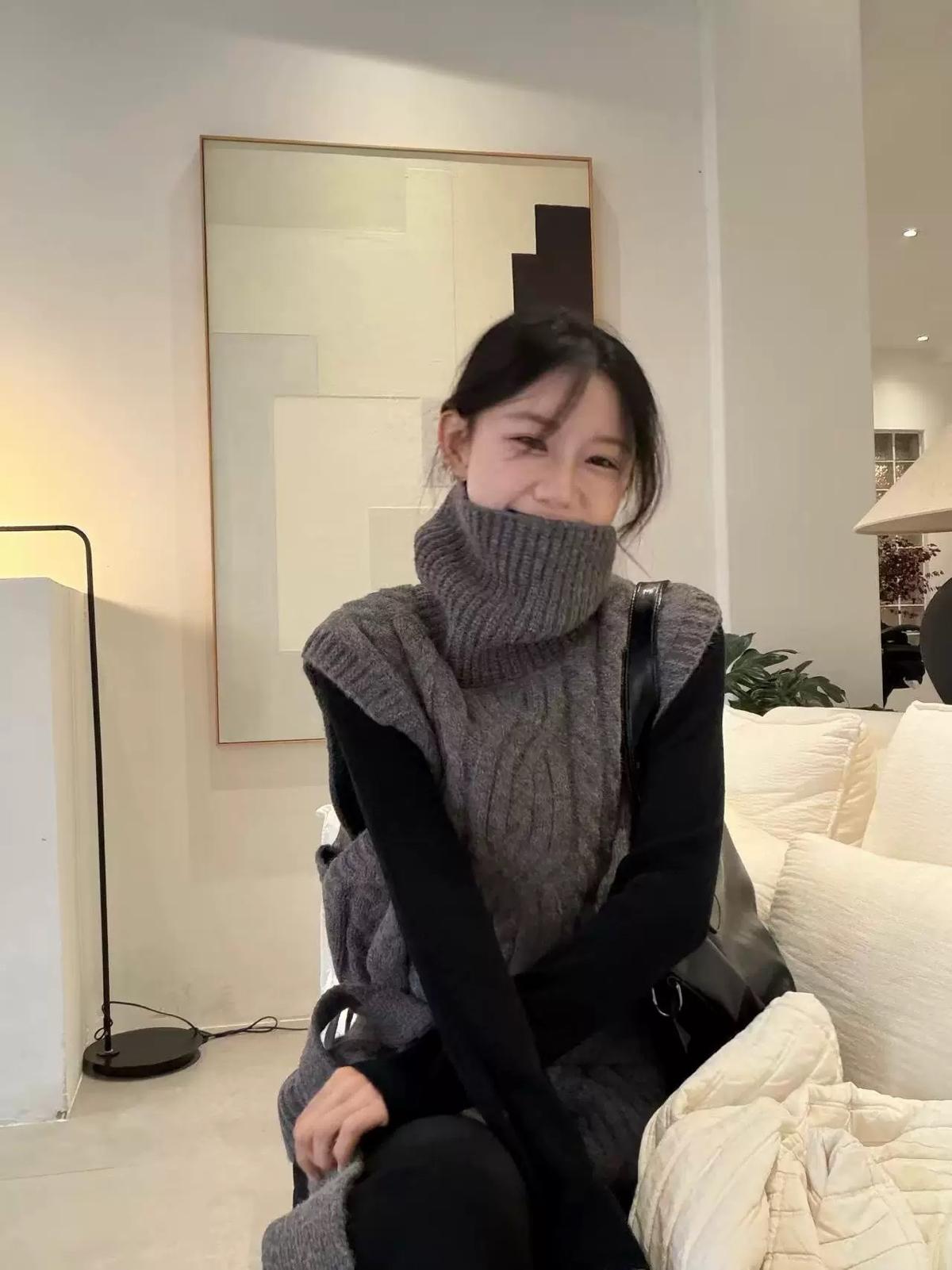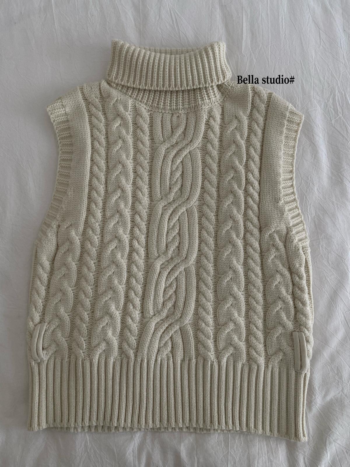 【C8176】韓系時髦疊穿神器高領繫帶麻花顯瘦氣質大氣厚實寬鬆百搭背心(配腰帶)