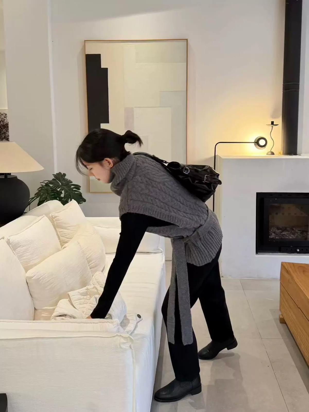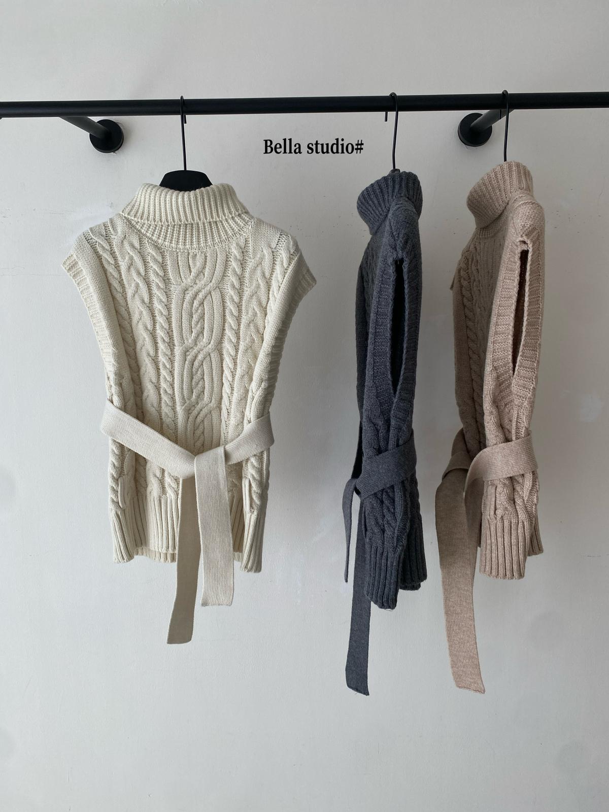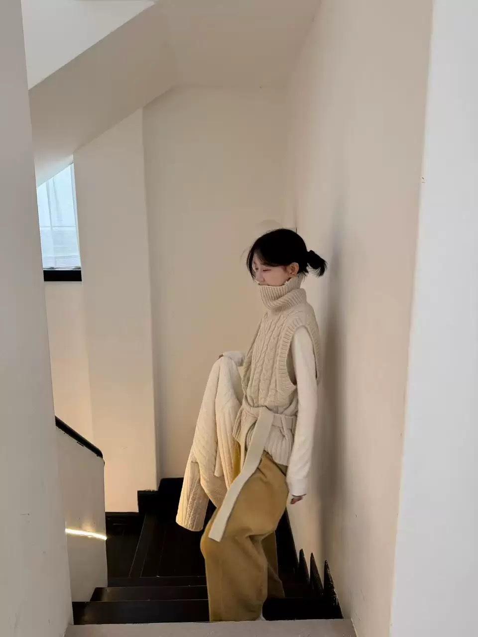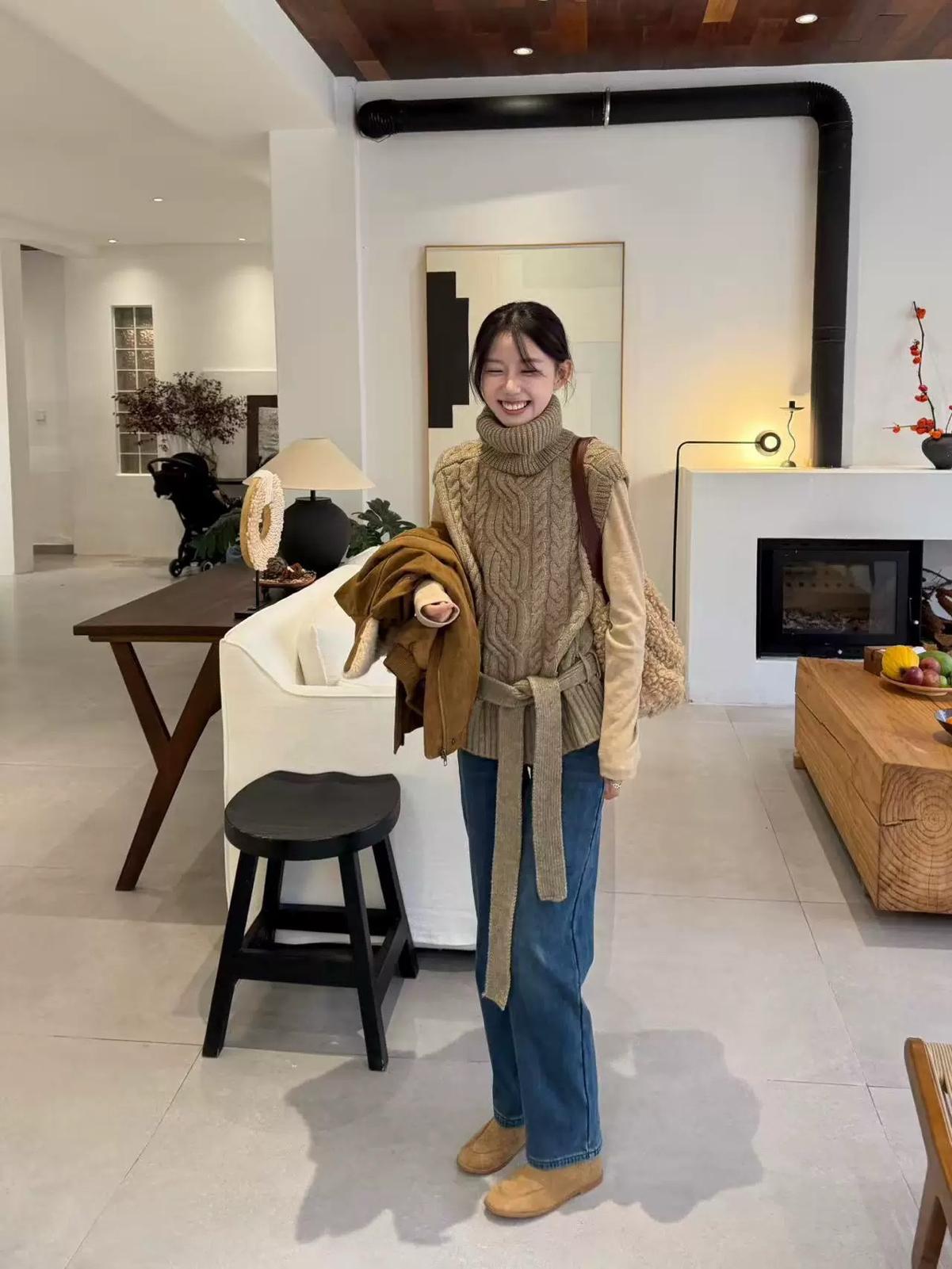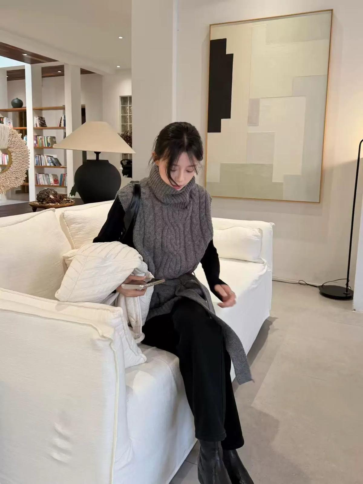 3. 【C8176】韓系時髦疊穿神器高領繫帶麻花顯瘦氣質大氣厚實寬鬆百搭背心(配腰帶)