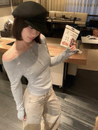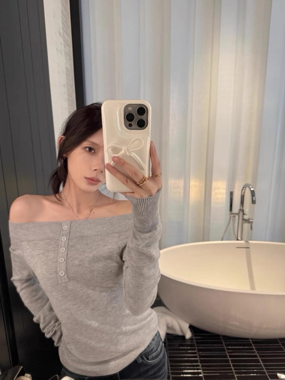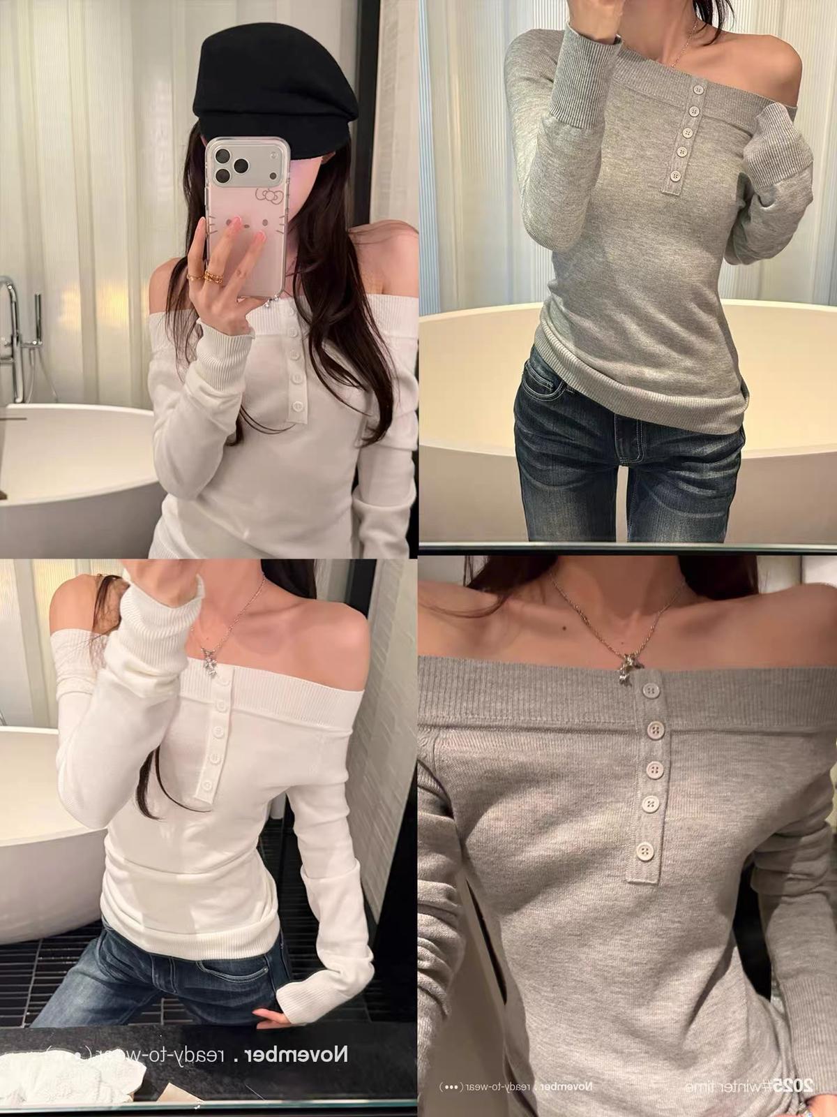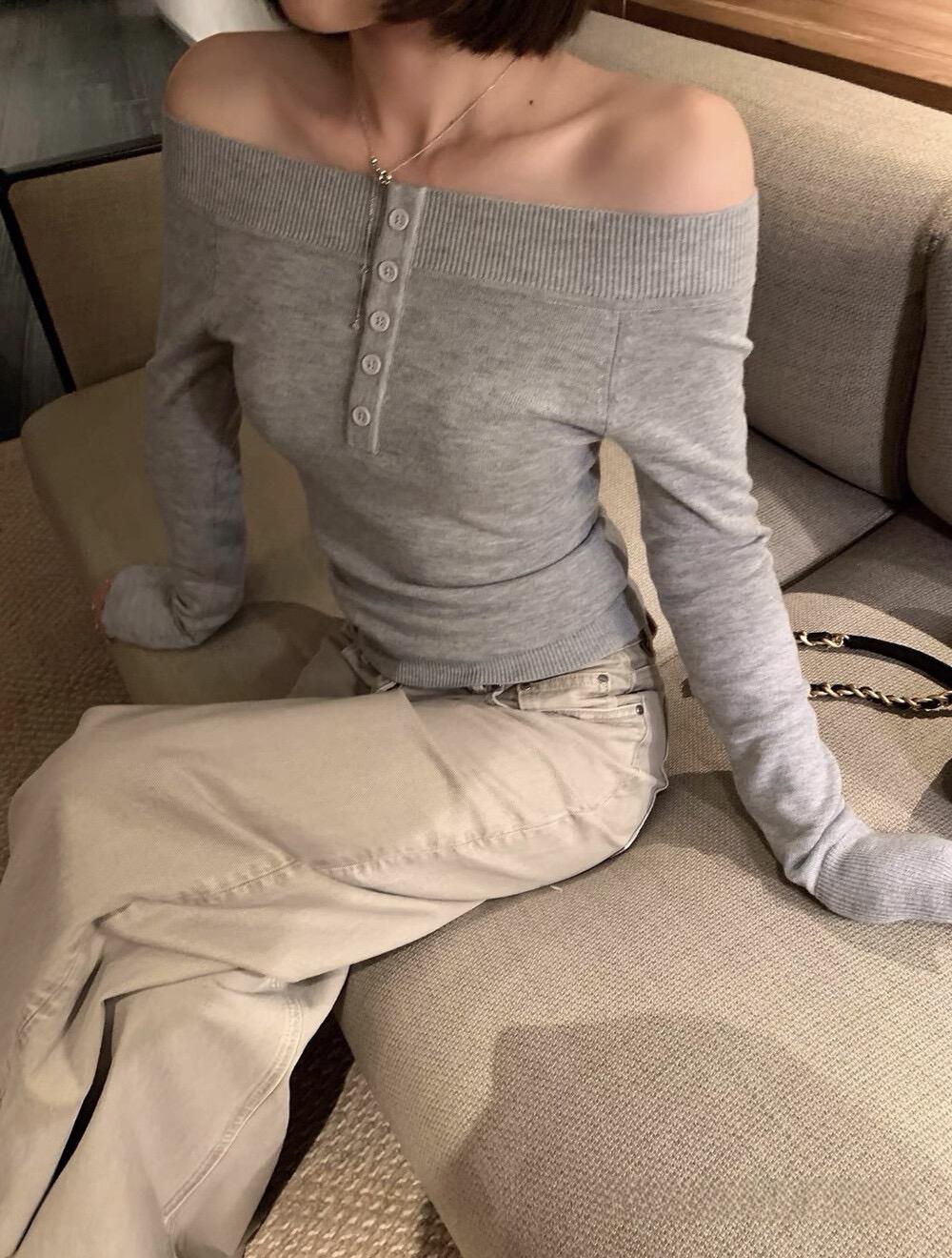 3. 【C8180】韓系兩穿可拉一字肩上衣針織衫