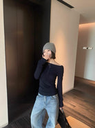 【C8180】韓系兩穿可拉一字肩上衣針織衫