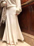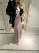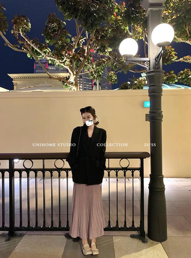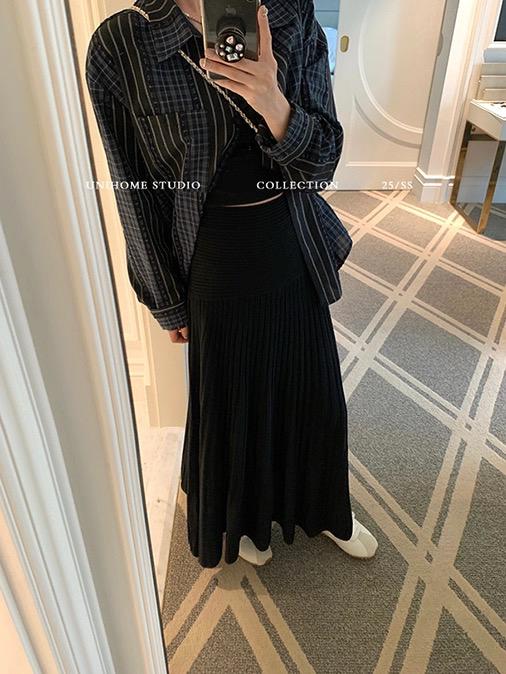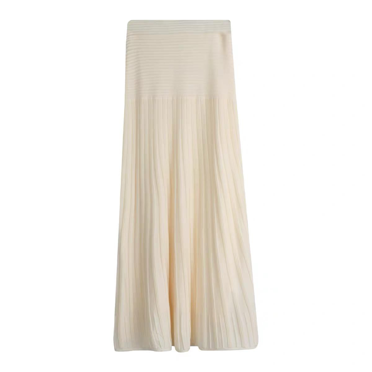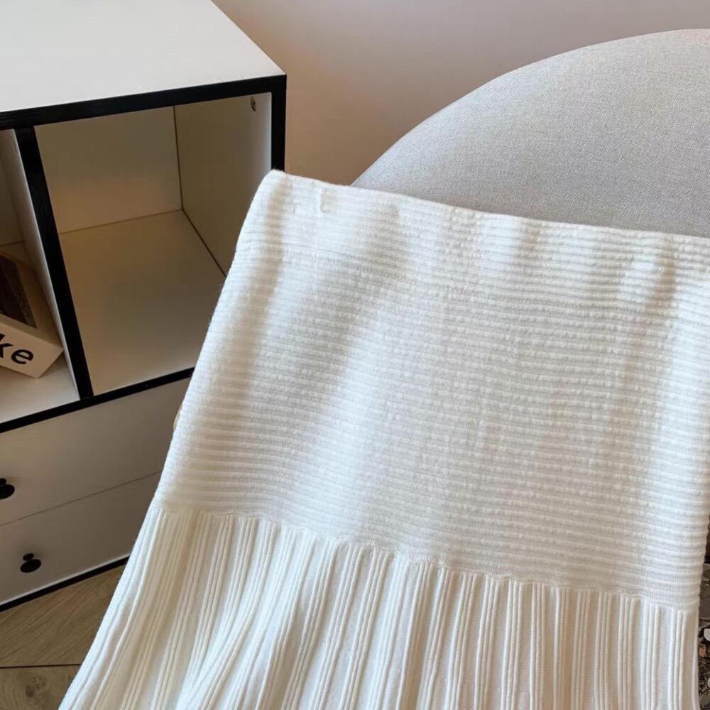 【C8182】韓系溫柔風高腰A字針織印花提花工藝半身裙