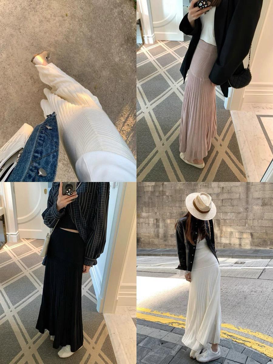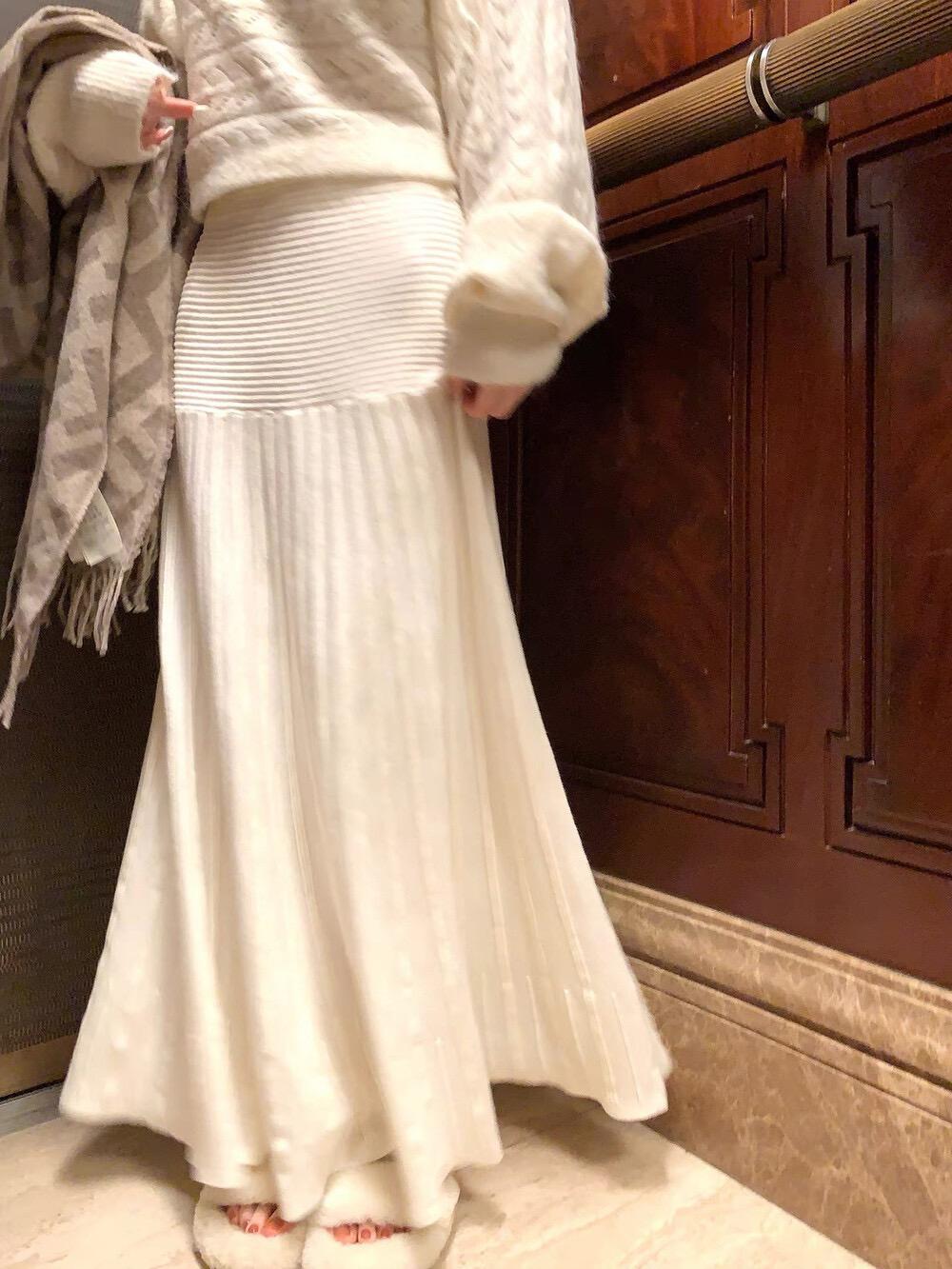 3. 【C8182】韓系溫柔風高腰A字針織印花提花工藝半身裙