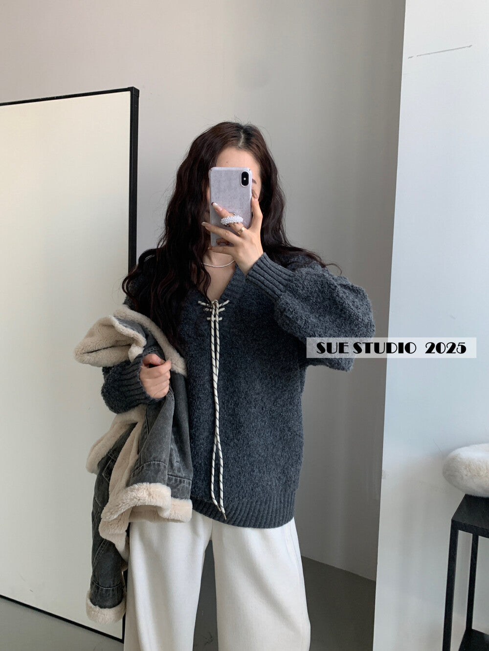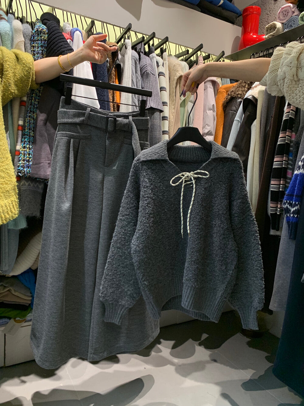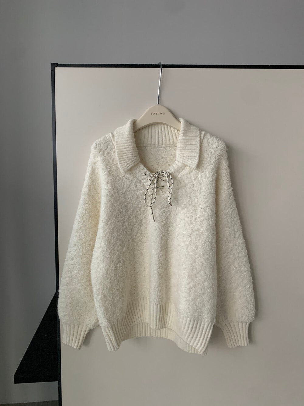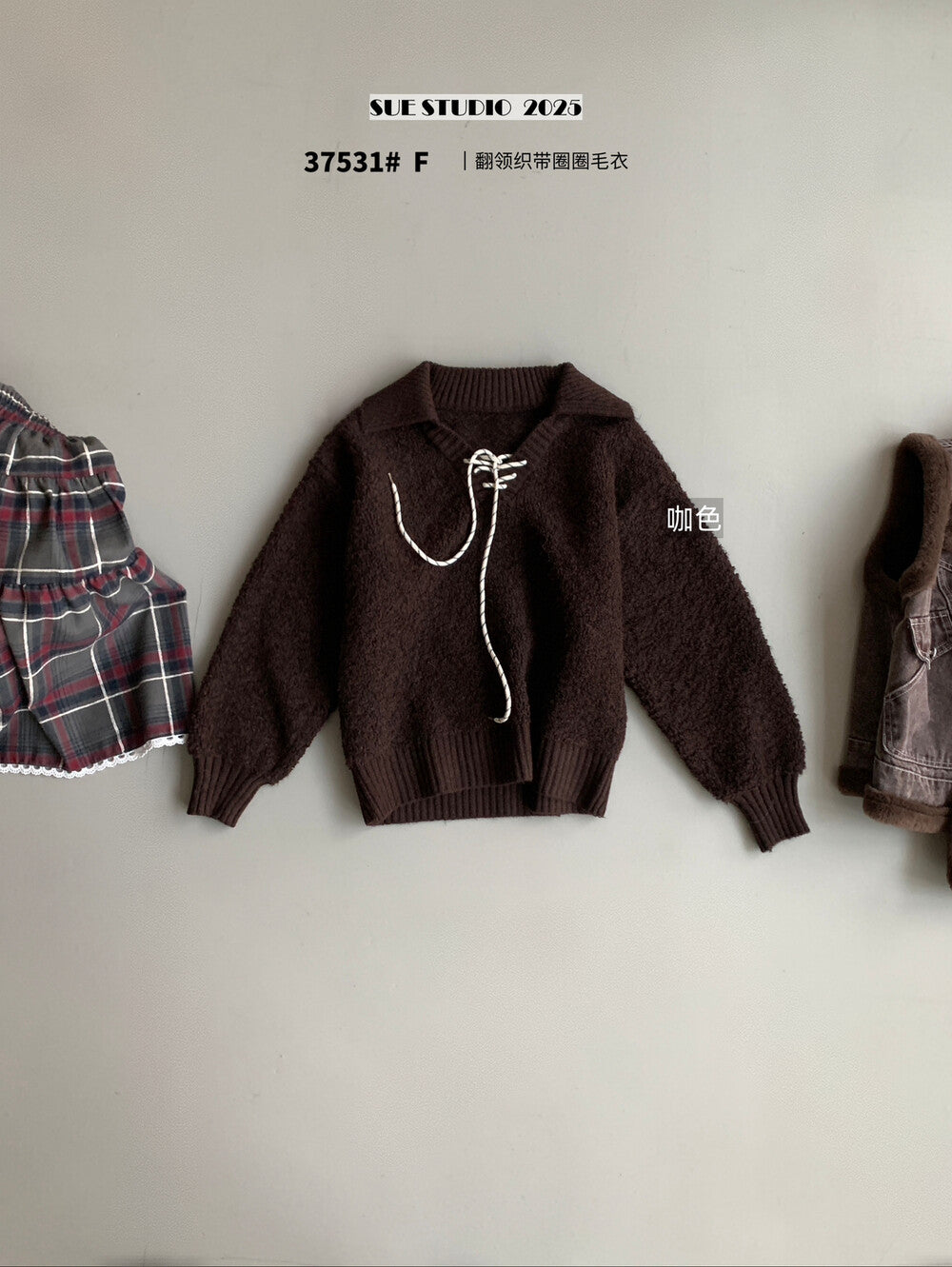 【C8189】韓系休閒翻領加厚圈圈毛套頭保暖毛衣(配織帶)