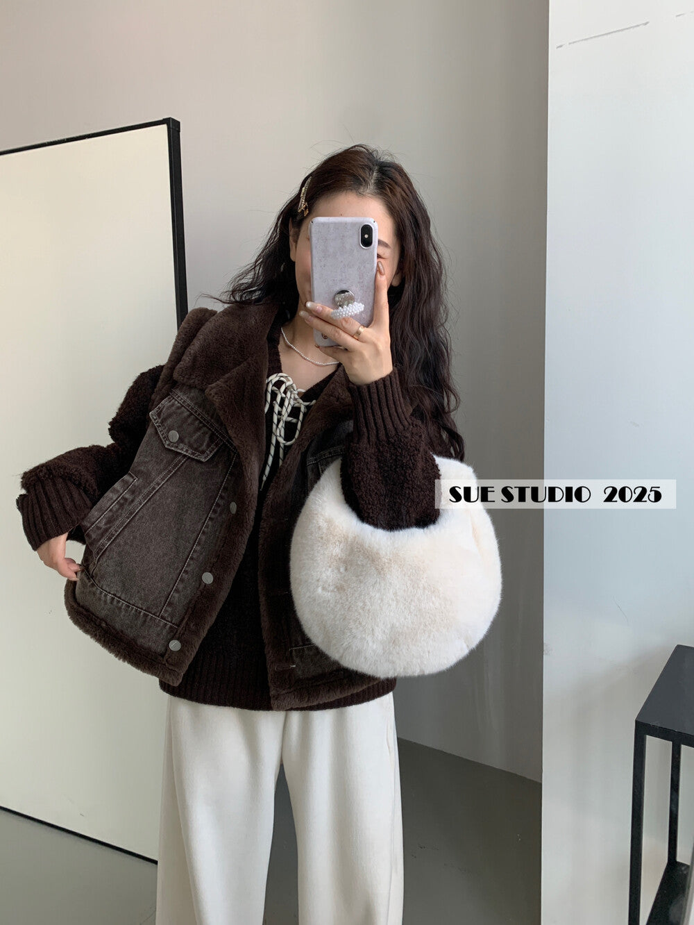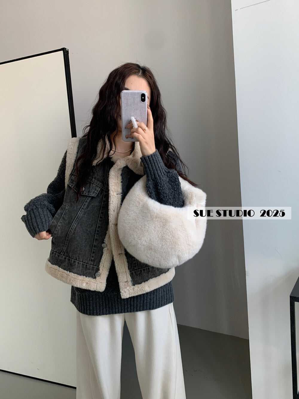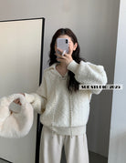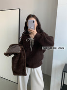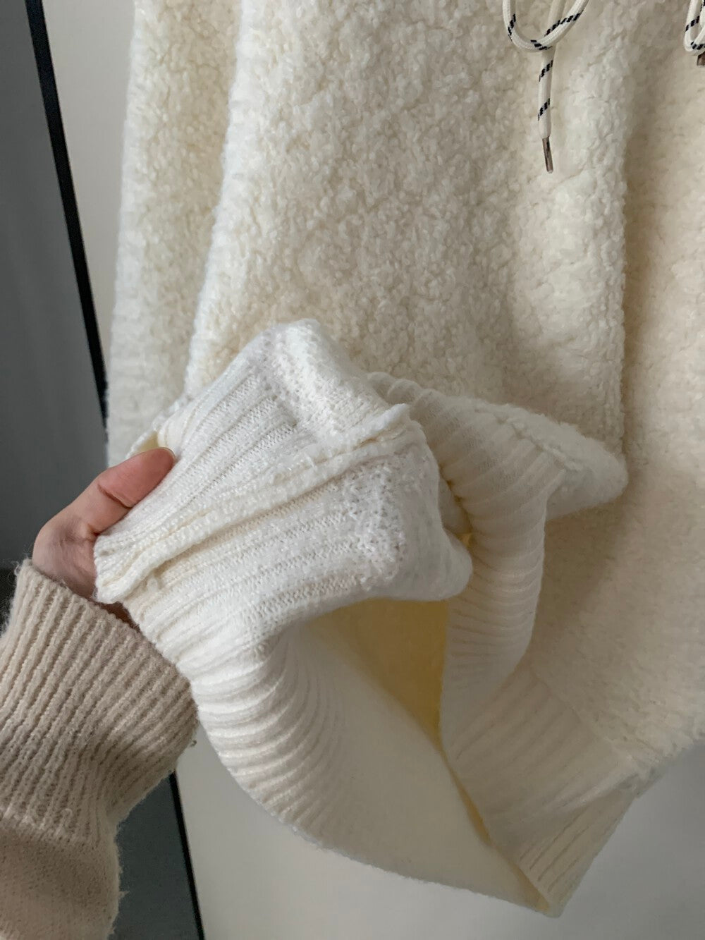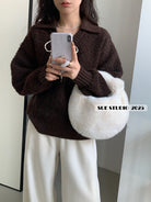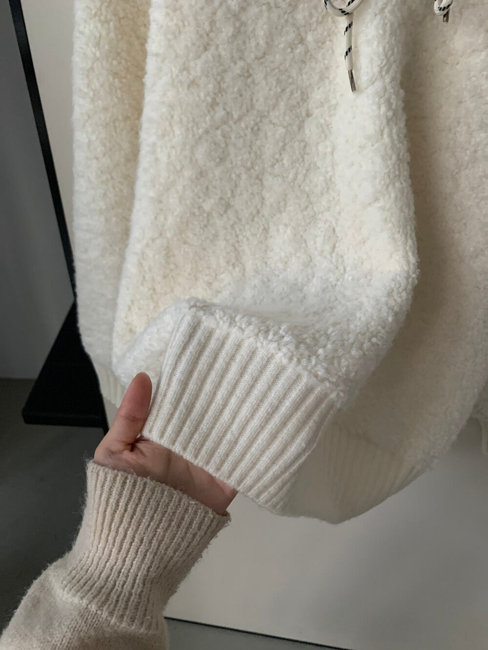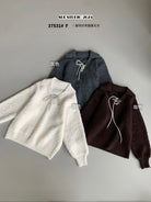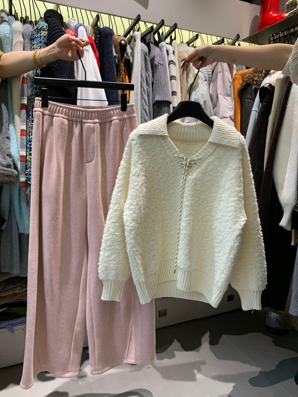 【C8189】韓系休閒翻領加厚圈圈毛套頭保暖毛衣(配織帶)