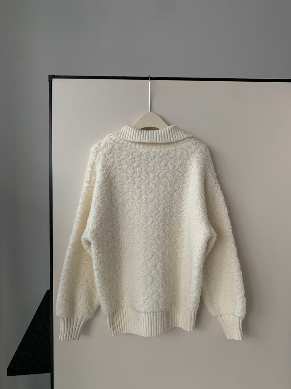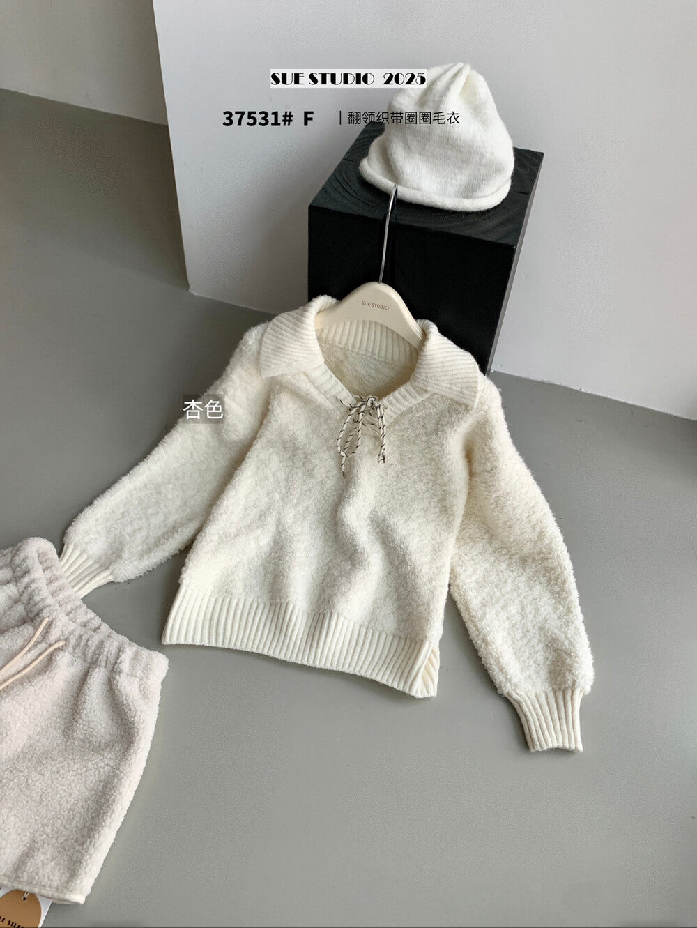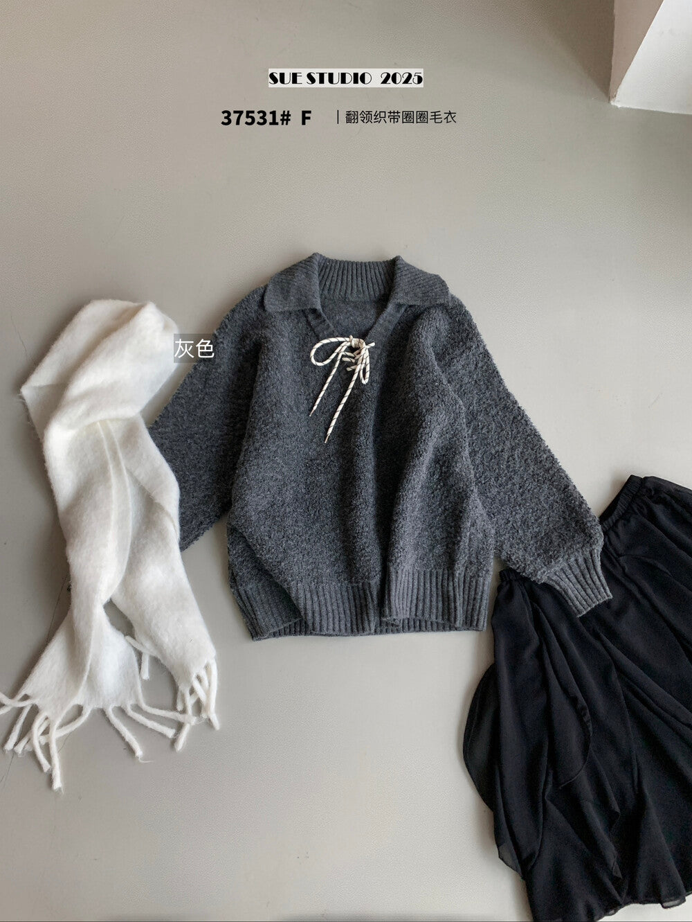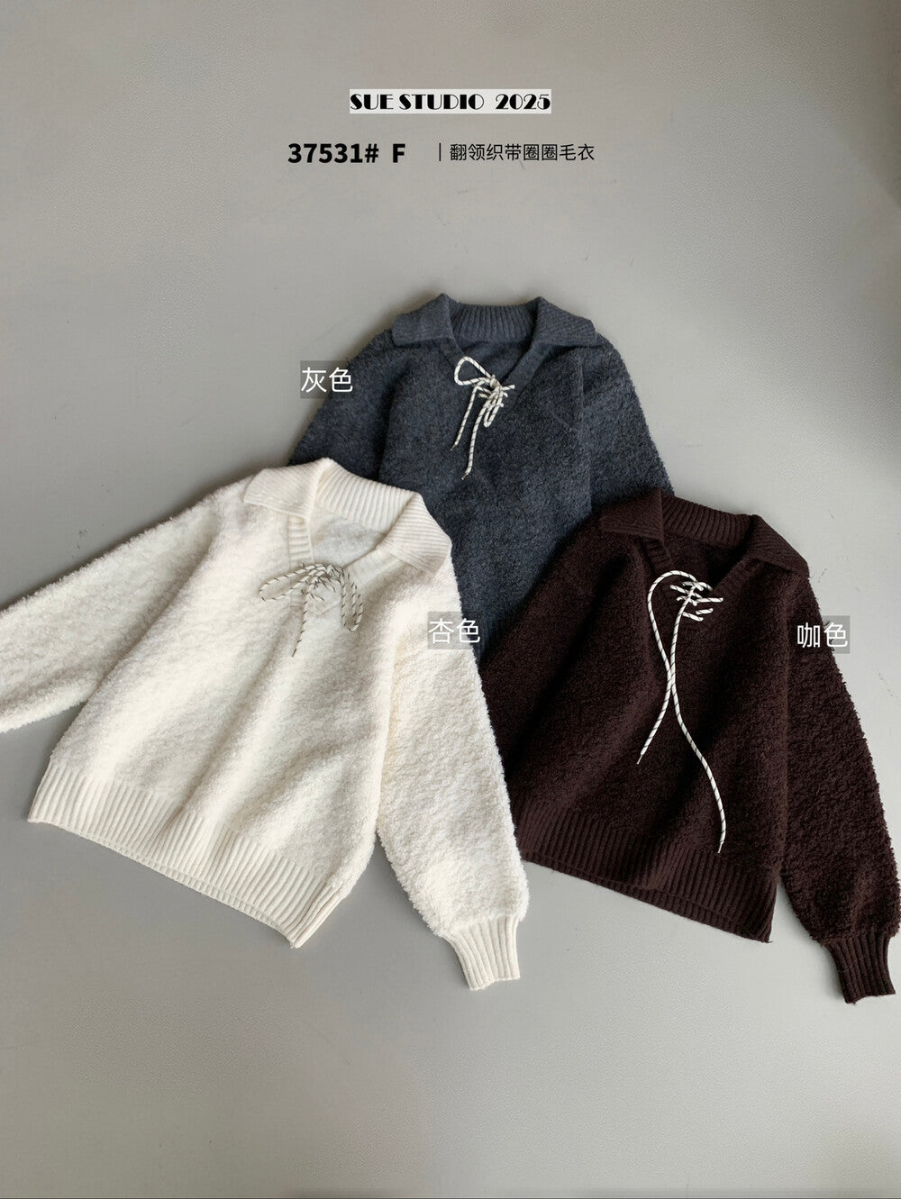 3. 【C8189】韓系休閒翻領加厚圈圈毛套頭保暖毛衣(配織帶)