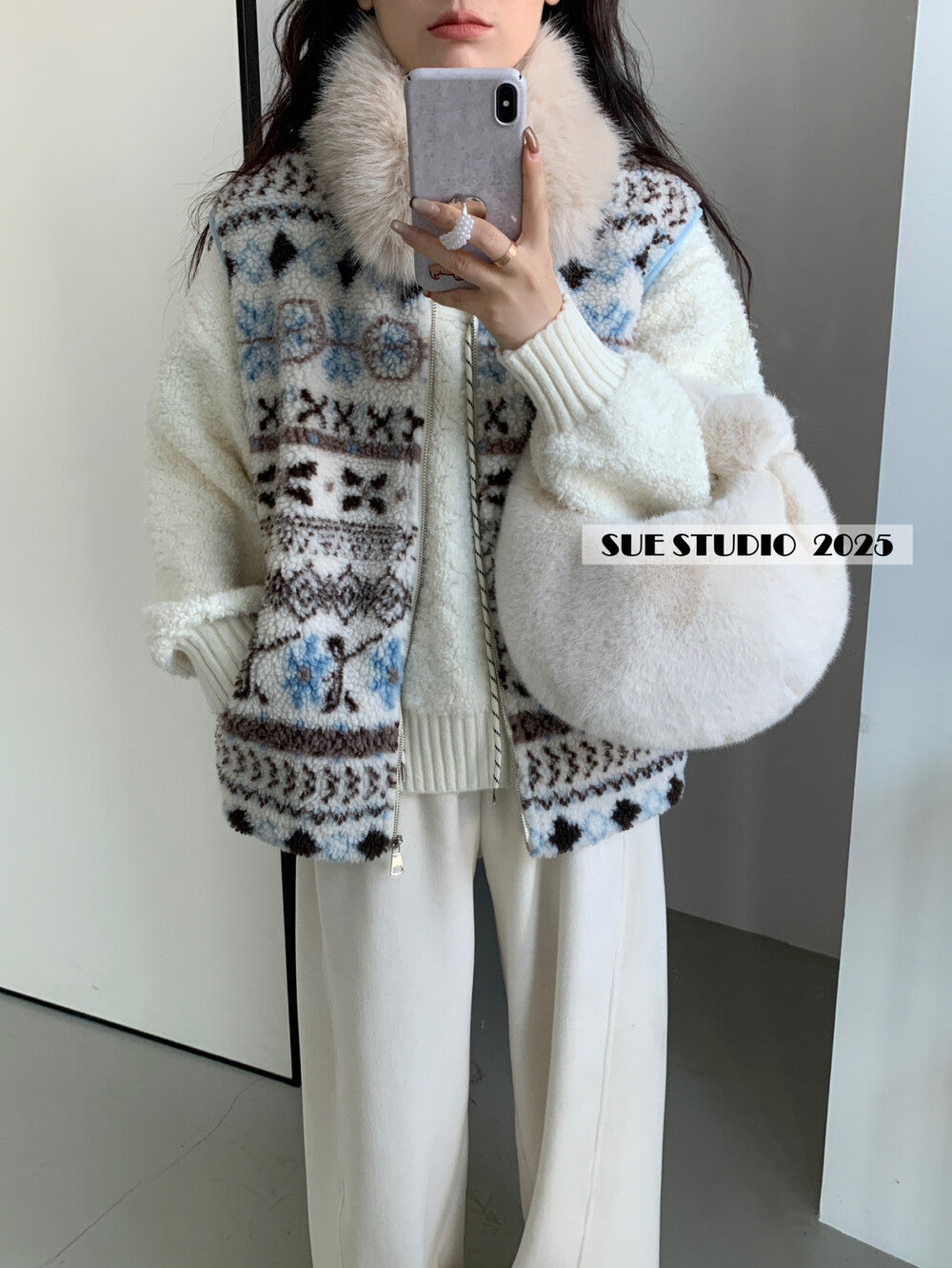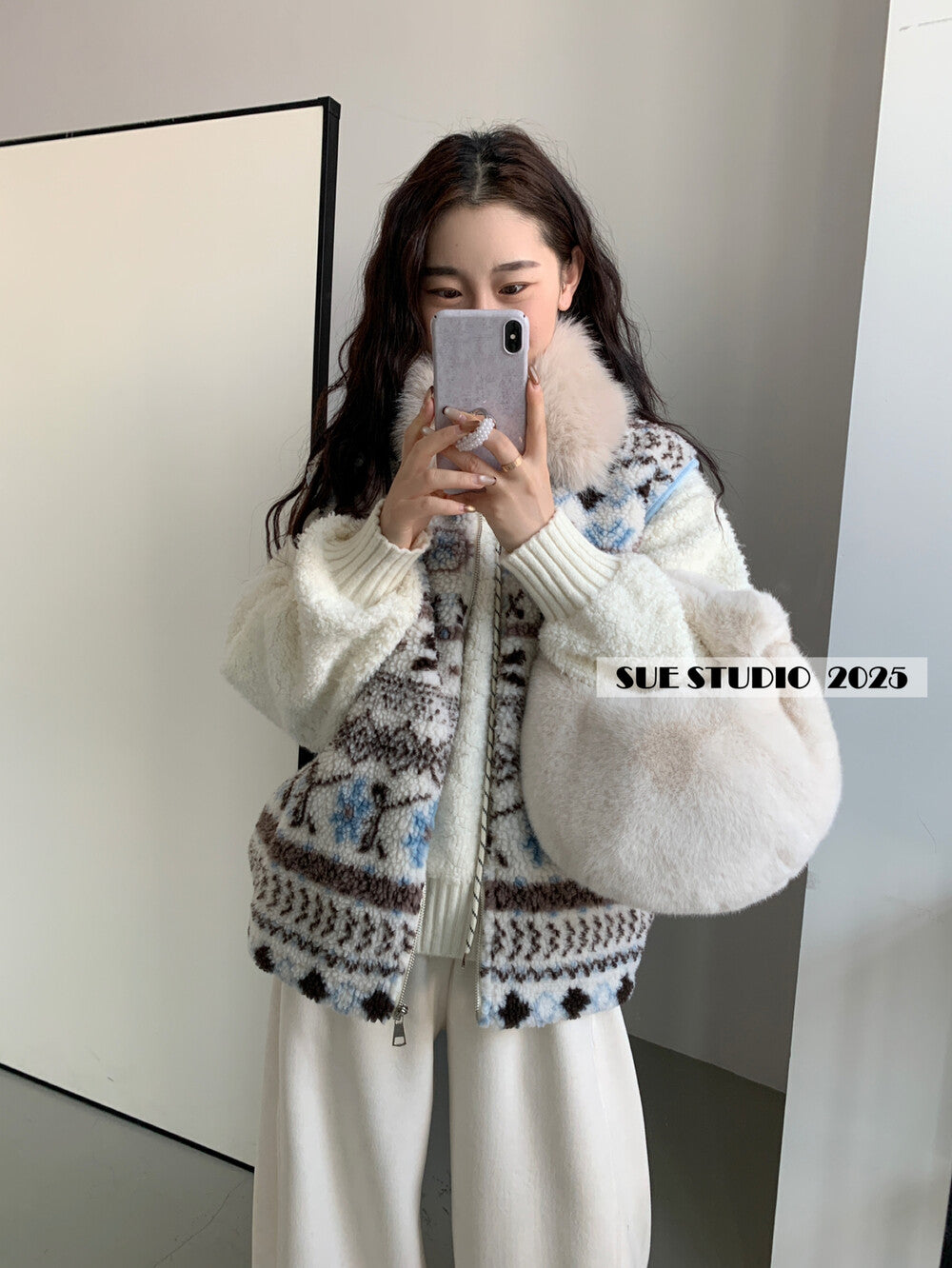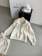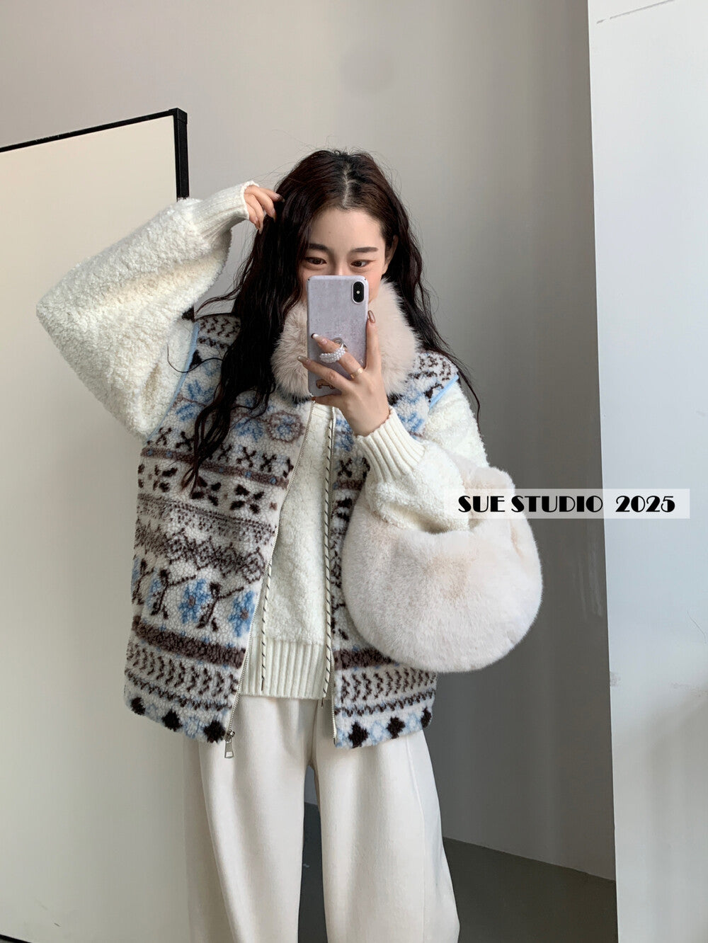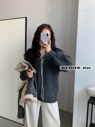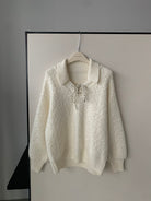 3. 【C8189】韓系休閒翻領加厚圈圈毛套頭保暖毛衣(配織帶)