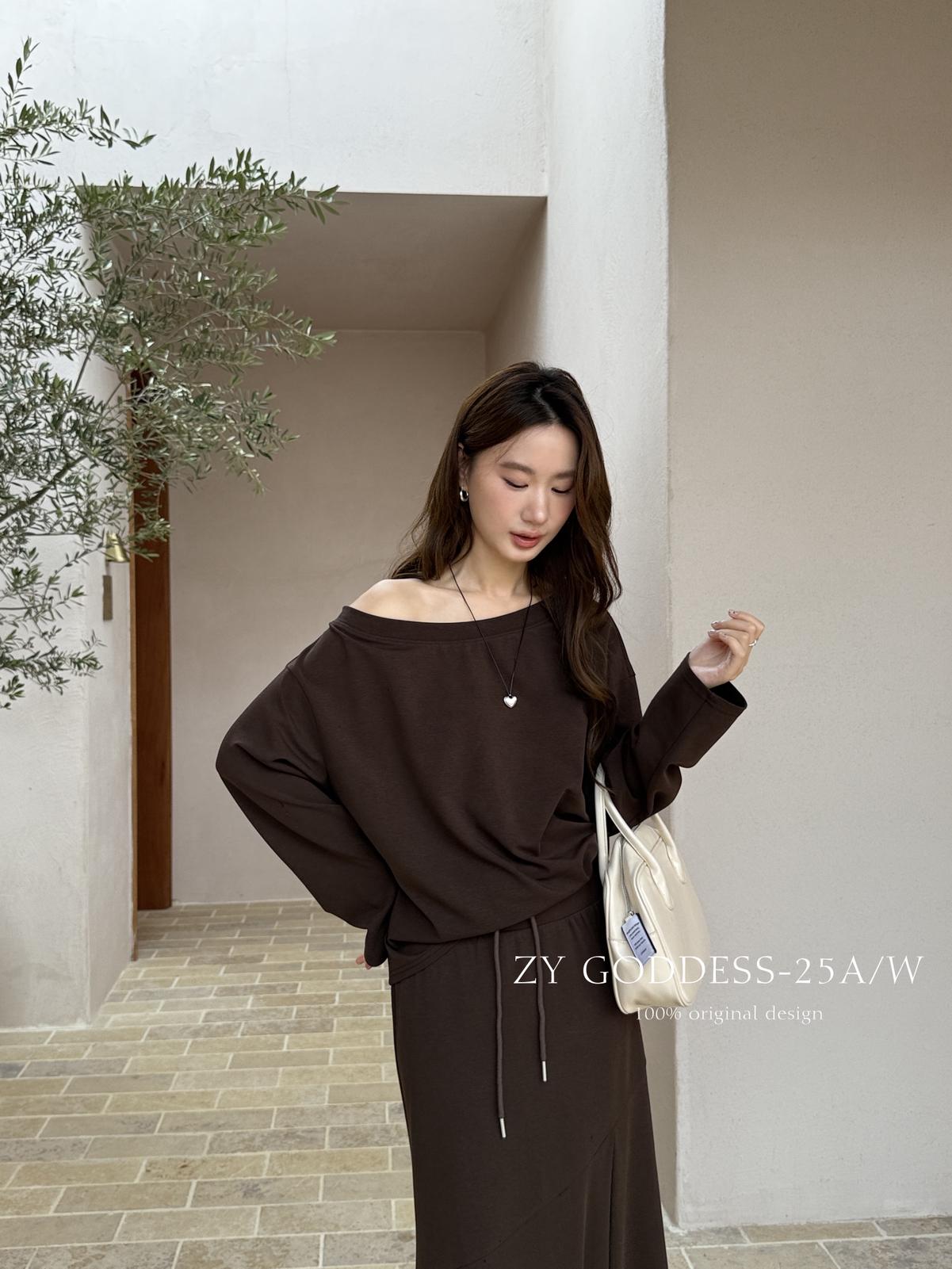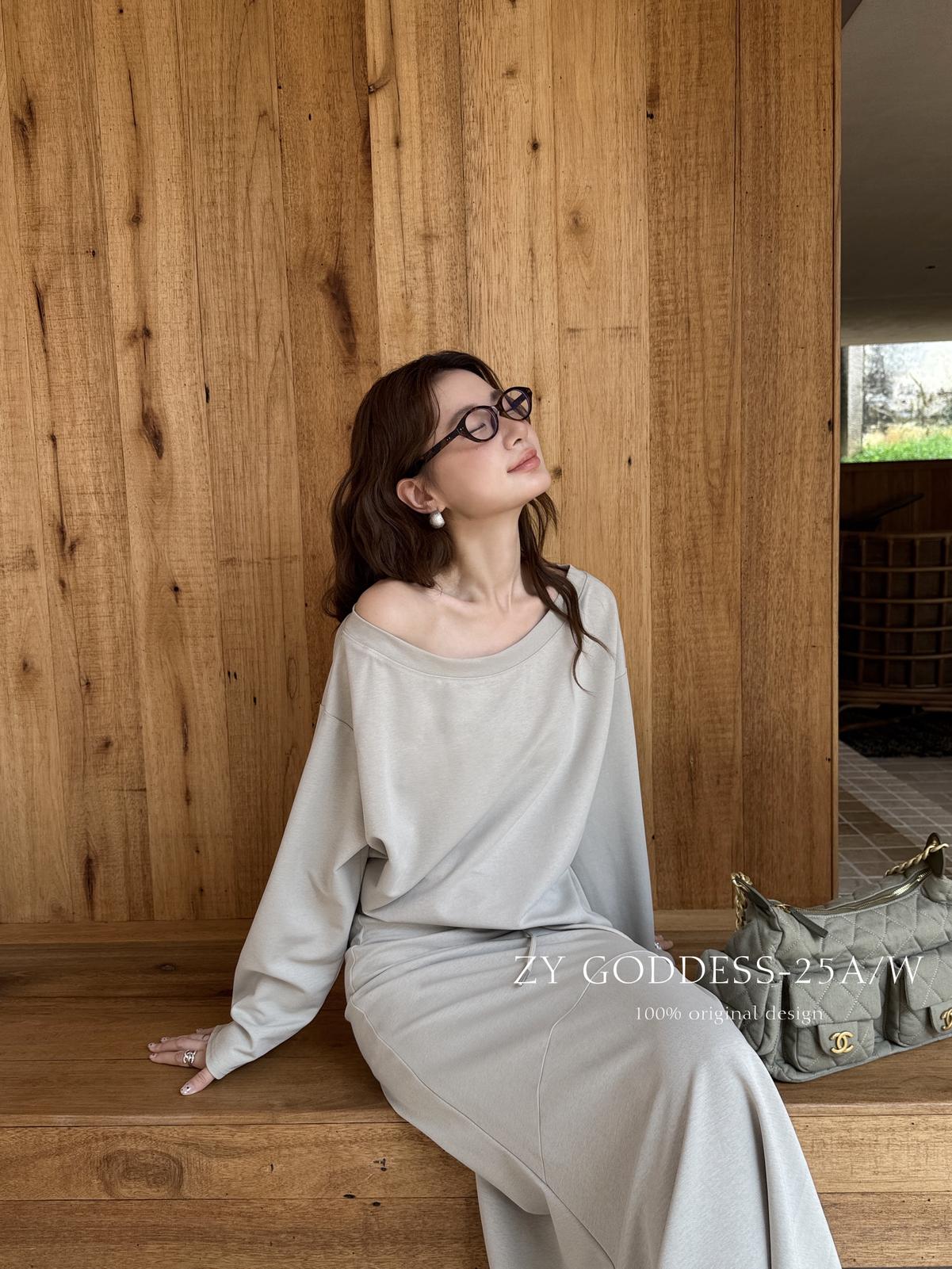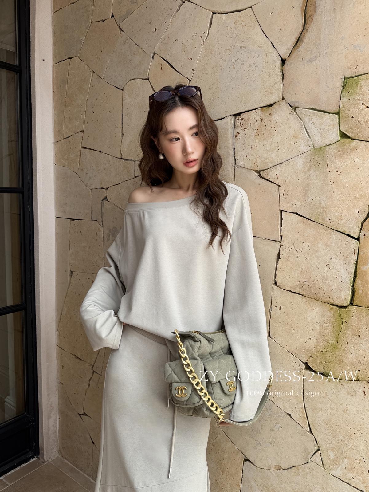 3. 【C8190】韓版ins博主風氛圍感鬆弛斜肩一字肩兩穿寬鬆百搭衛衣