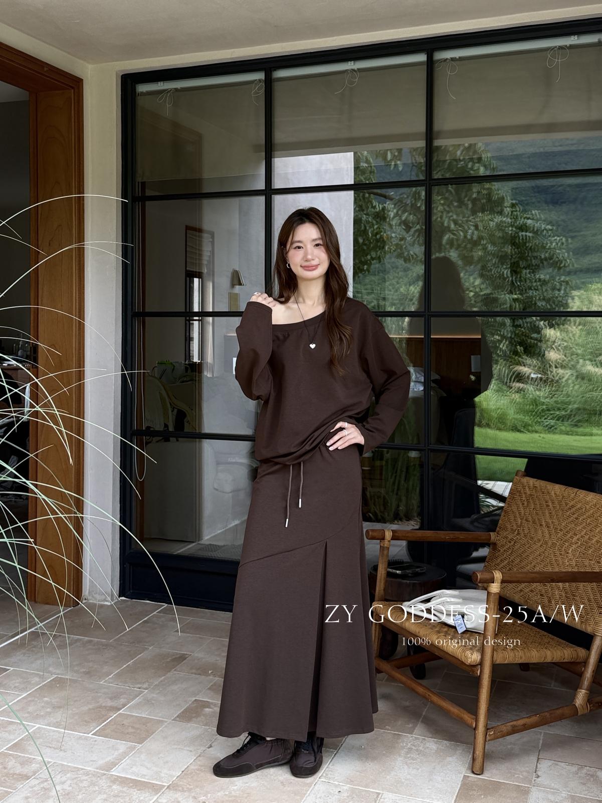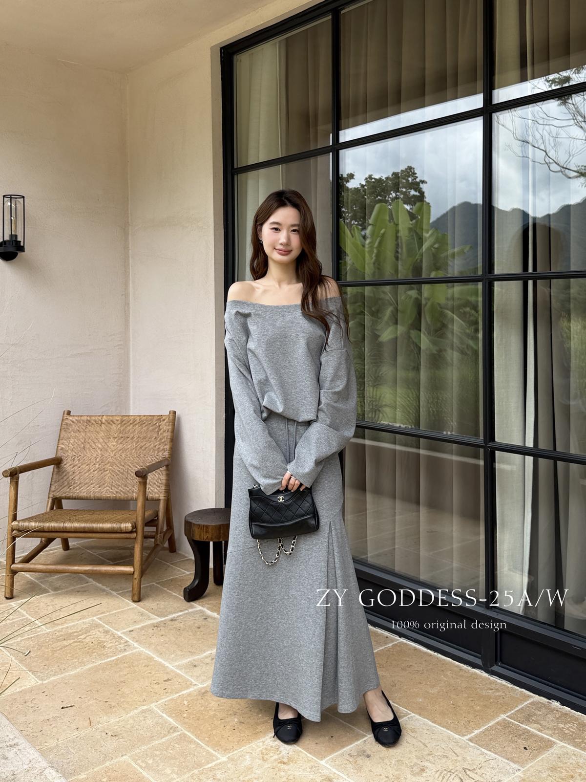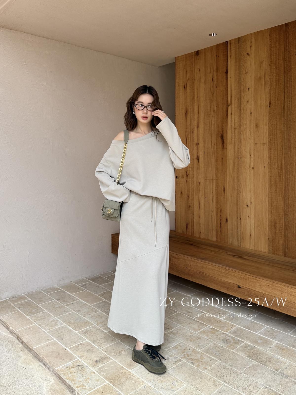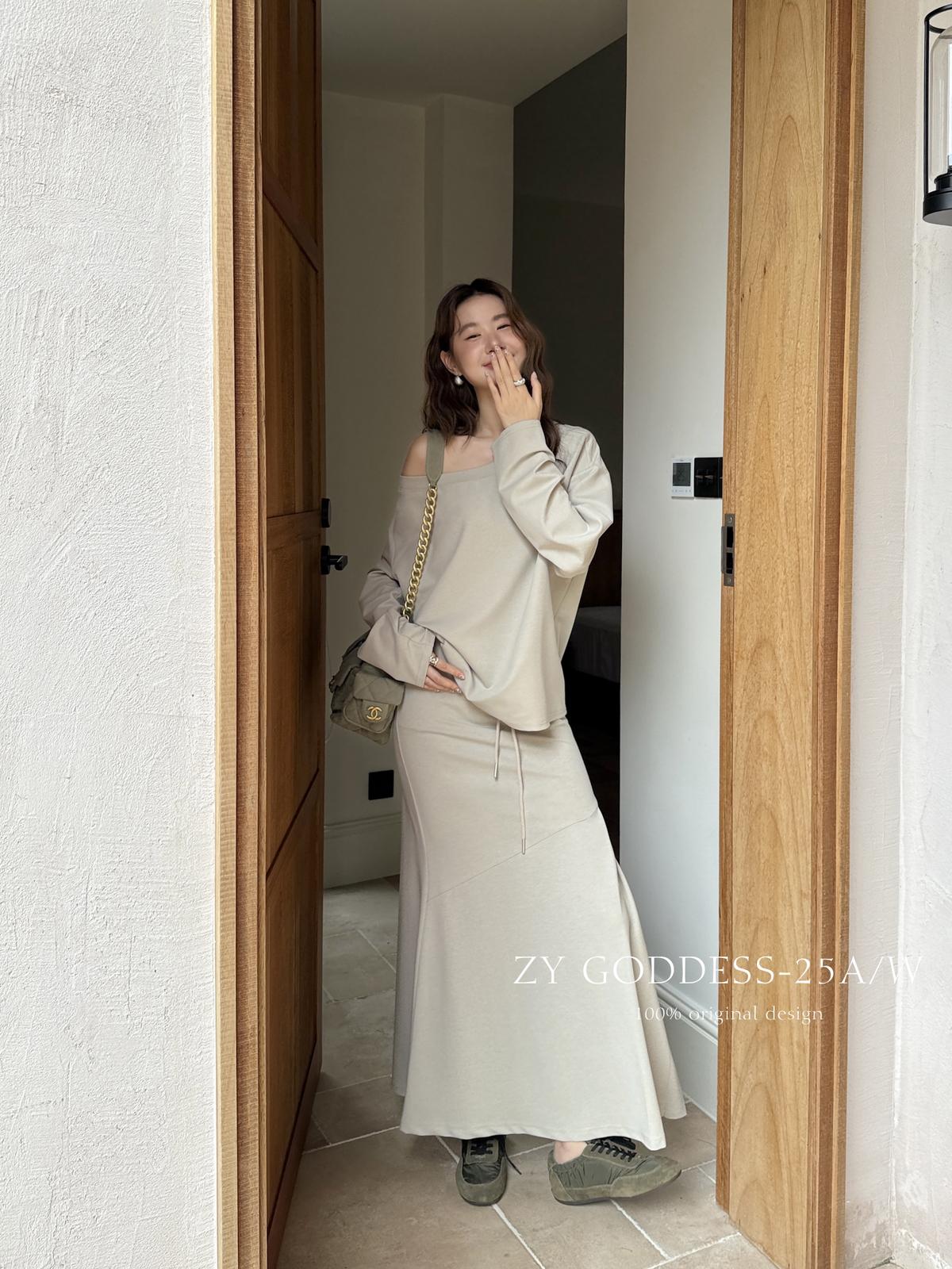 3. 【C8190】韓版ins博主風氛圍感鬆弛斜肩一字肩兩穿寬鬆百搭衛衣