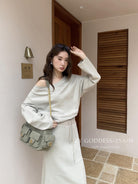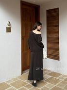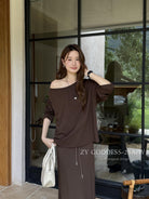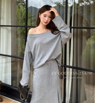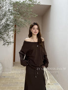 【C8190】韓版ins博主風氛圍感鬆弛斜肩一字肩兩穿寬鬆百搭衛衣