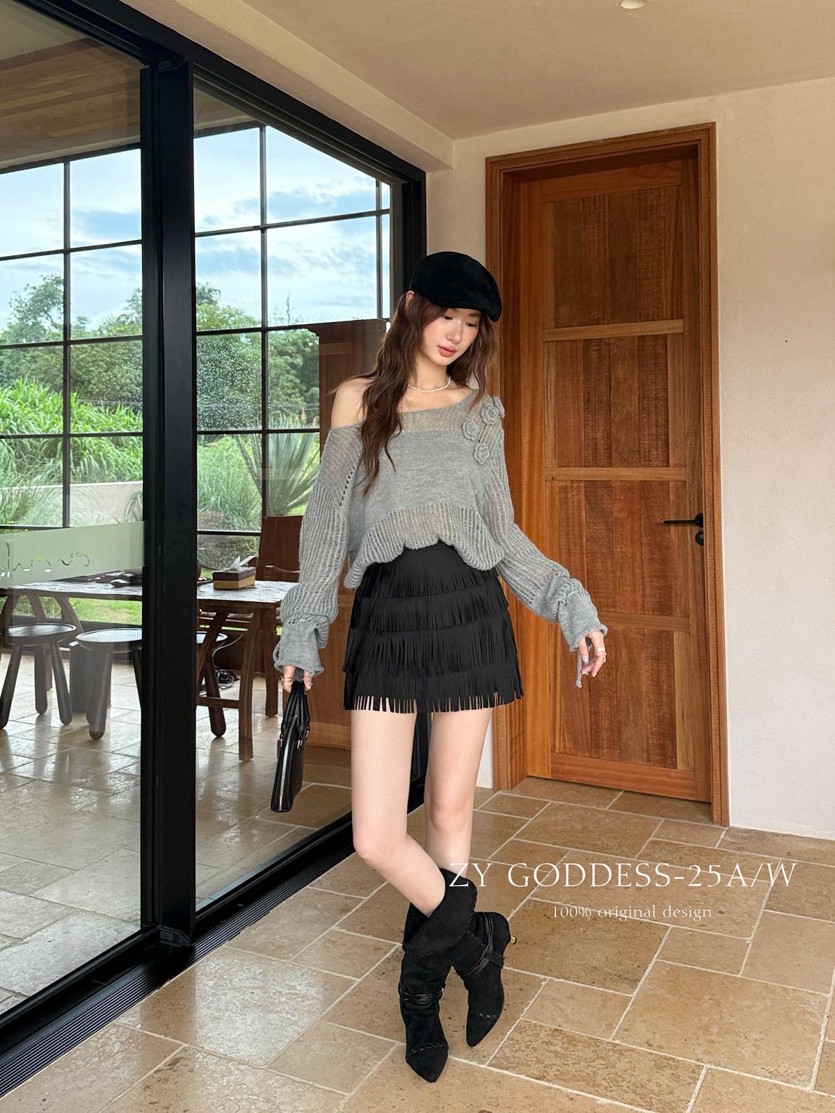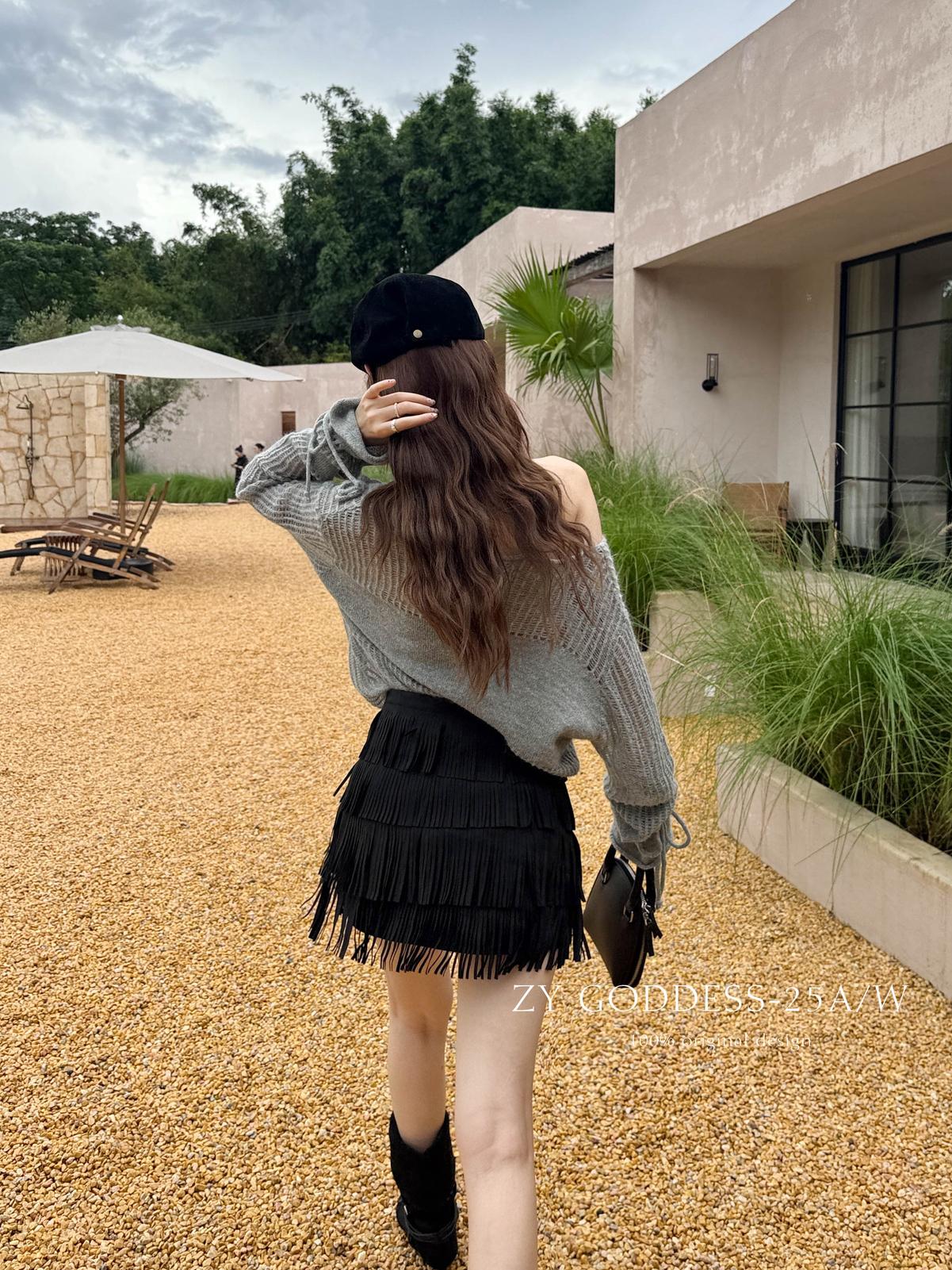 3. 【C8192】韓版小女人麂皮絨流蘇時尚包臀短裙半身裙
