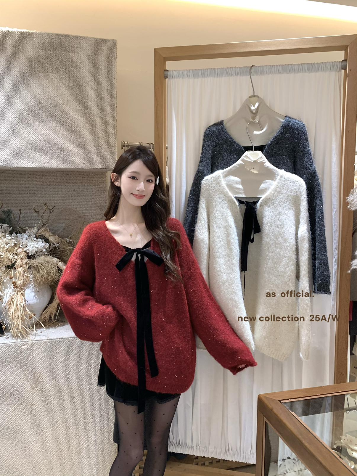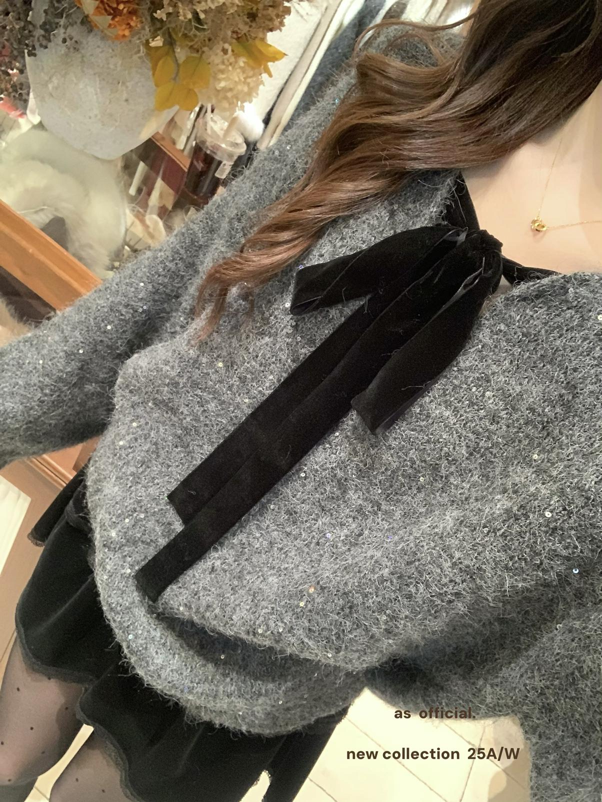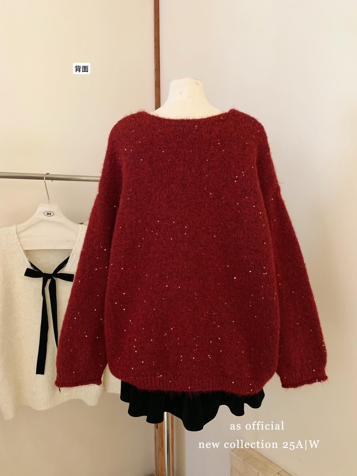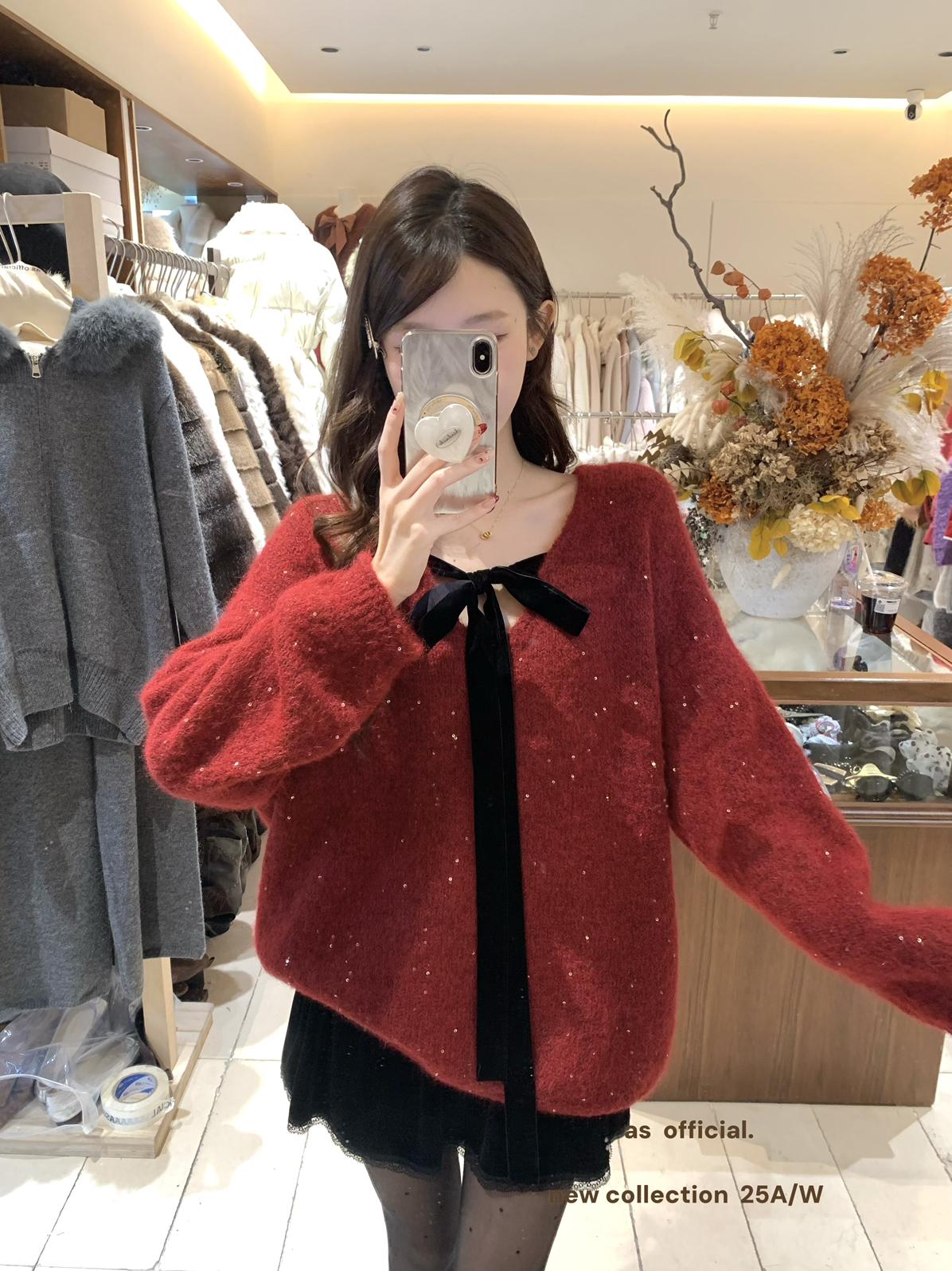 【C8196】自帶節日Buff~派對版絲絨蝴蝶結 細閃亮片保暖毛衣