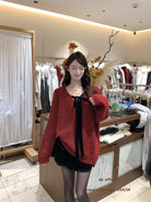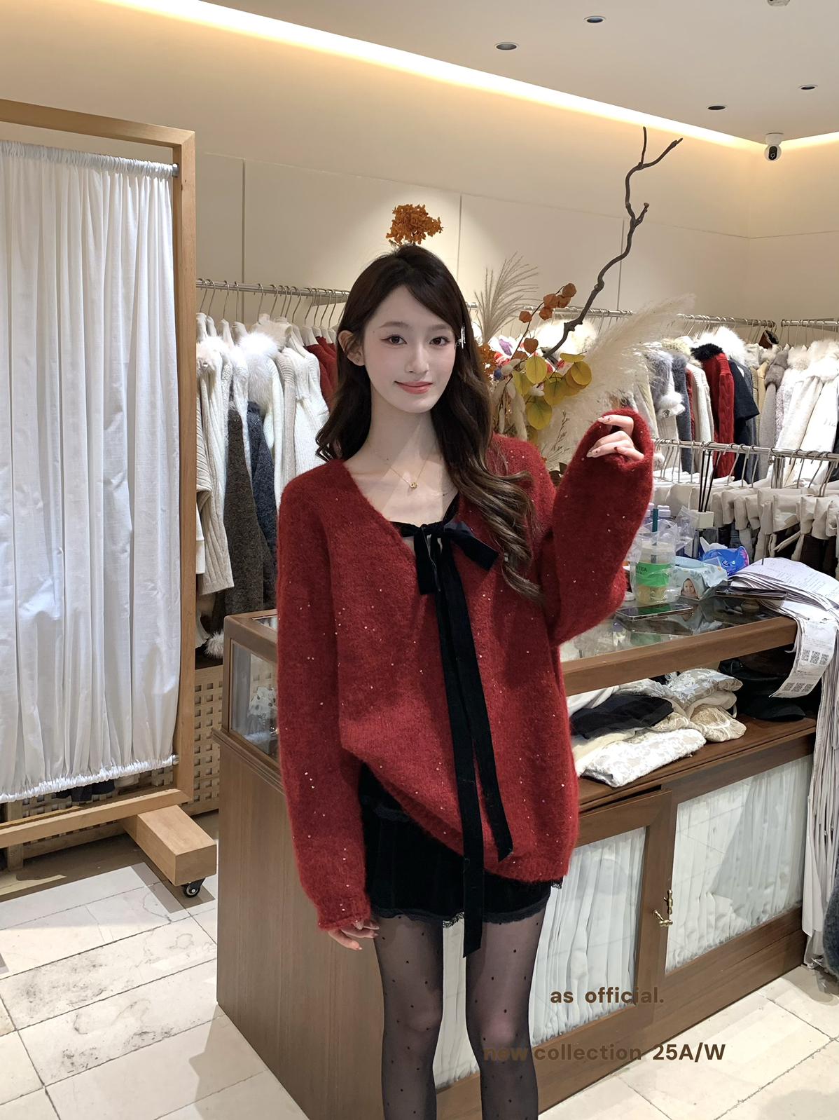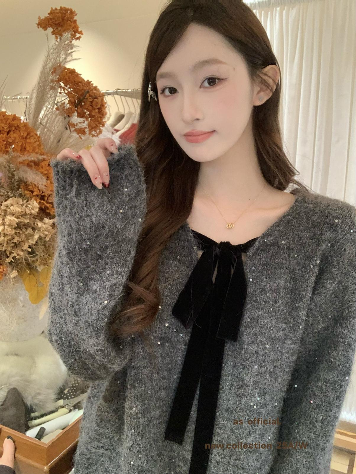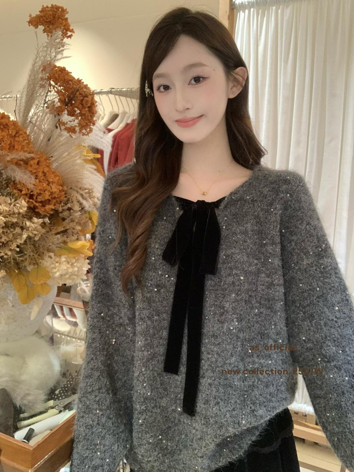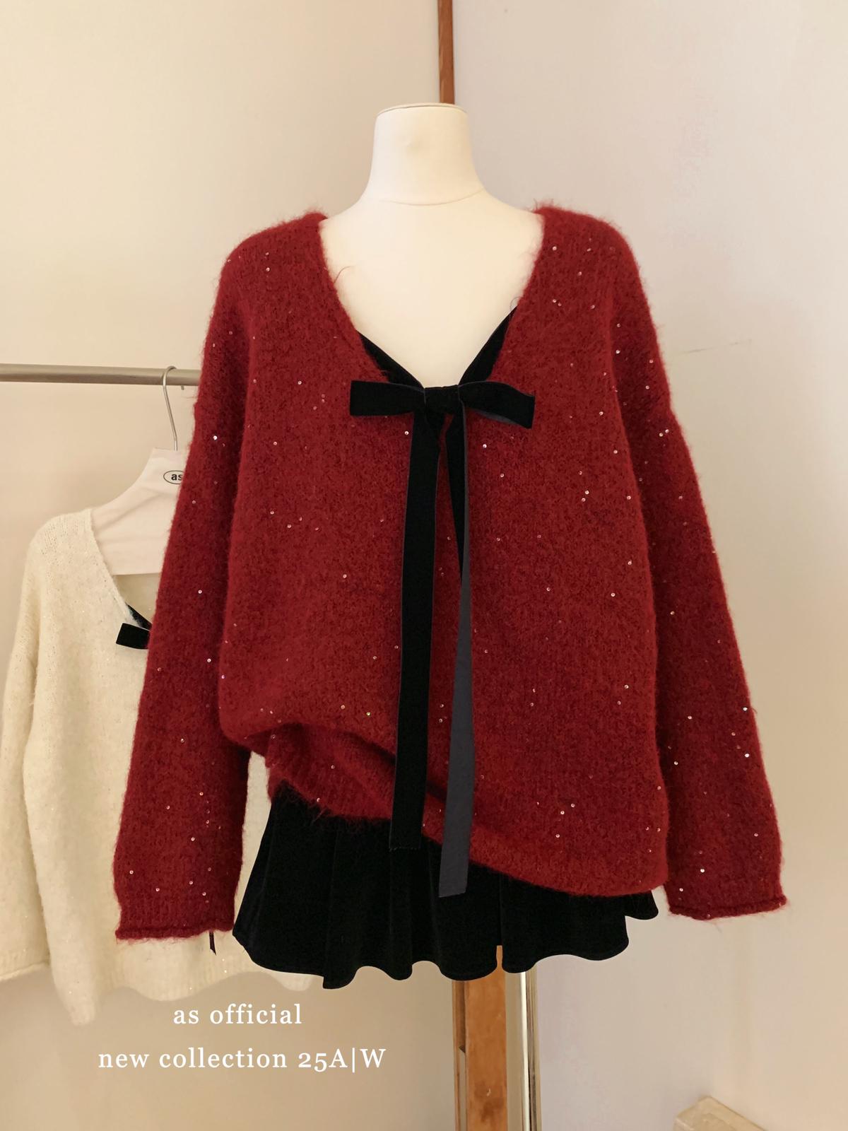【C8196】自帶節日Buff~派對版絲絨蝴蝶結 細閃亮片保暖毛衣
