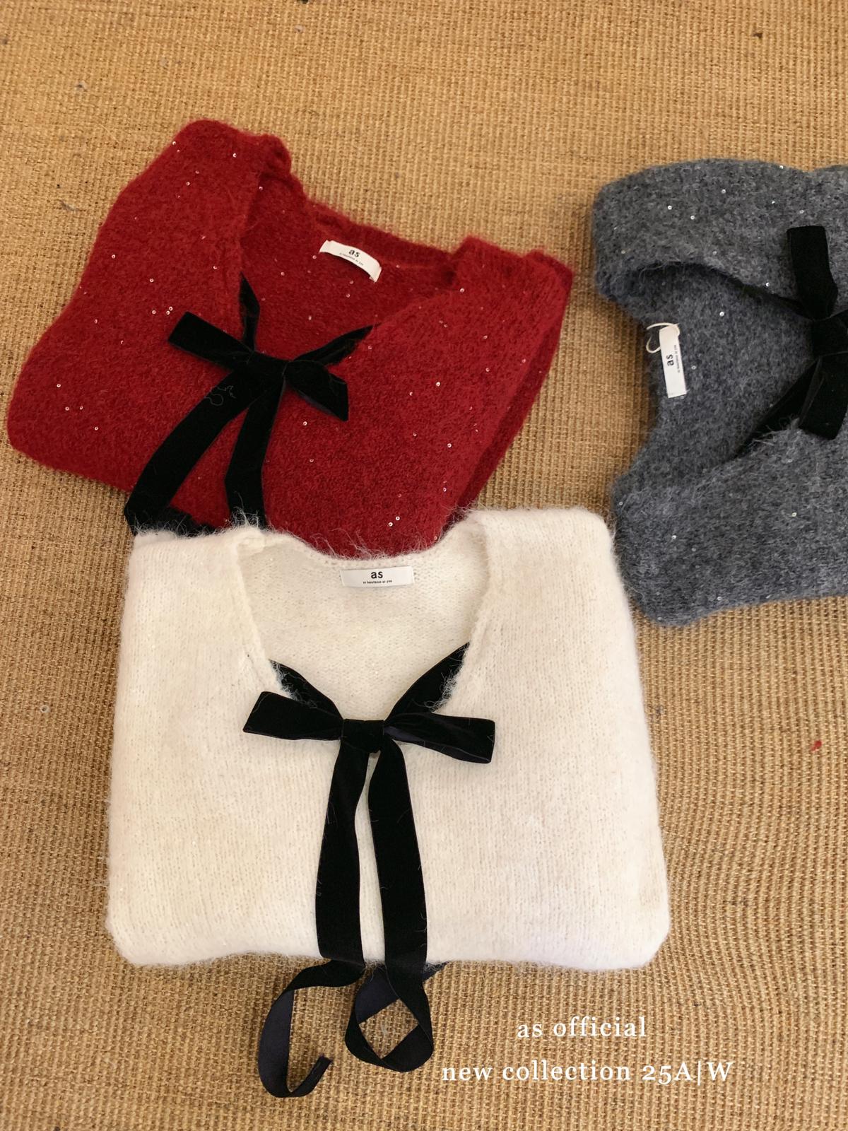 3. 【C8196】自帶節日Buff~派對版絲絨蝴蝶結 細閃亮片保暖毛衣