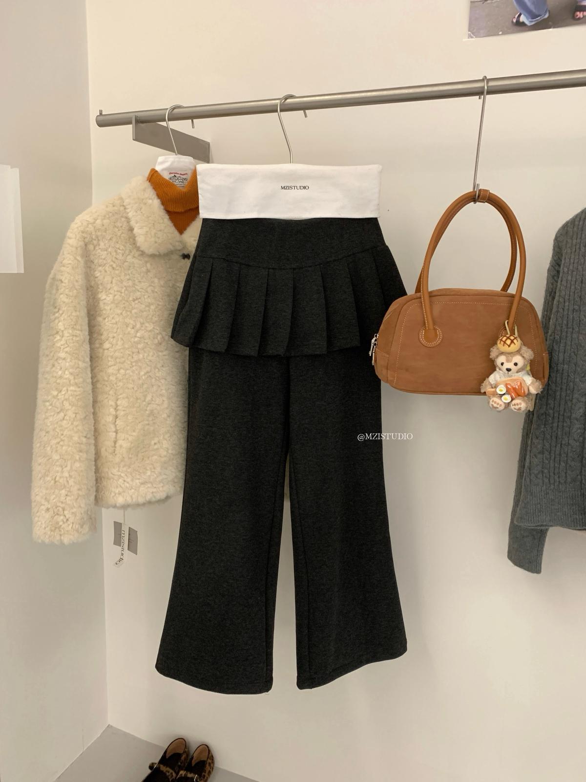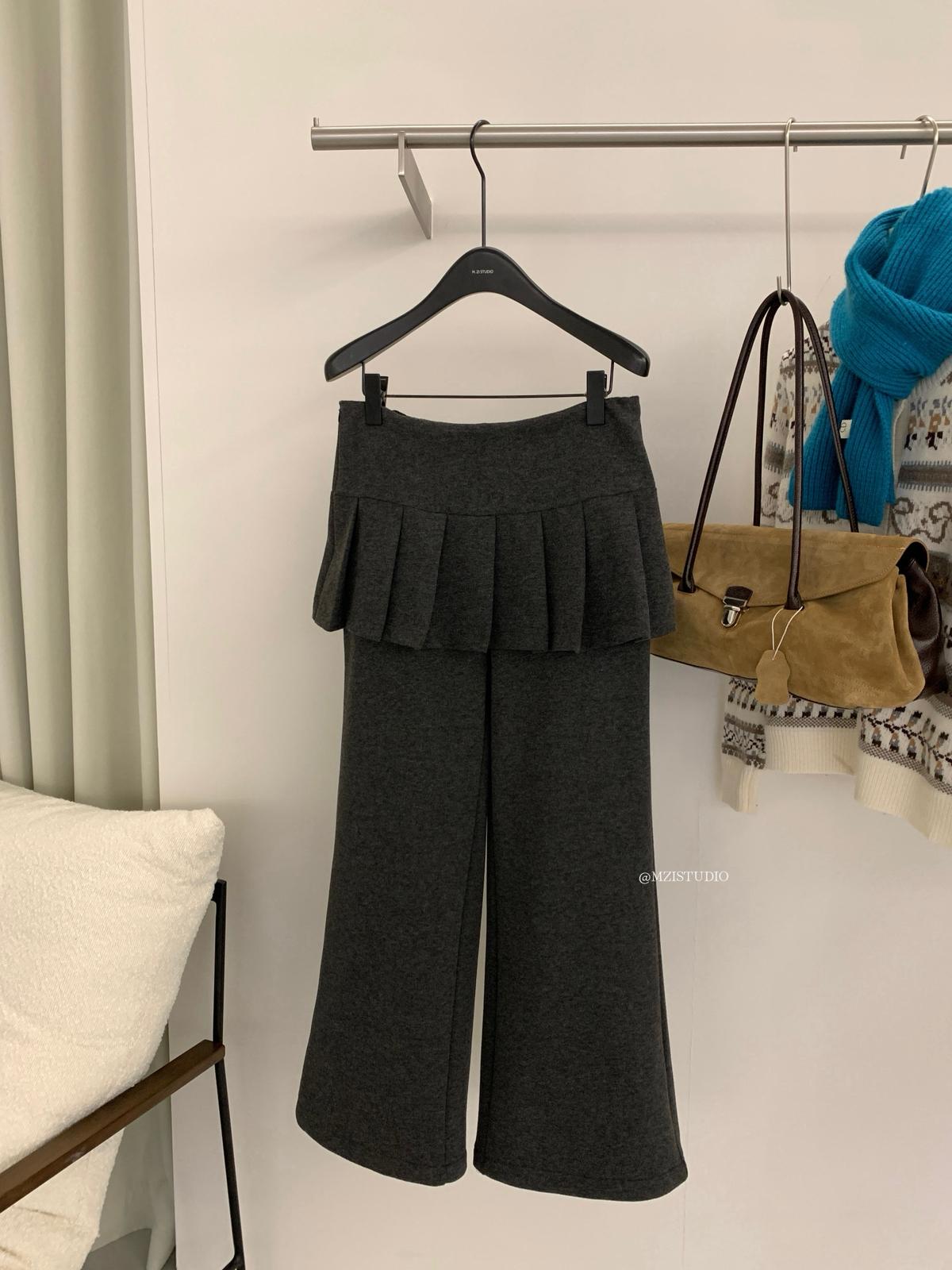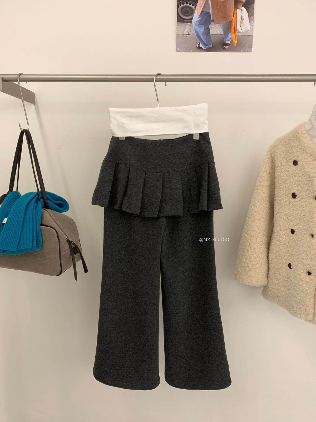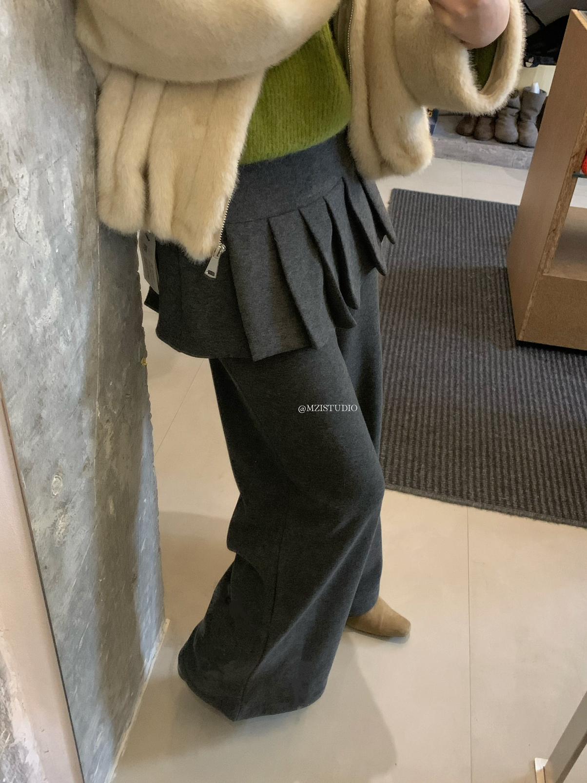 【C8198】勾勒迷人風姿韓系冬日層疊壓褶屁簾微喇闊腿休閒褲