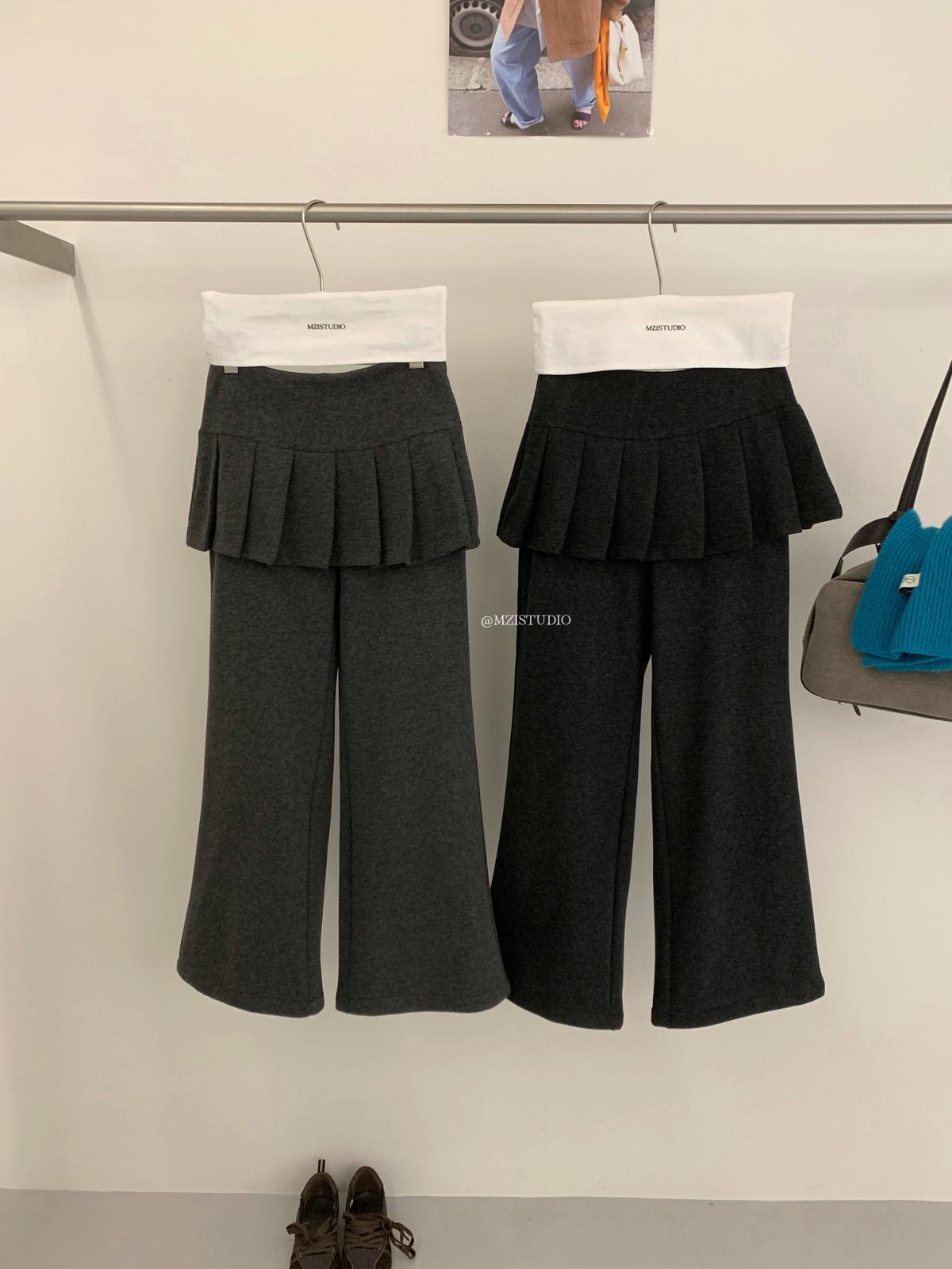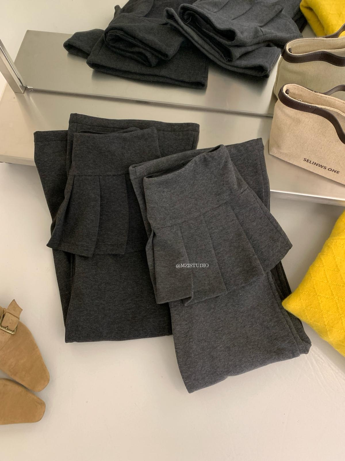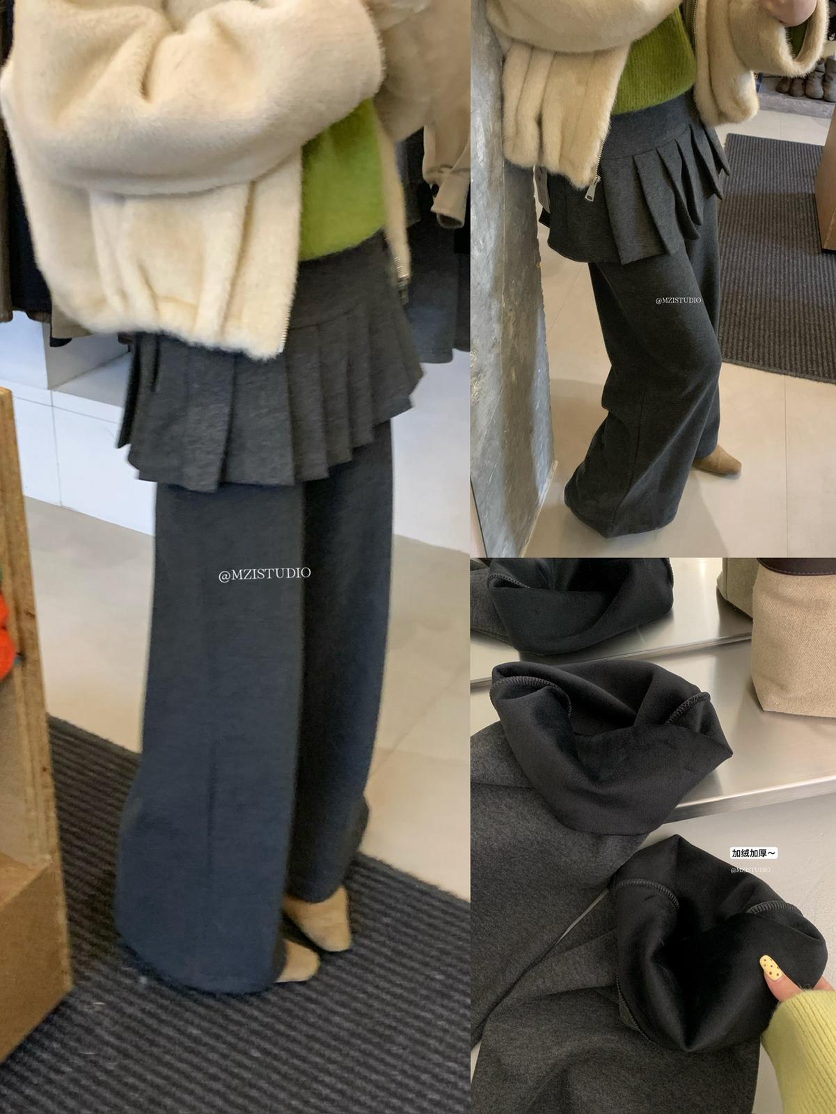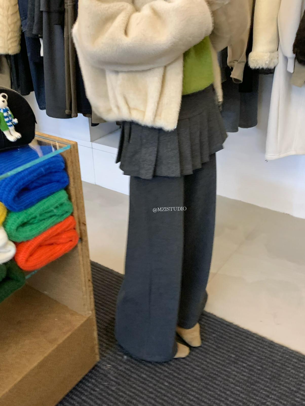 【C8198】勾勒迷人風姿韓系冬日層疊壓褶屁簾微喇闊腿休閒褲