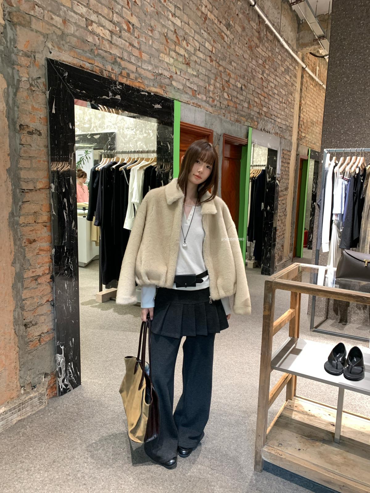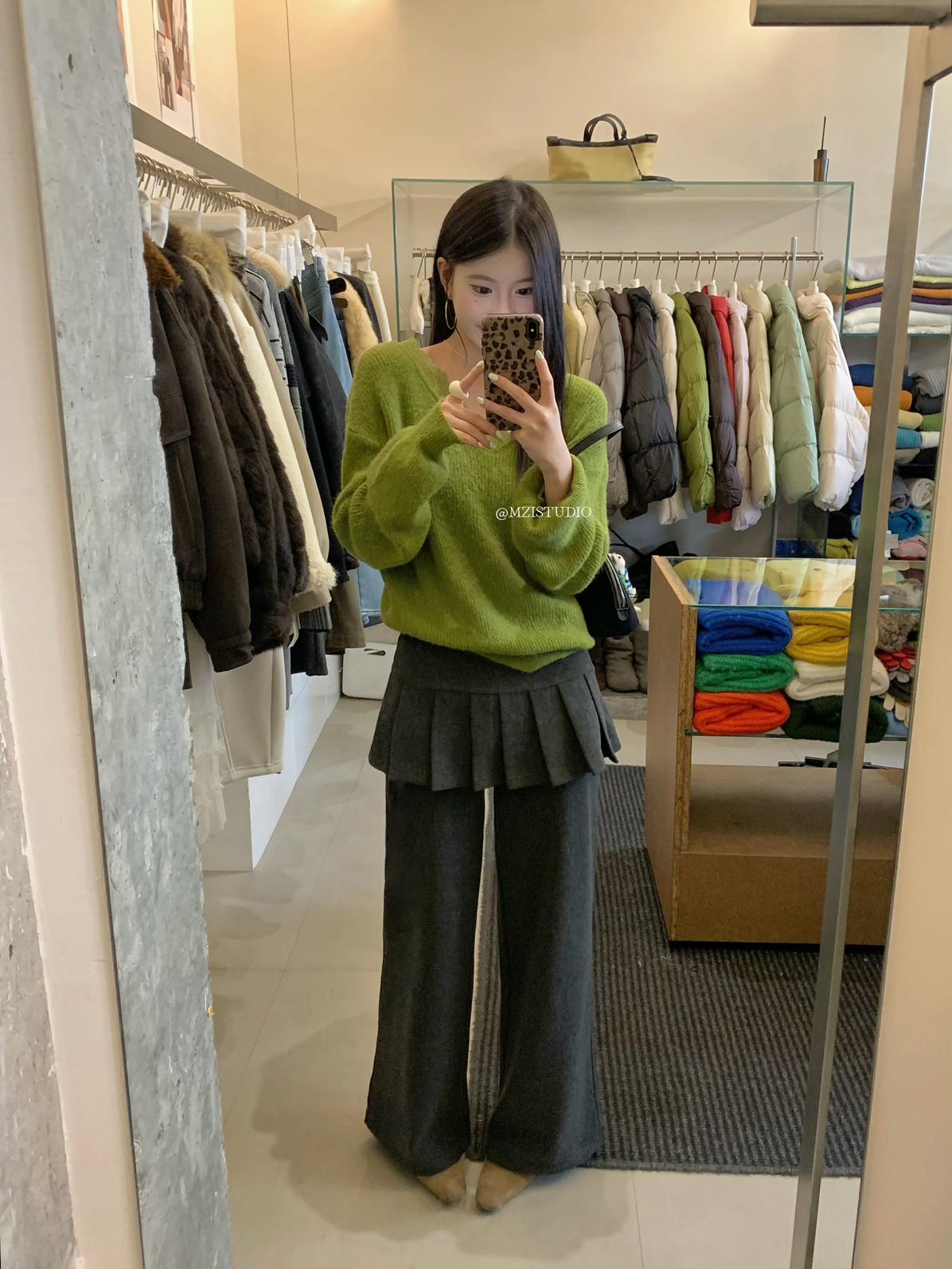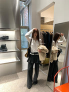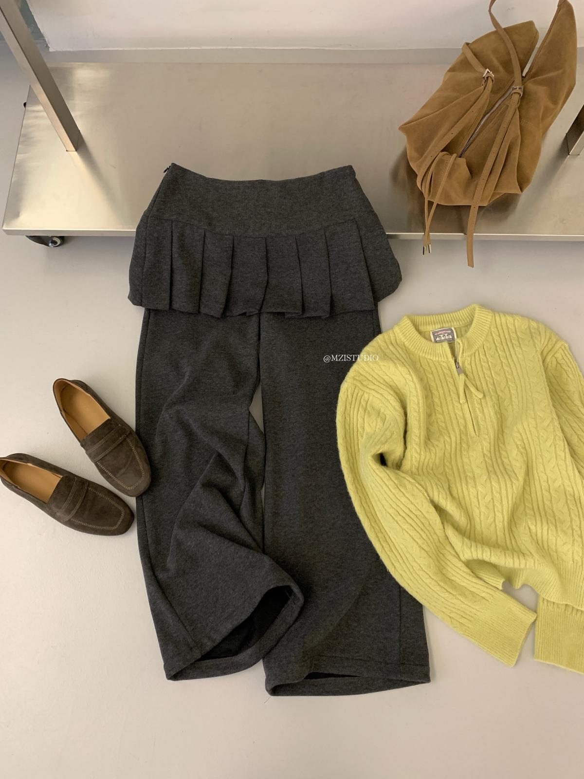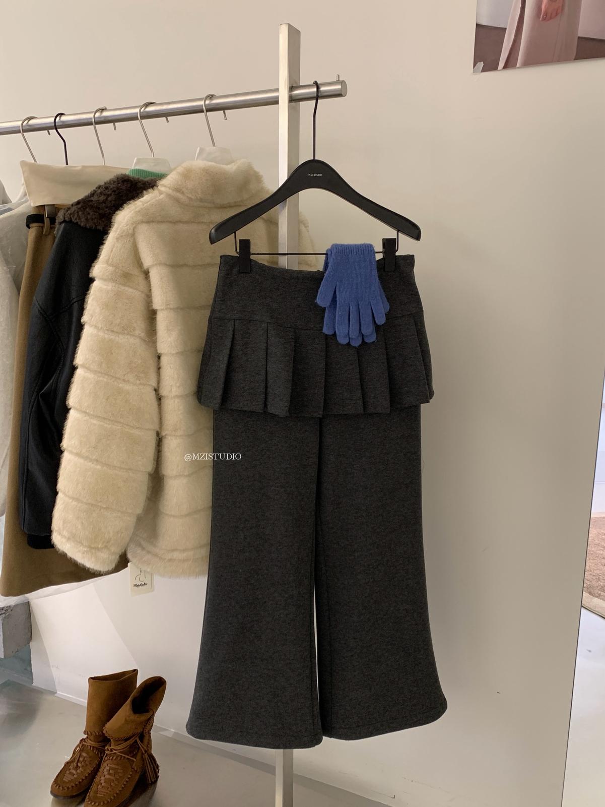 【C8198】勾勒迷人風姿韓系冬日層疊壓褶屁簾微喇闊腿休閒褲