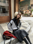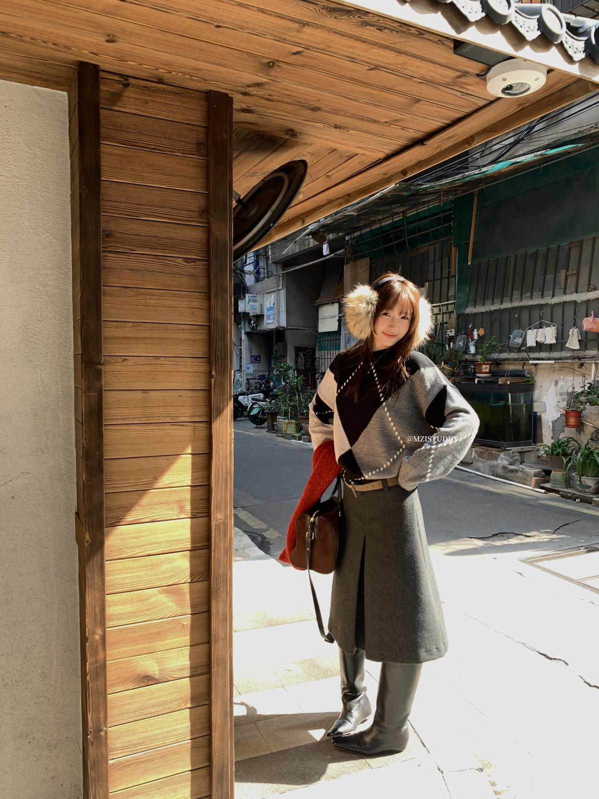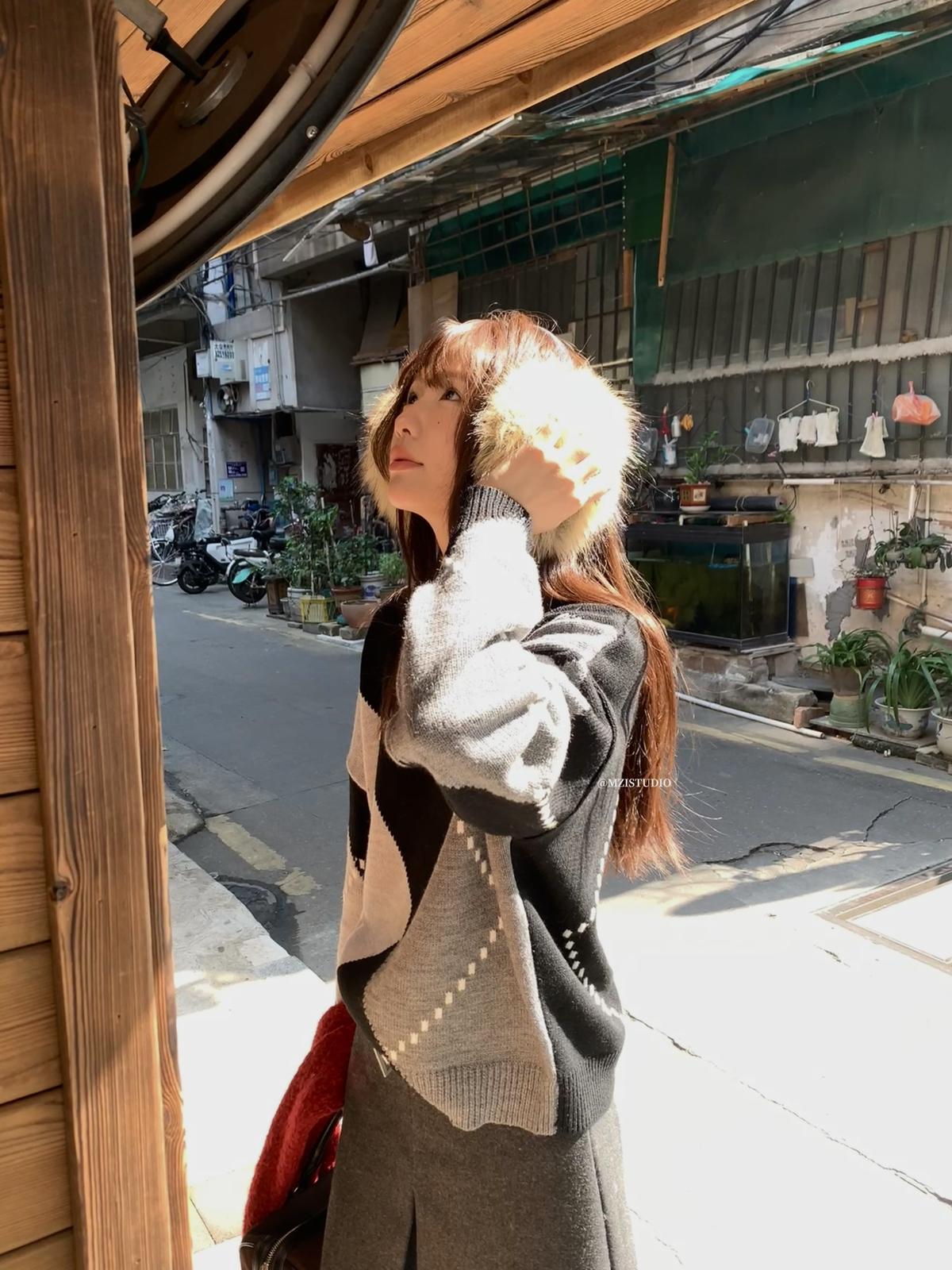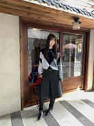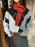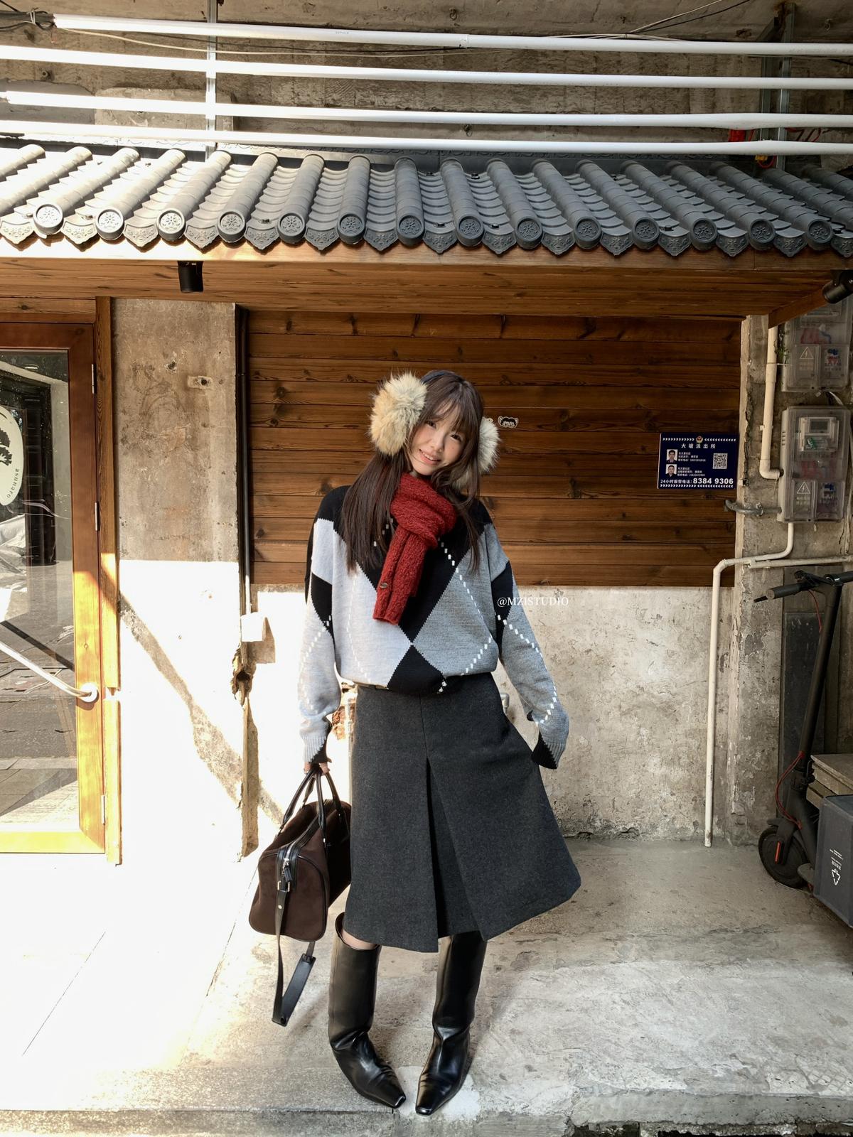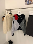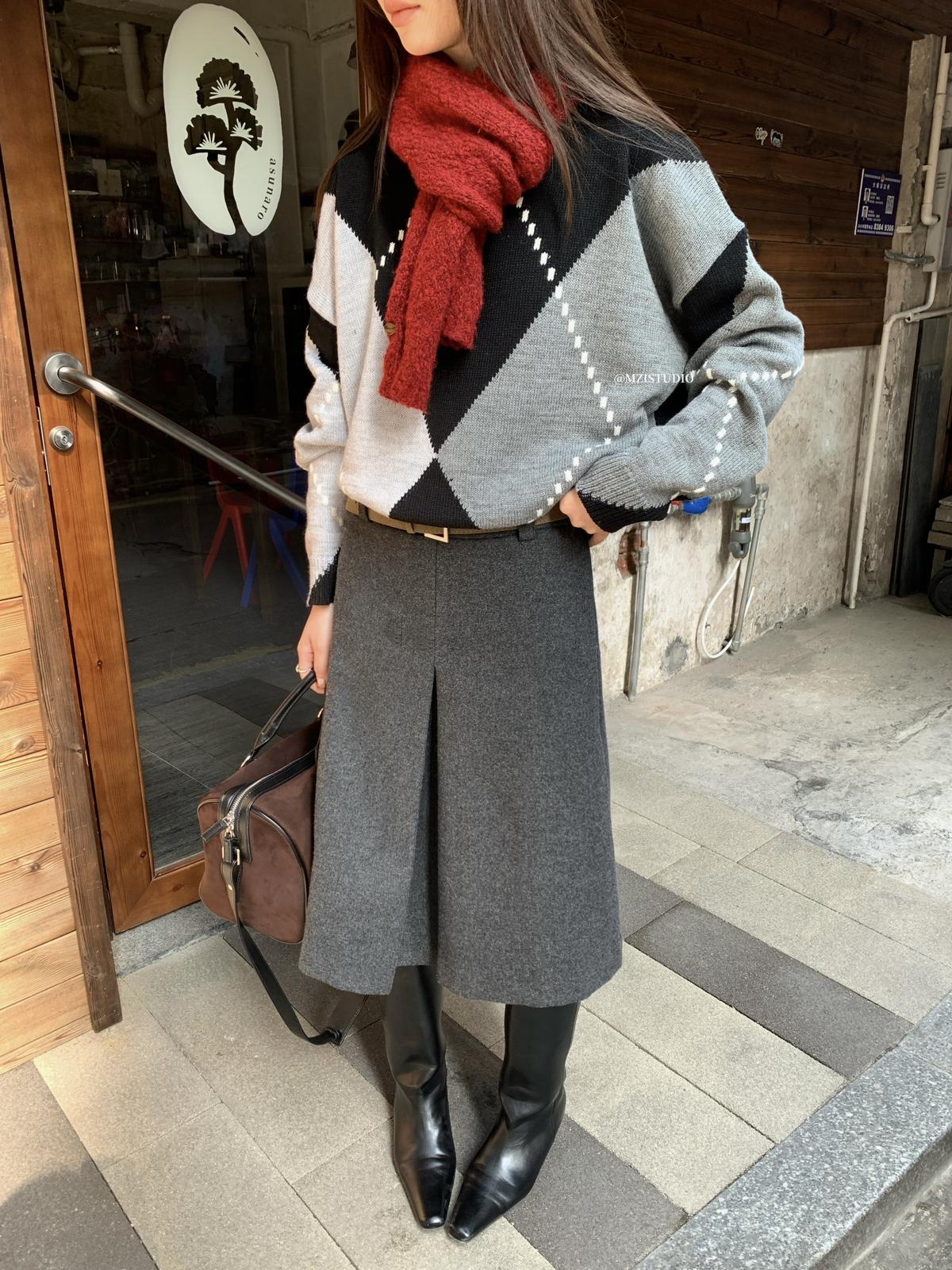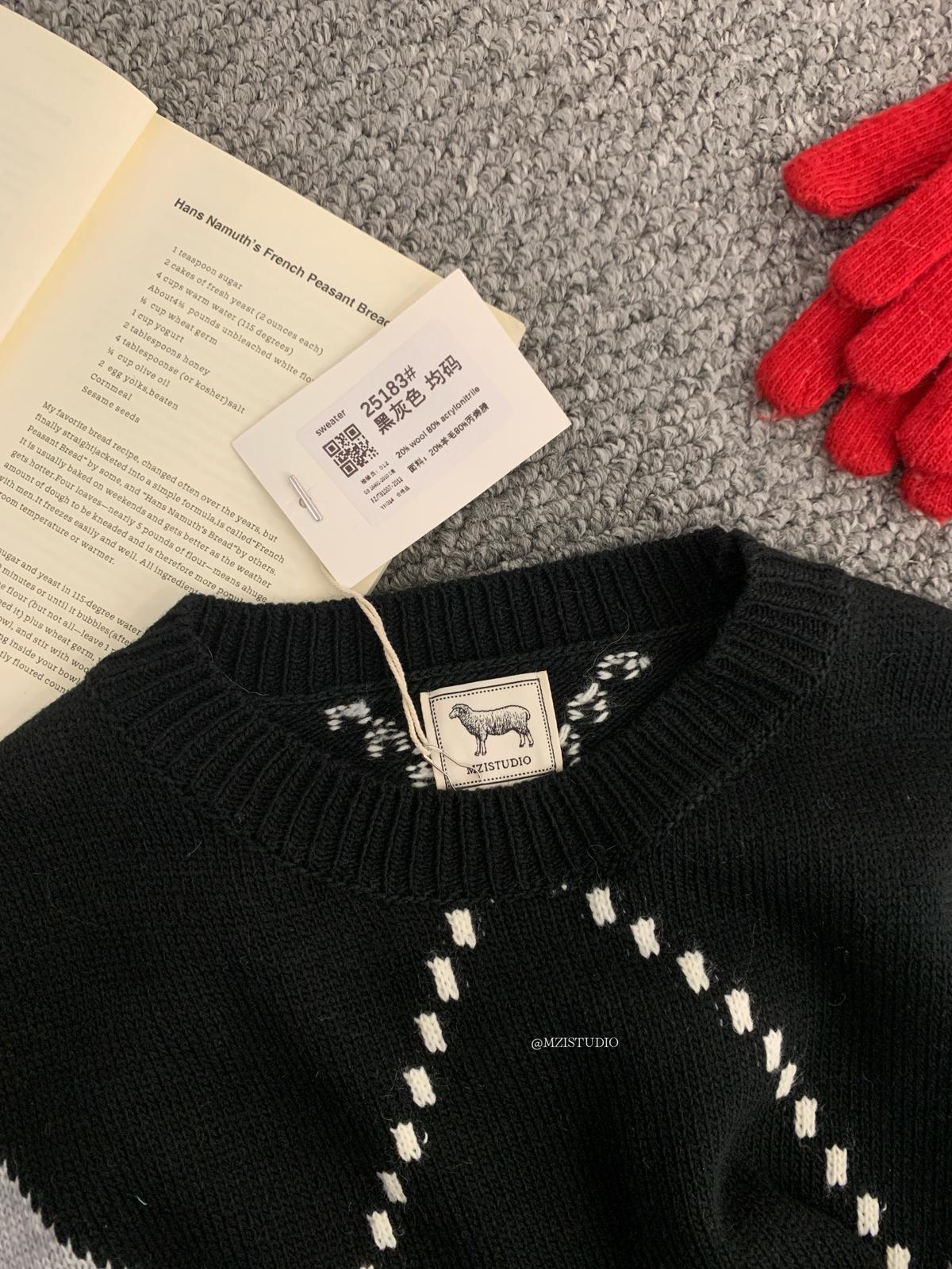 3. 【C8201】經典不過時韓版大菱形復古冬日神祕黑灰色軟糯套頭保暖毛衣(含20%羊毛)