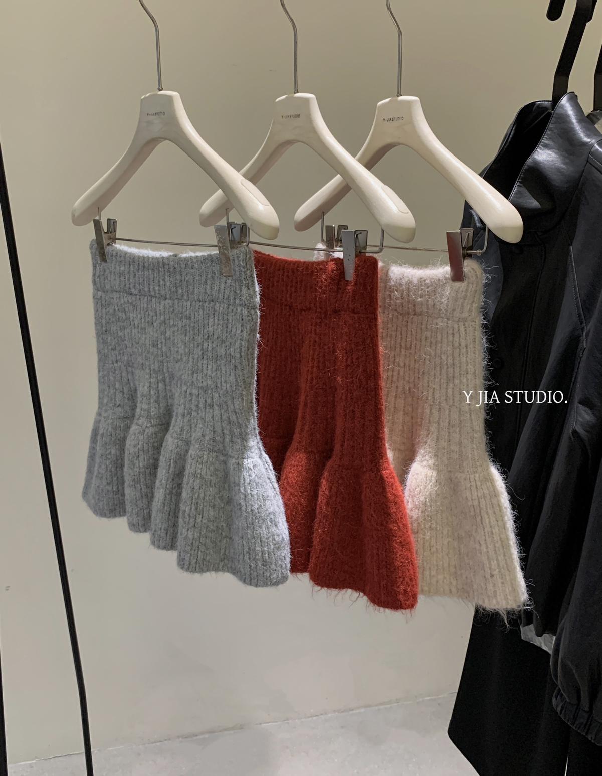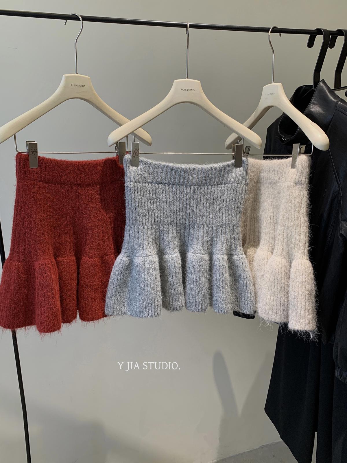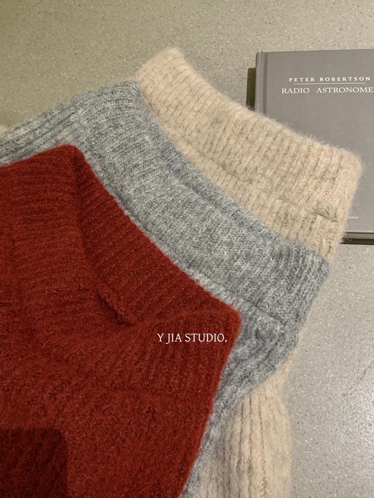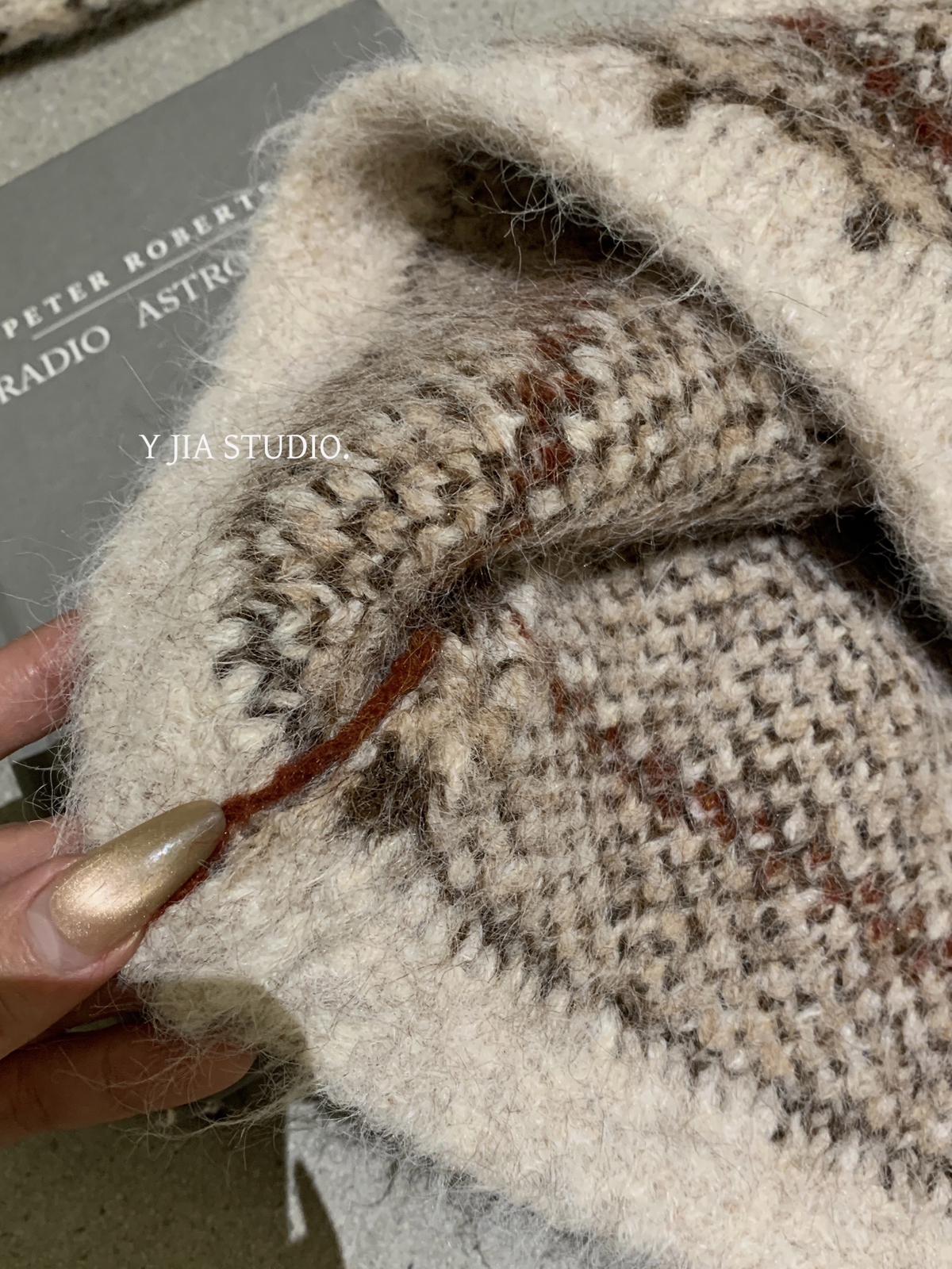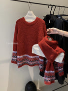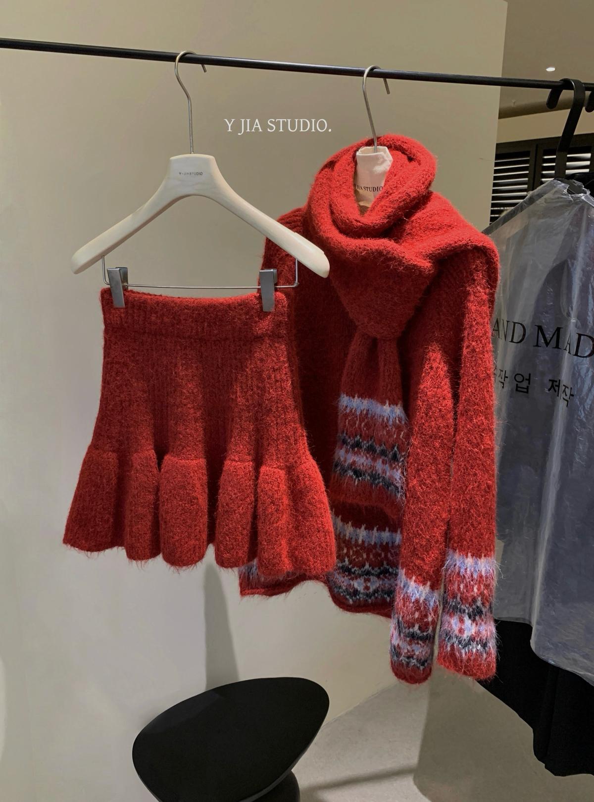 【C8203】秋冬費爾島風復古慵懶風提花毛衣+短裙套裝(配圍巾)