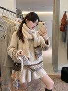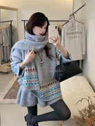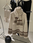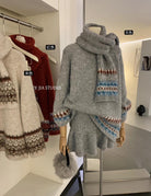 3. 【C8203】秋冬費爾島風復古慵懶風提花毛衣+短裙套裝(配圍巾)