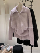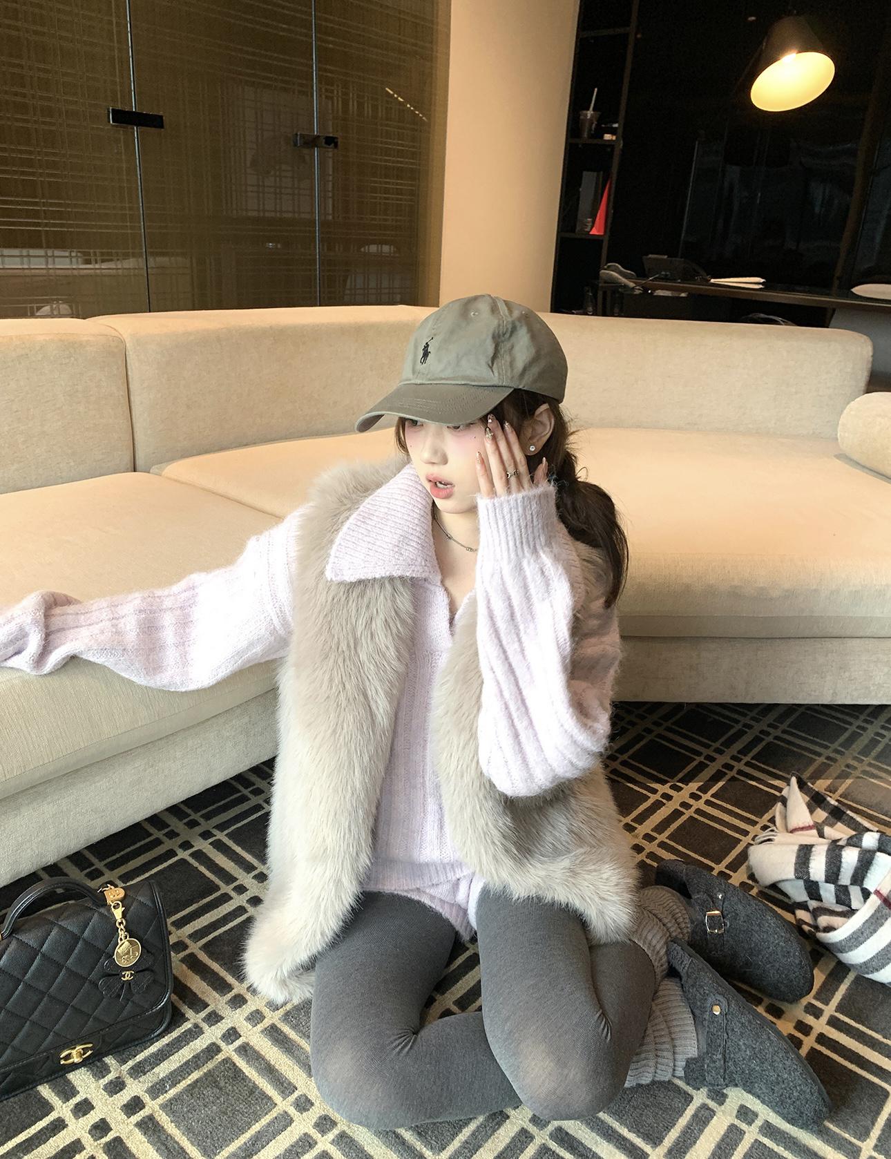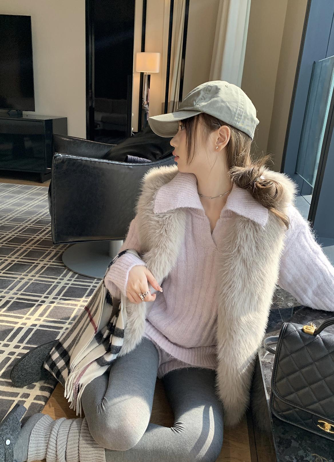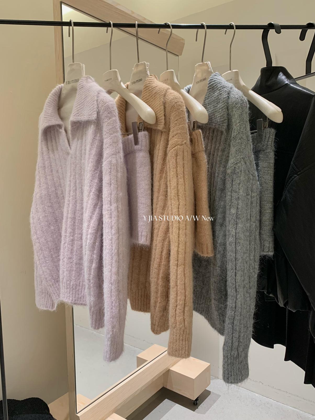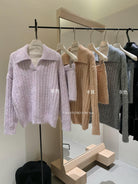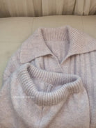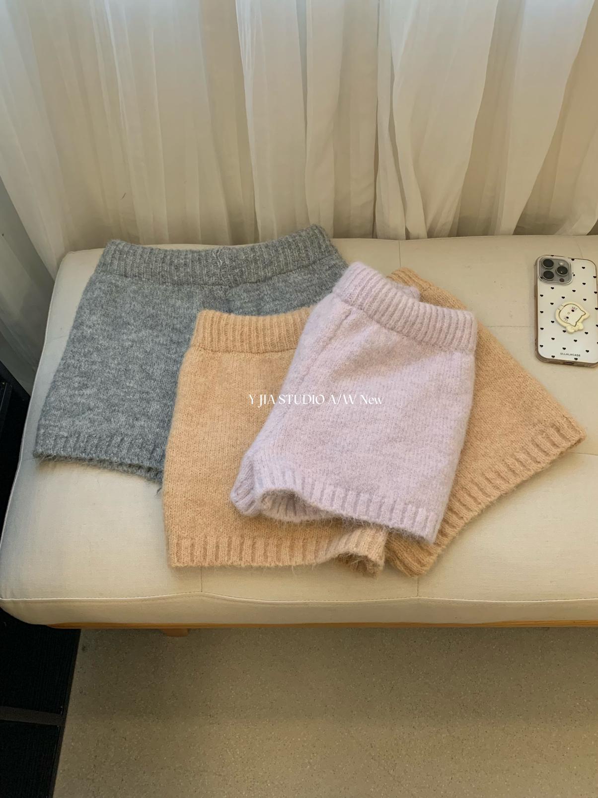 3. 【C8204】「明洞歐尼」巨好看的套裝女慵懶休閒翻領針織毛衣+高腰休閒短褲套裝