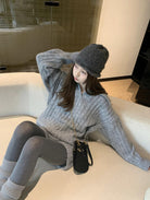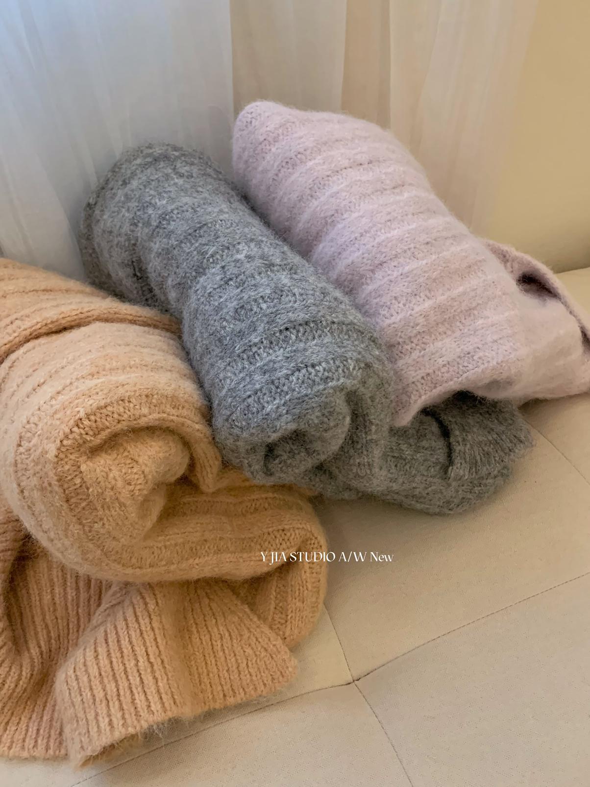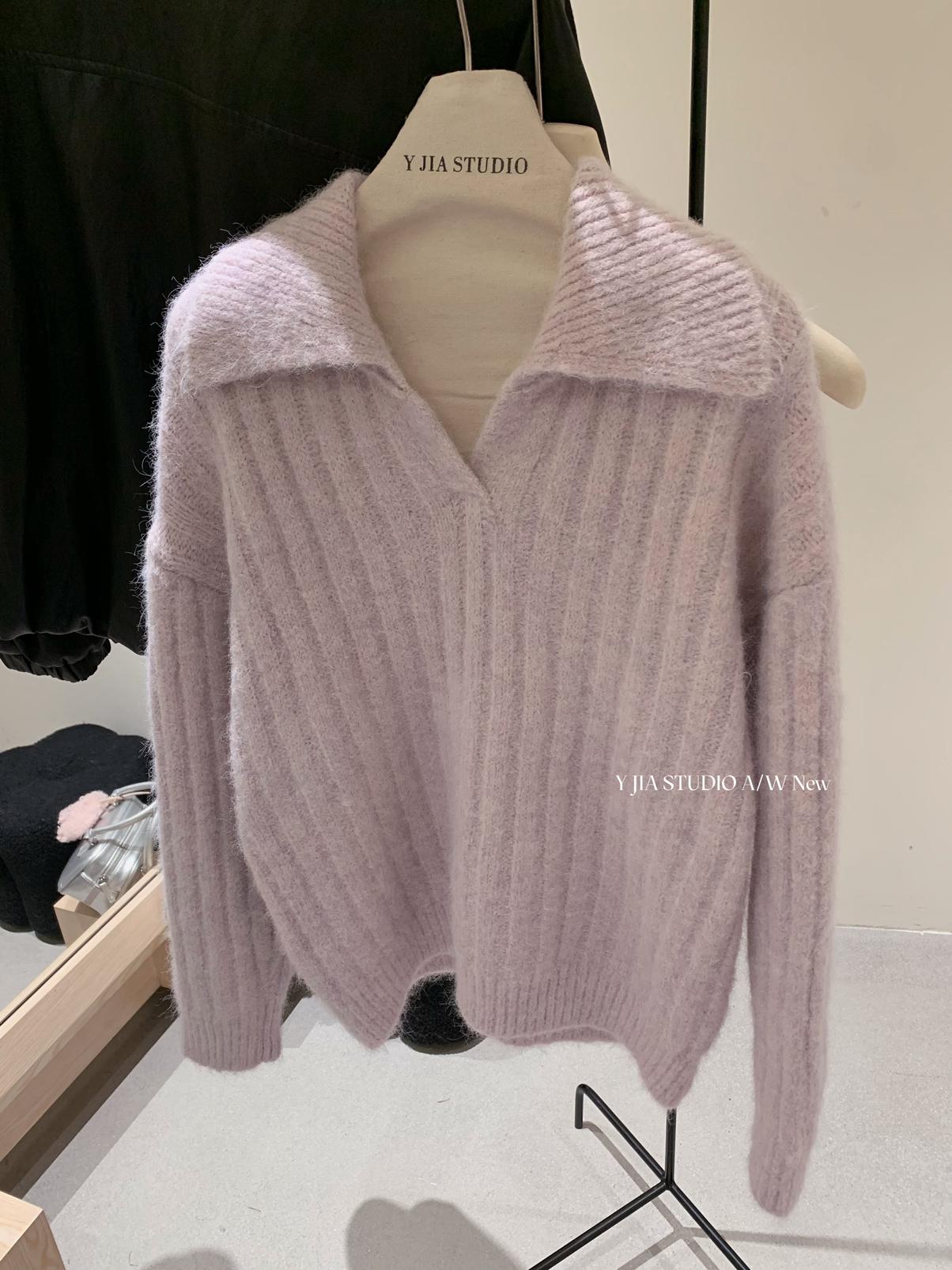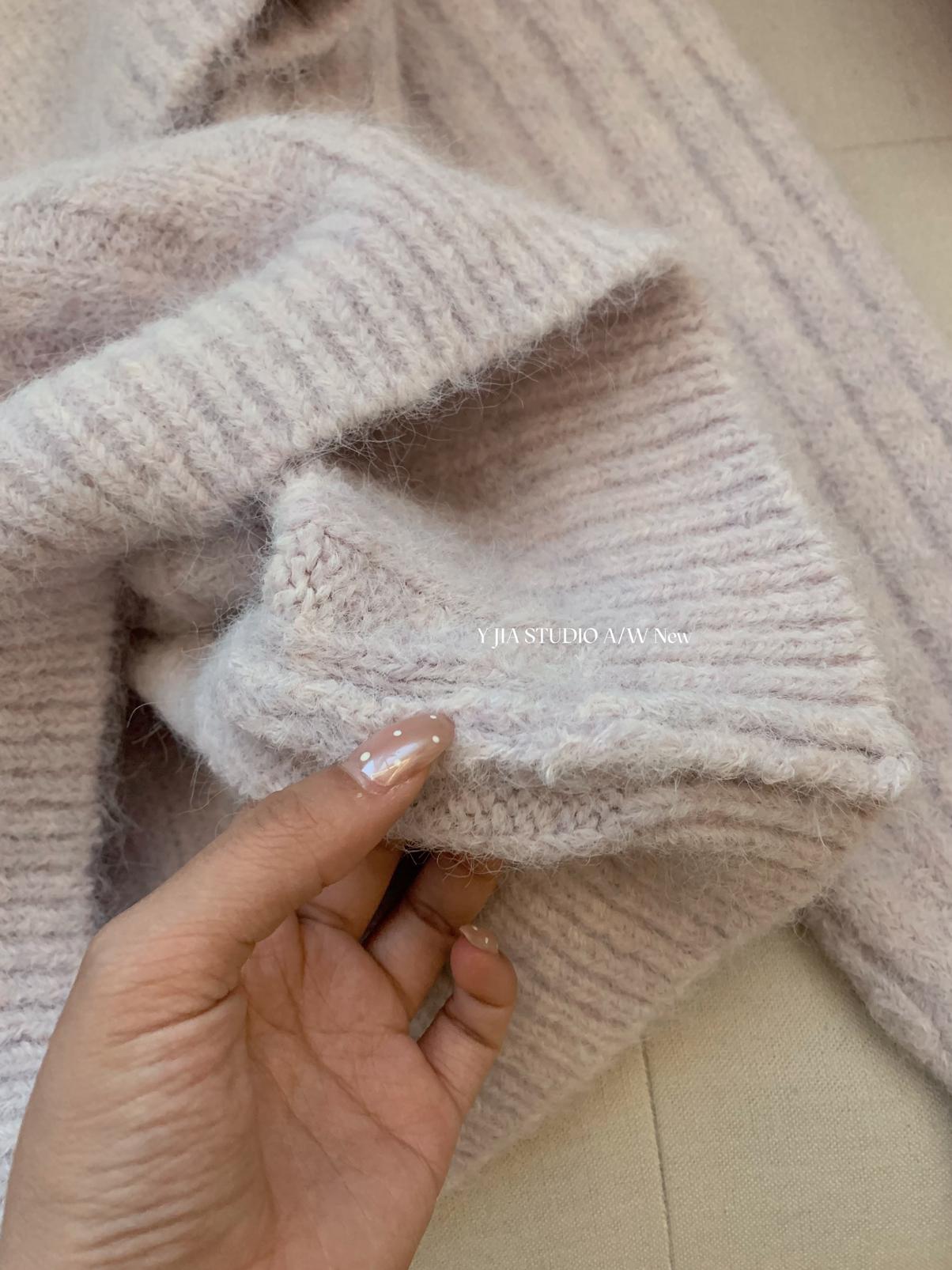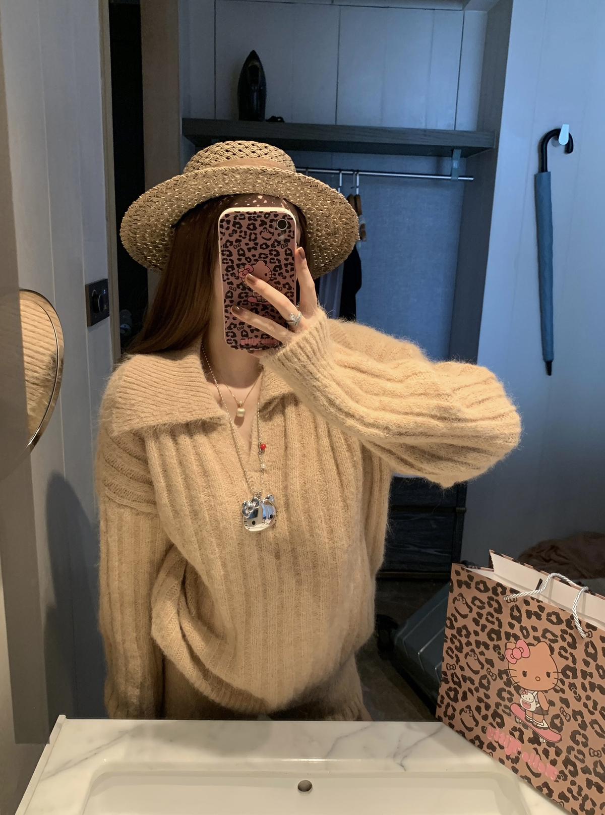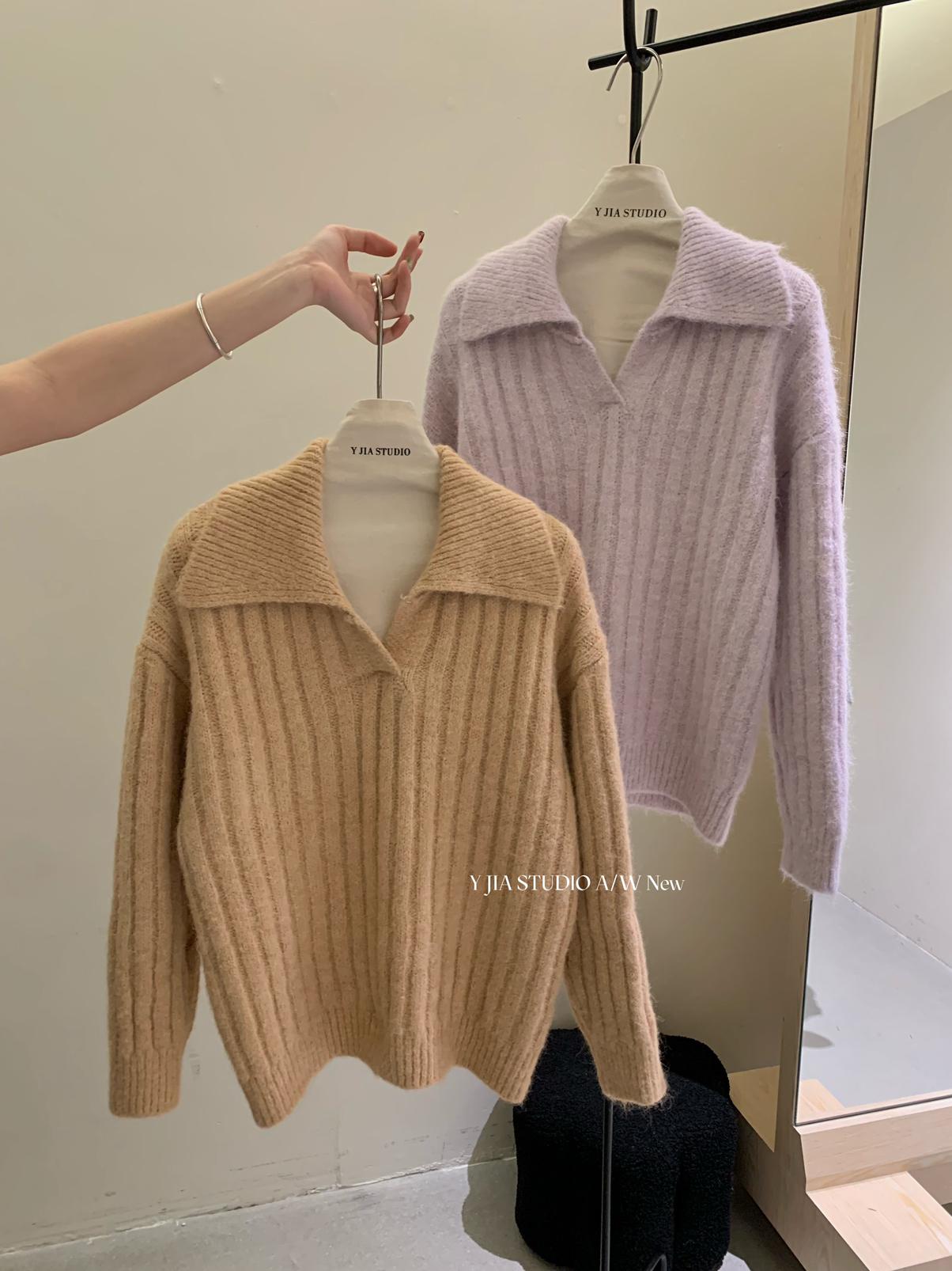【C8204】「明洞歐尼」巨好看的套裝女慵懶休閒翻領針織毛衣+高腰休閒短褲套裝