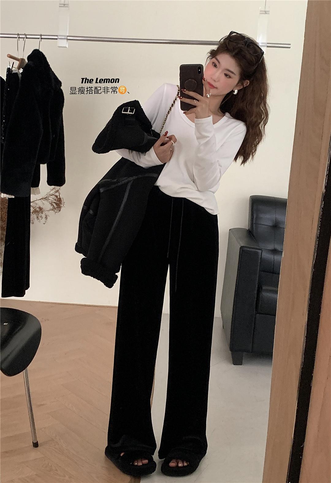 【C8211】一條質感絕絕的絲絨褲!高克重高腰顯瘦加絨休閒褲
