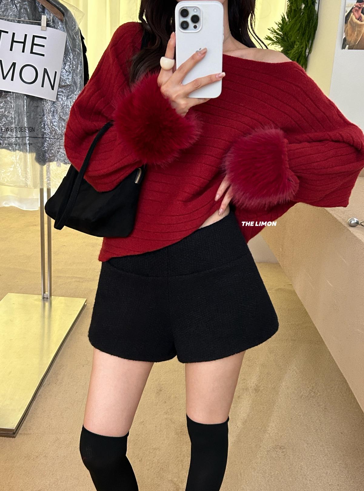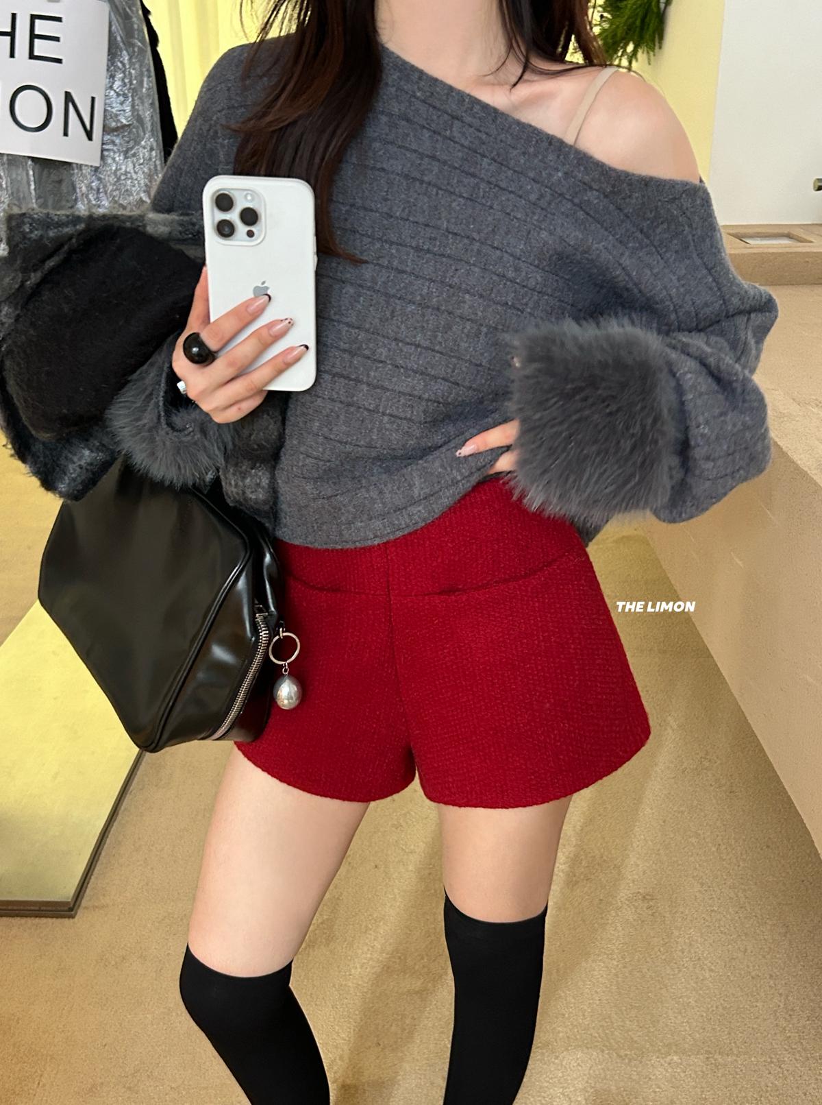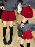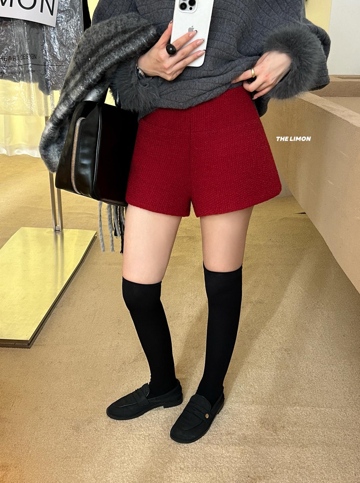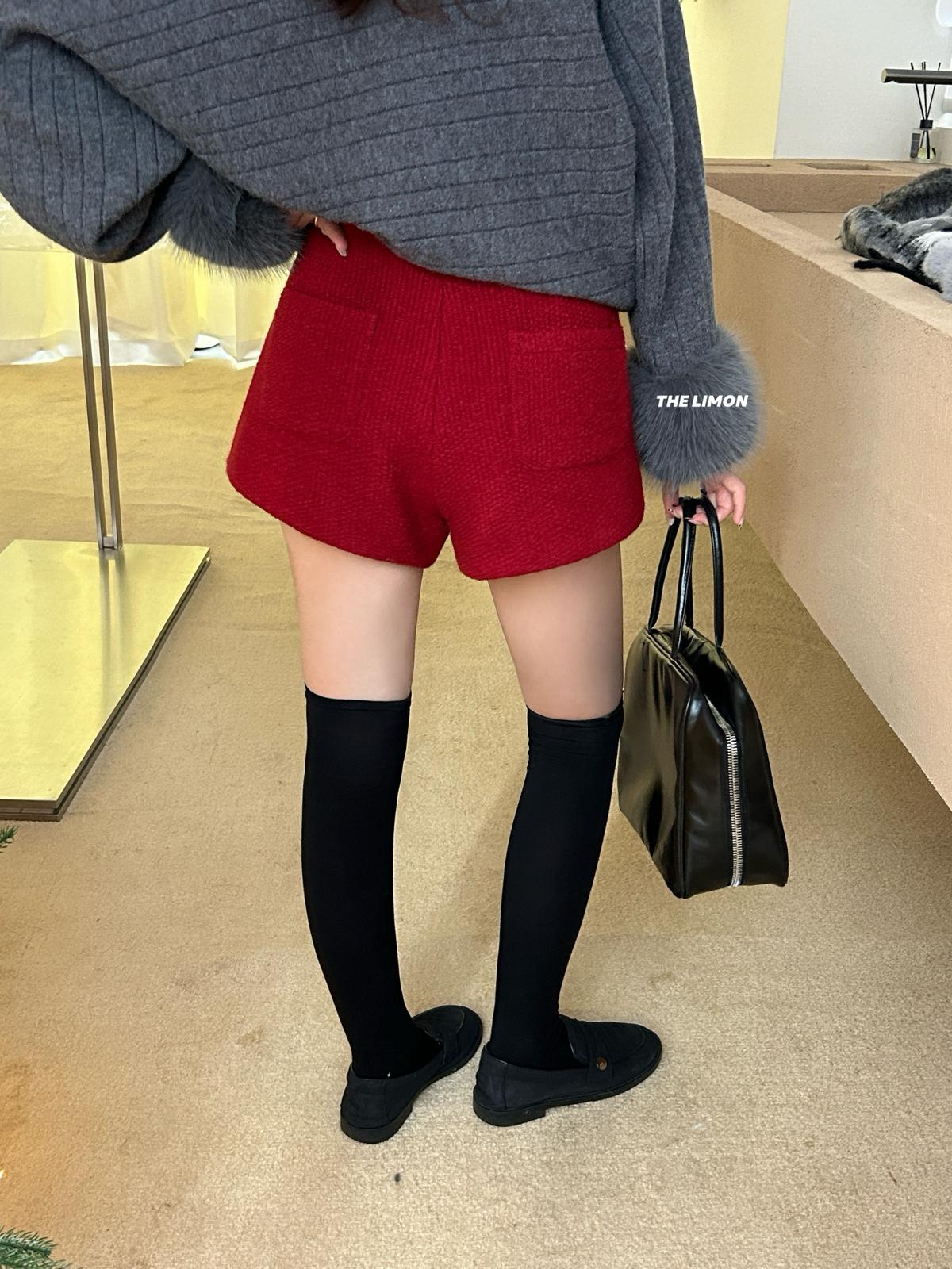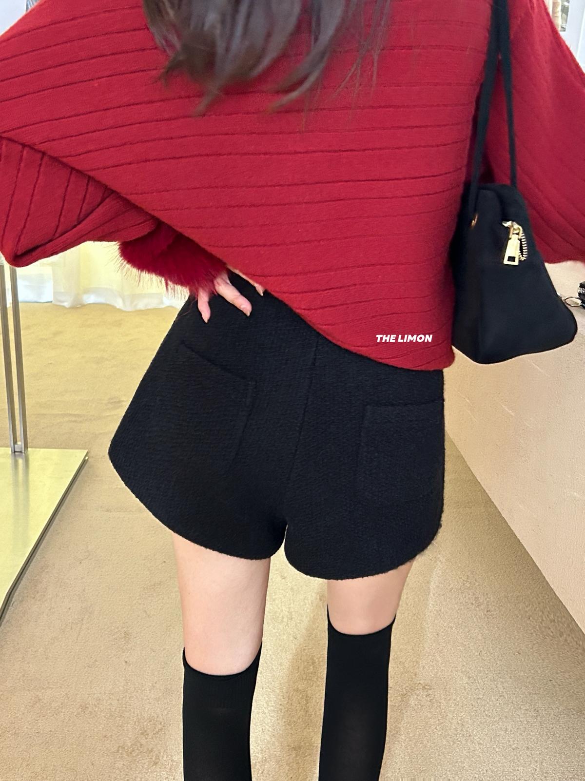【C8212】肌理感小香褲高腰遮胯顯瘦毛呢休閒短褲(含22%羊毛)