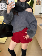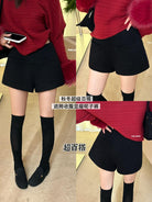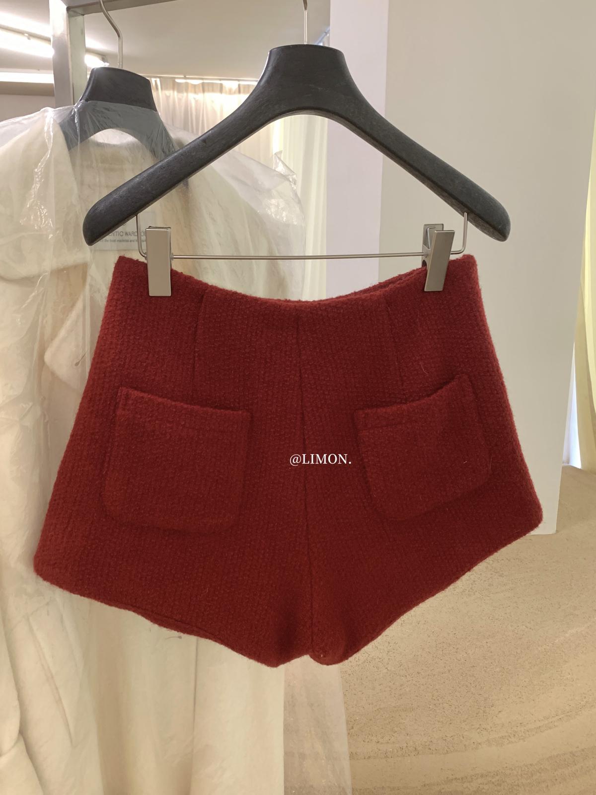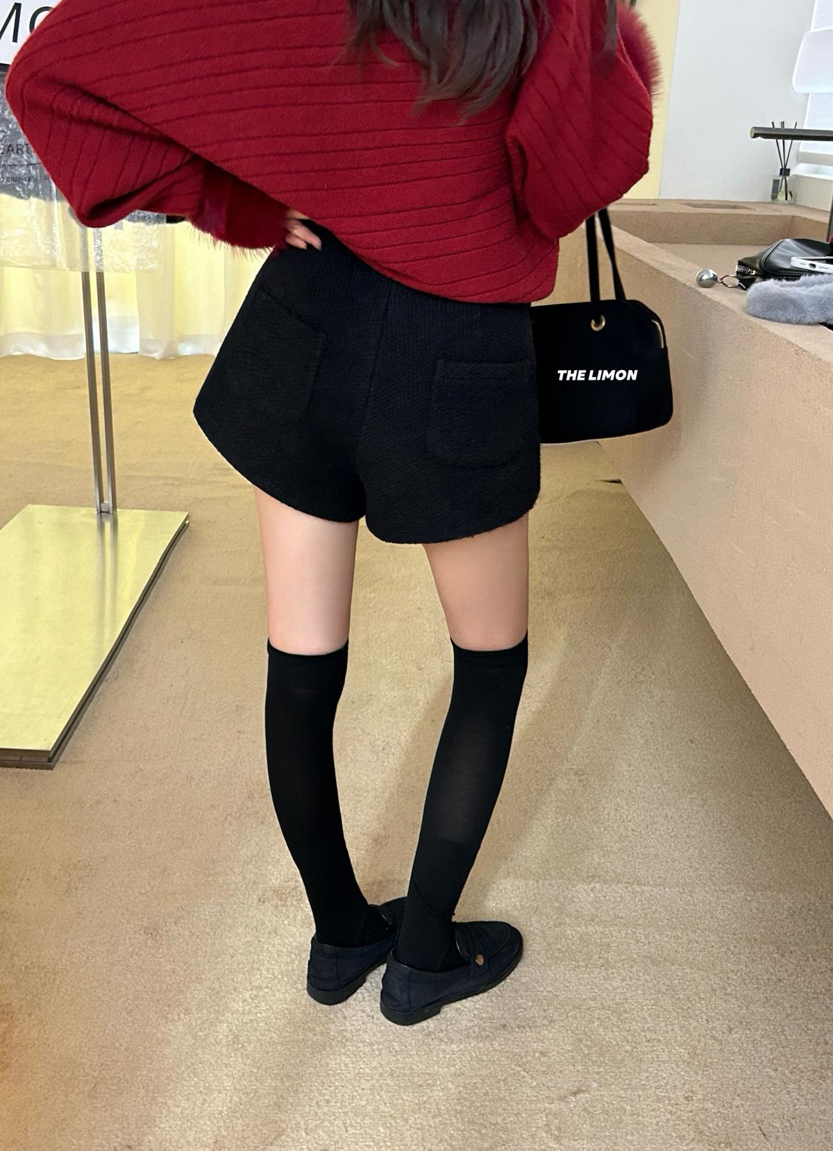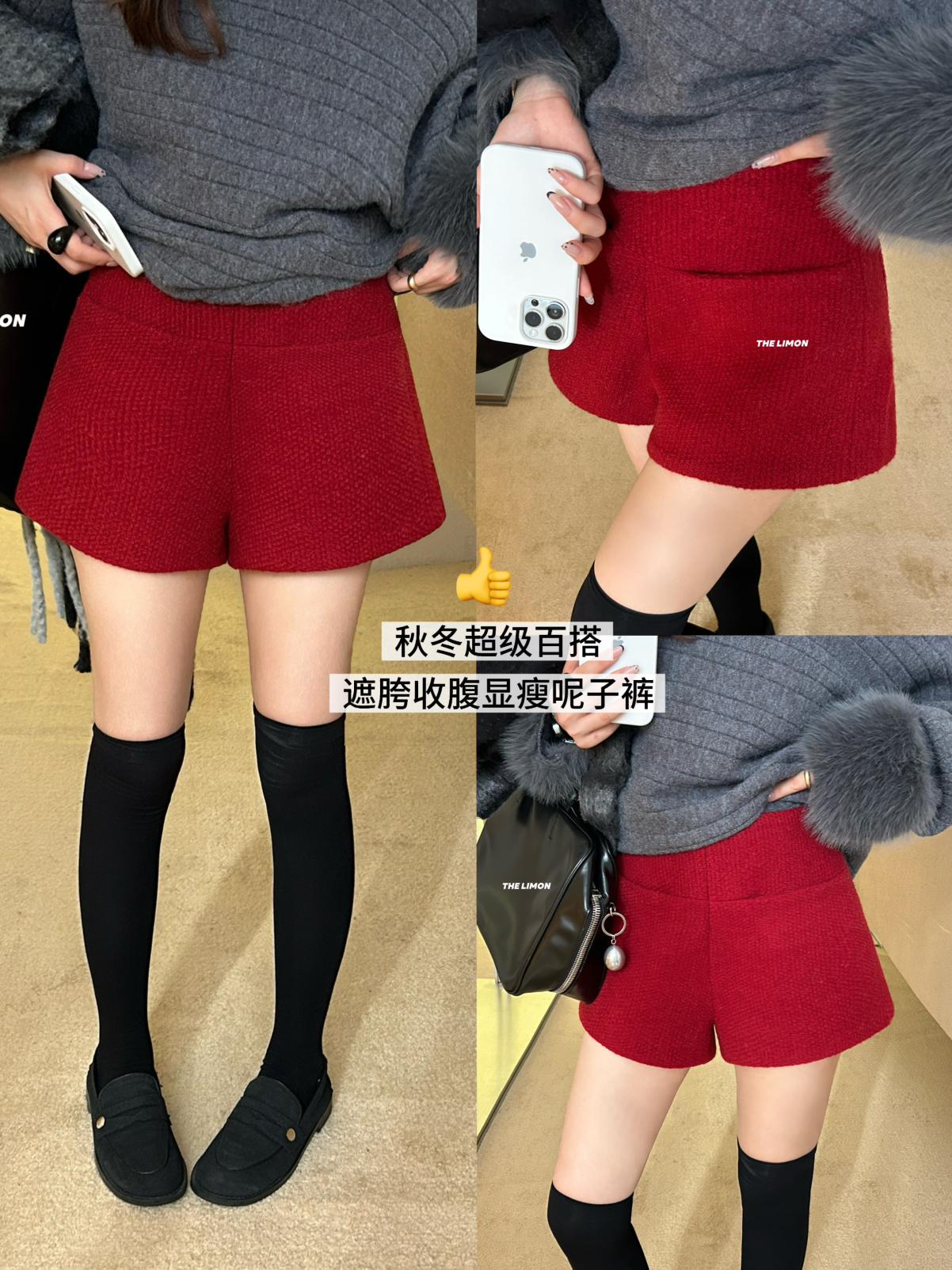 3. 【C8212】肌理感小香褲高腰遮胯顯瘦毛呢休閒短褲(含22%羊毛)