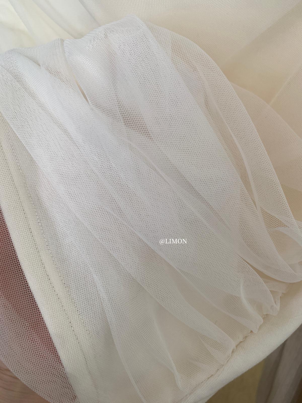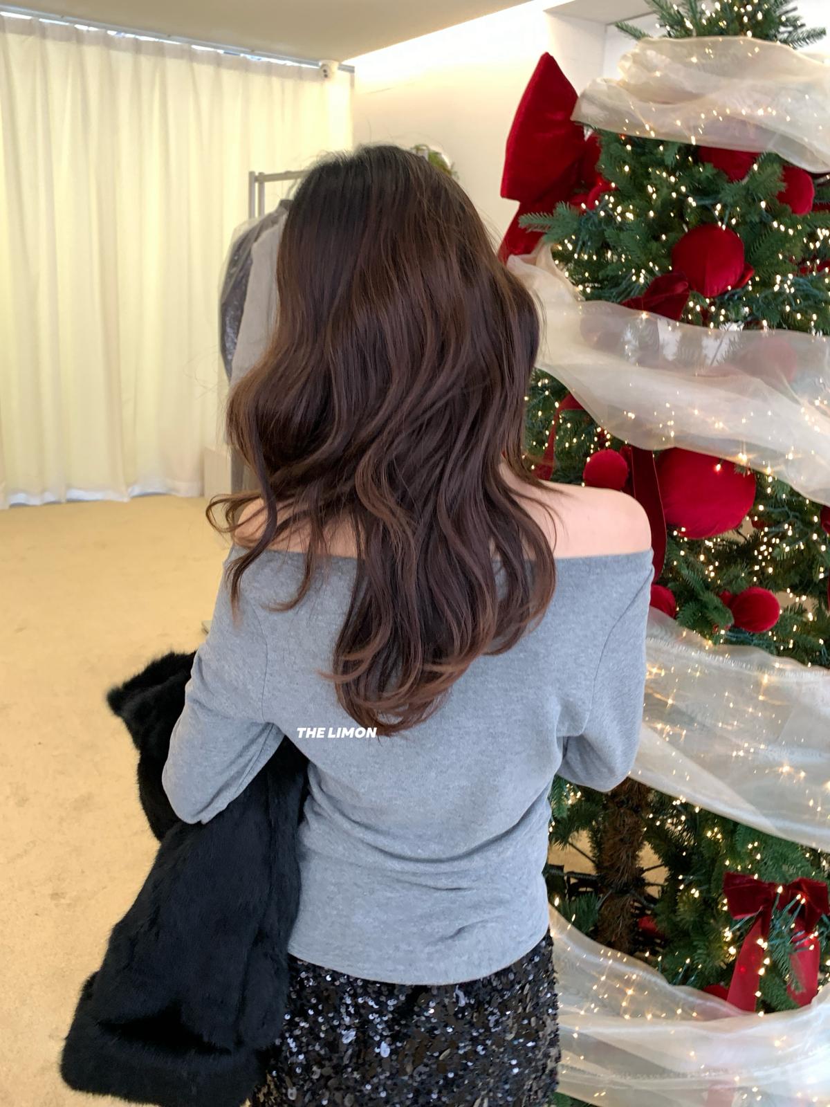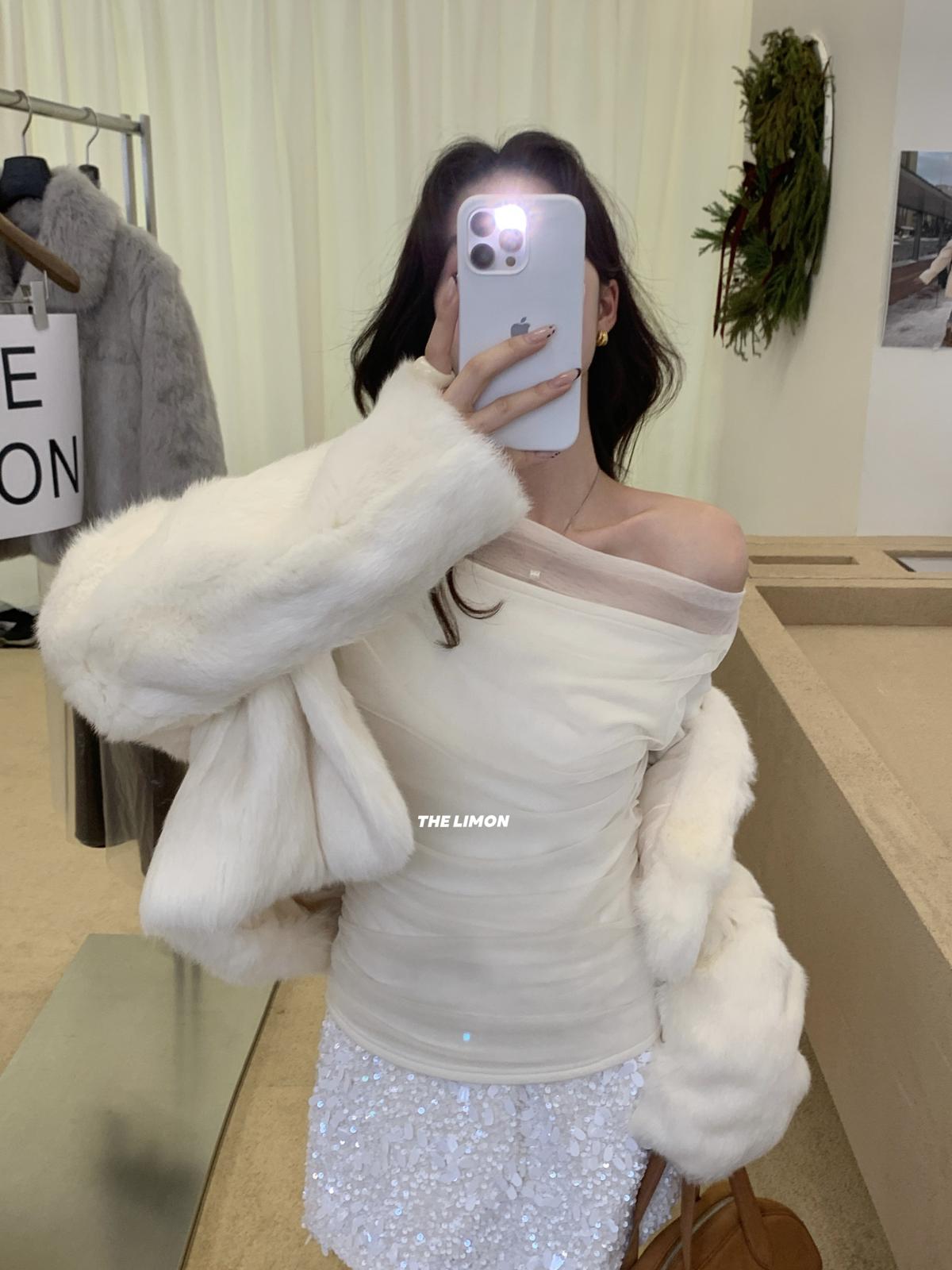 3. 【C8224】氛圍一字肩拼接網紗褶皺修身長袖T針織衫
