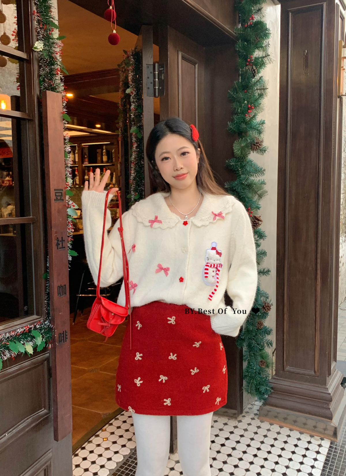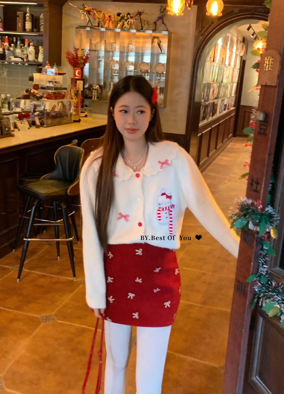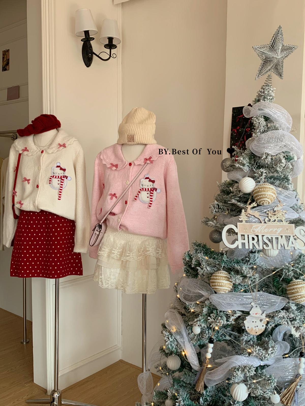 【C8228】爆款推薦必入!節日氣氛蝴蝶結設計可愛雪人毛衣系列保暖毛衣