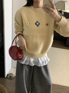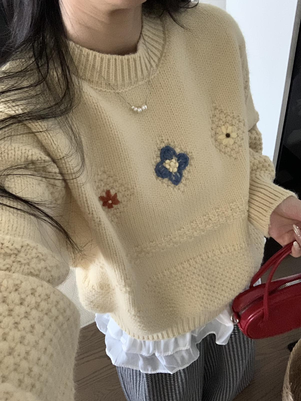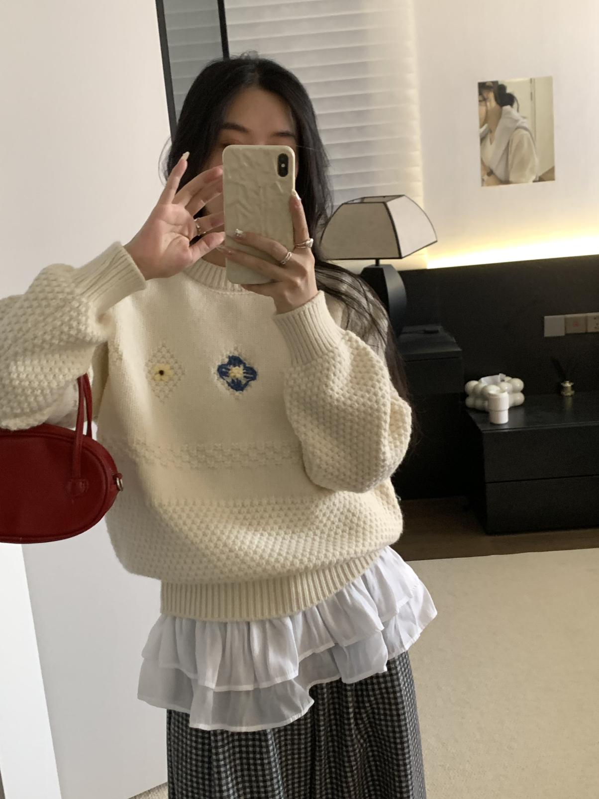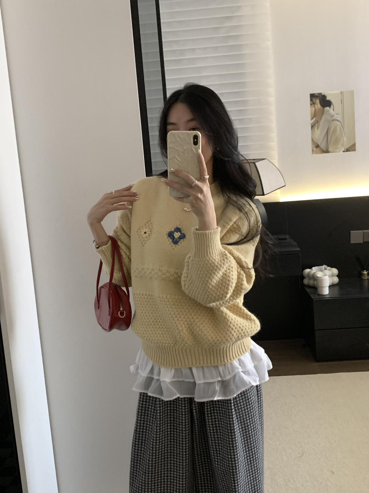 【C8231】韓系鉤花菠蘿紋寬鬆套頭保暖毛衣