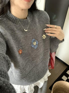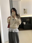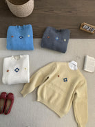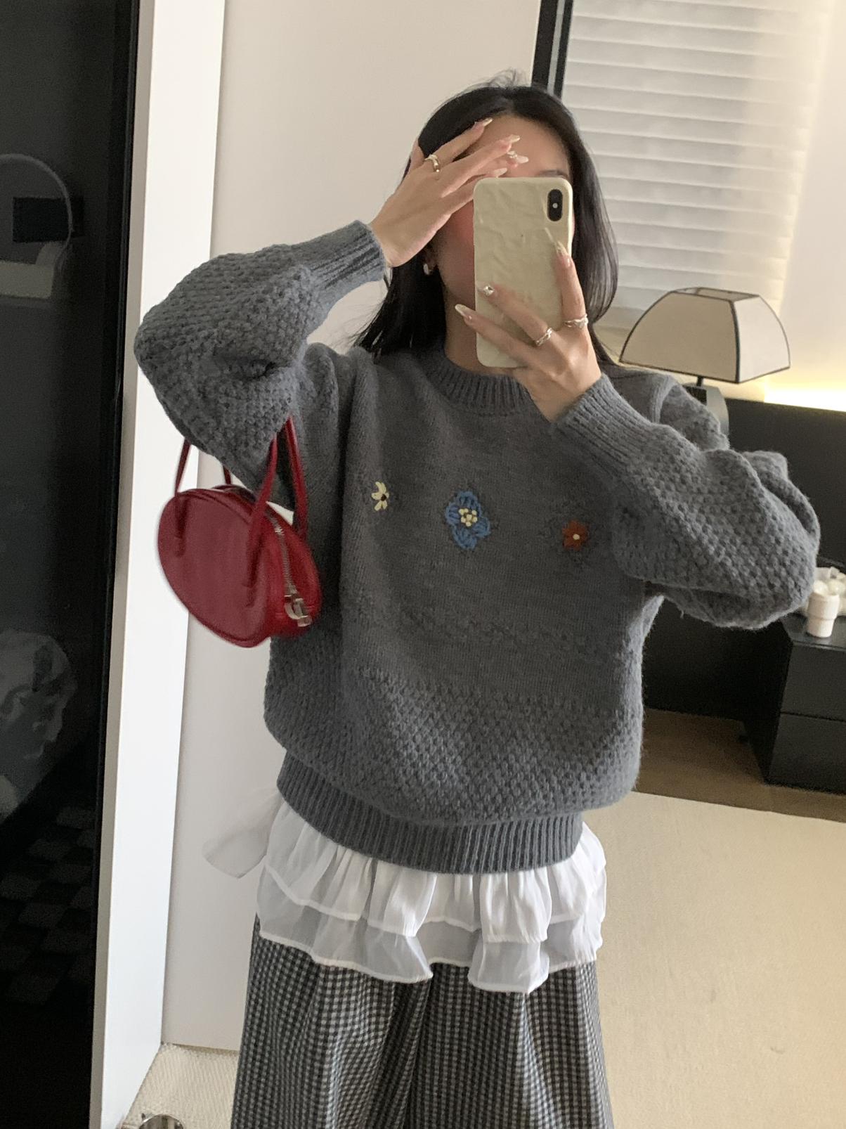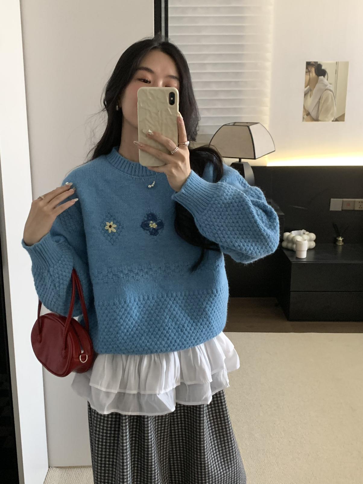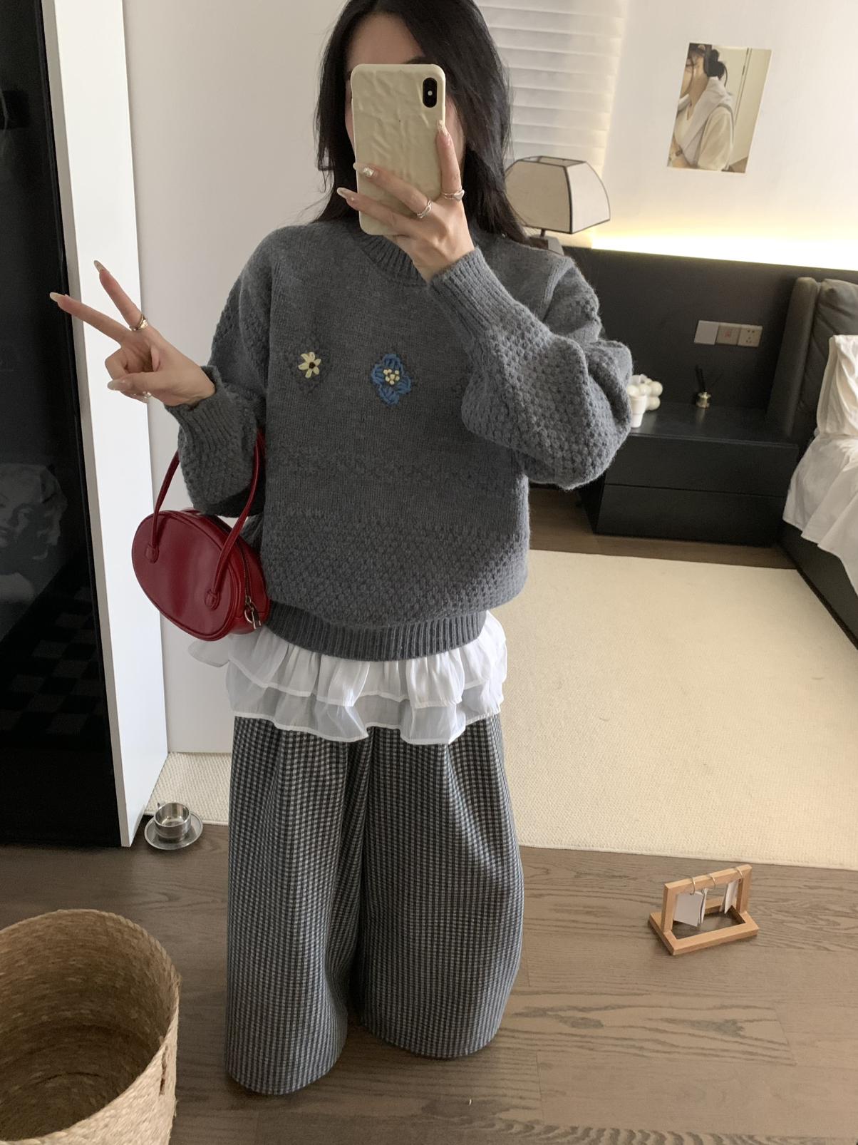【C8231】韓系鉤花菠蘿紋寬鬆套頭保暖毛衣
