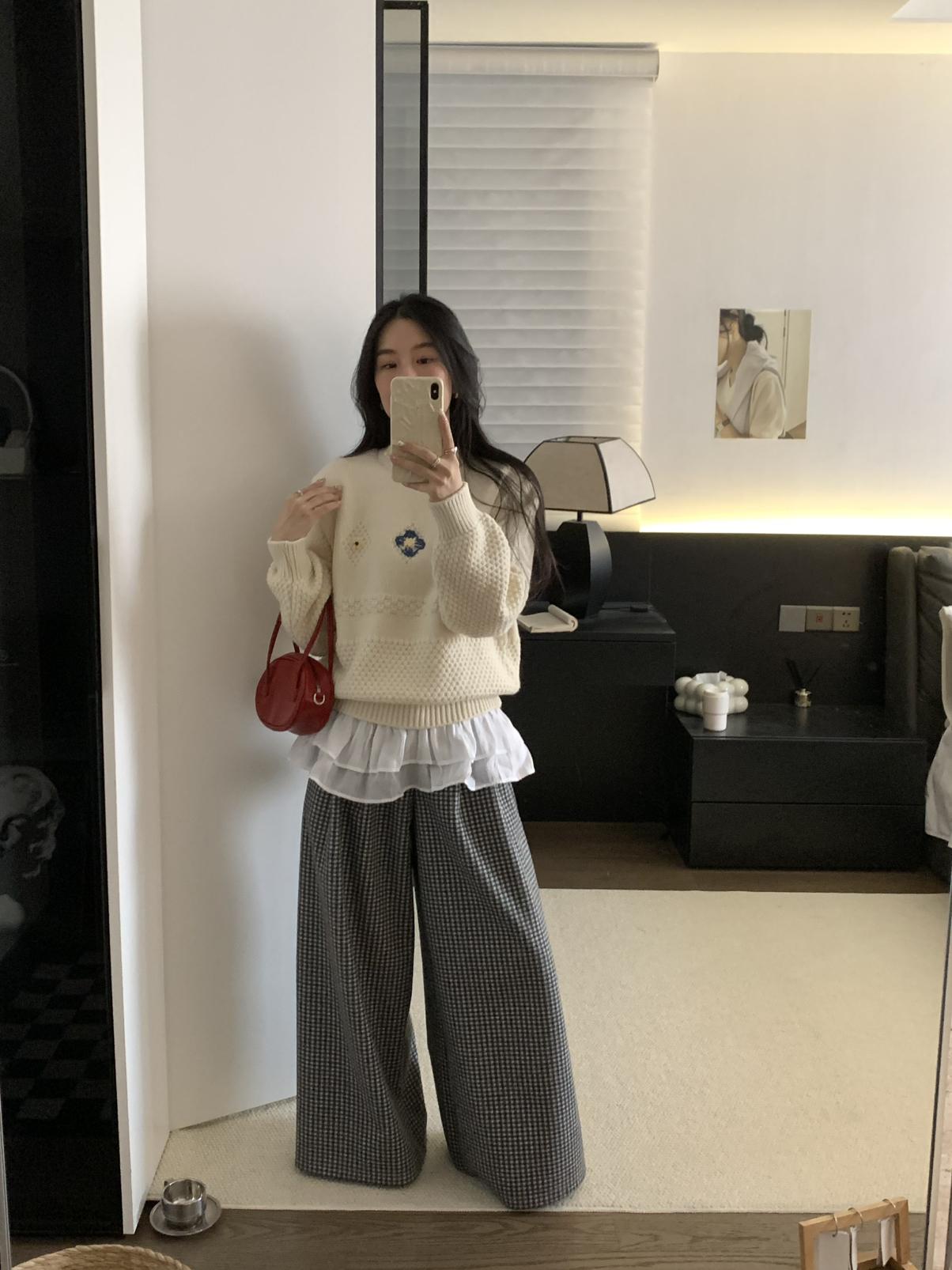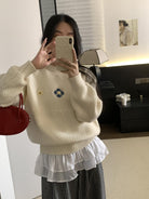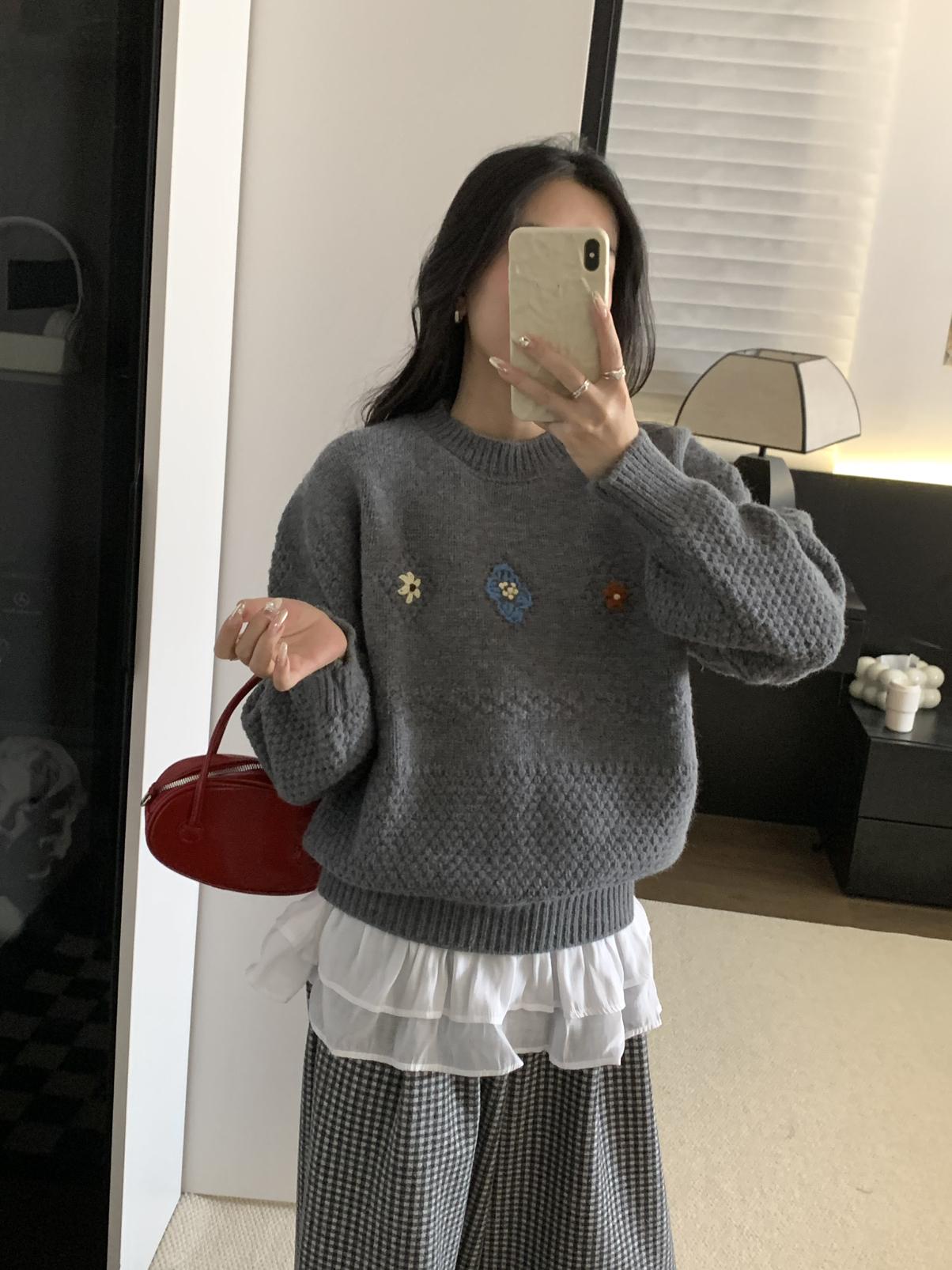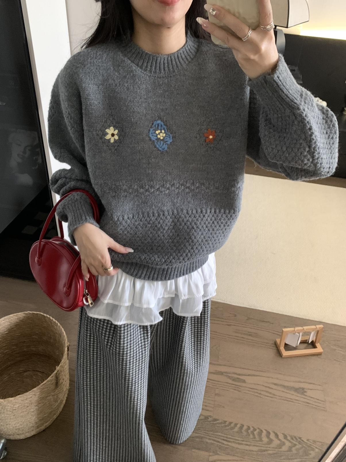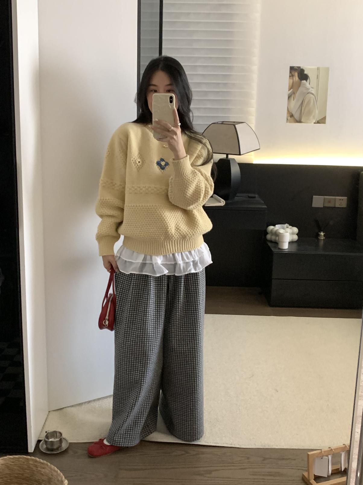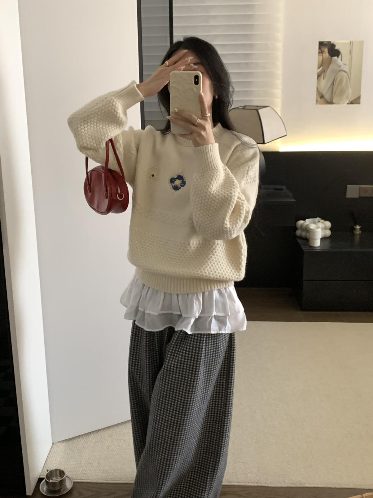 3. 【C8231】韓系鉤花菠蘿紋寬鬆套頭保暖毛衣
