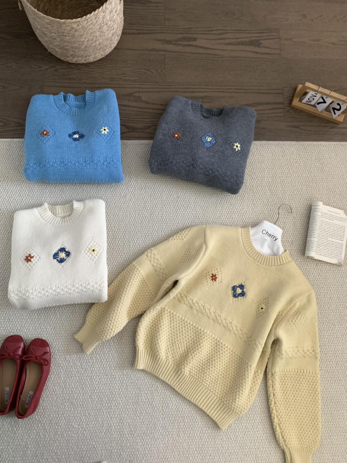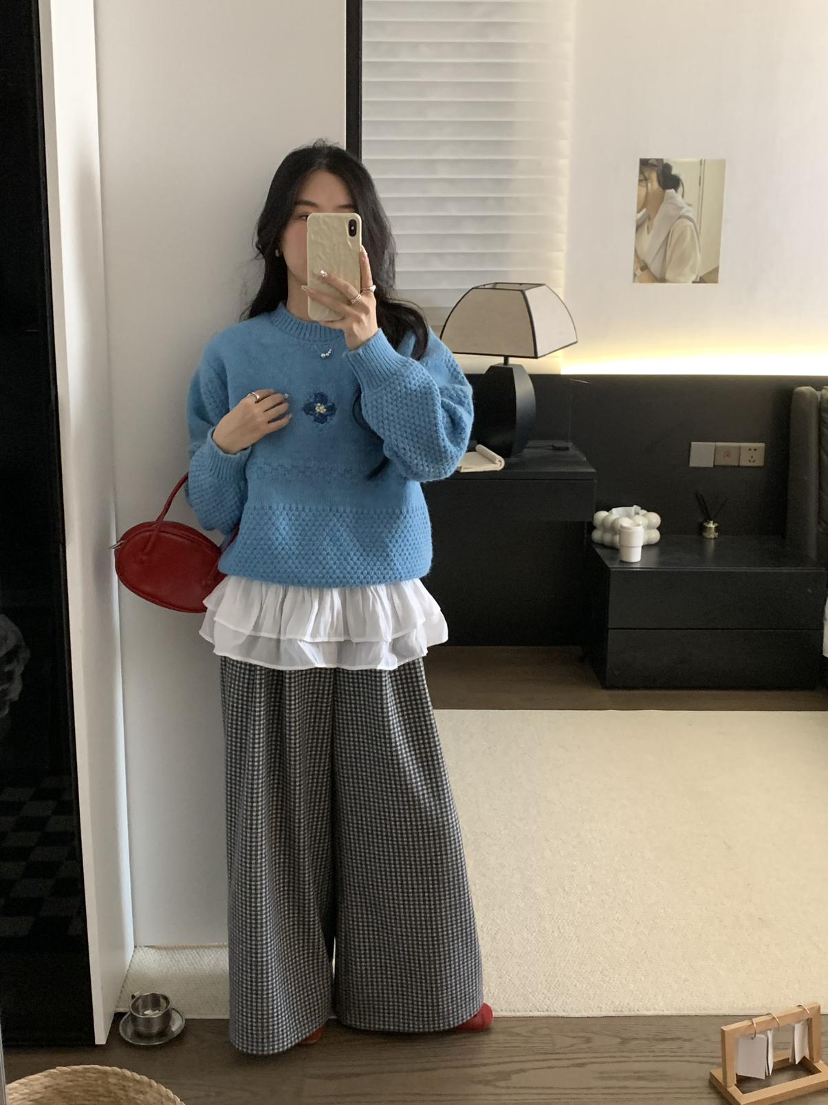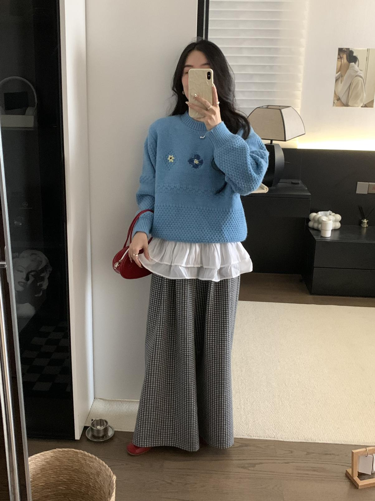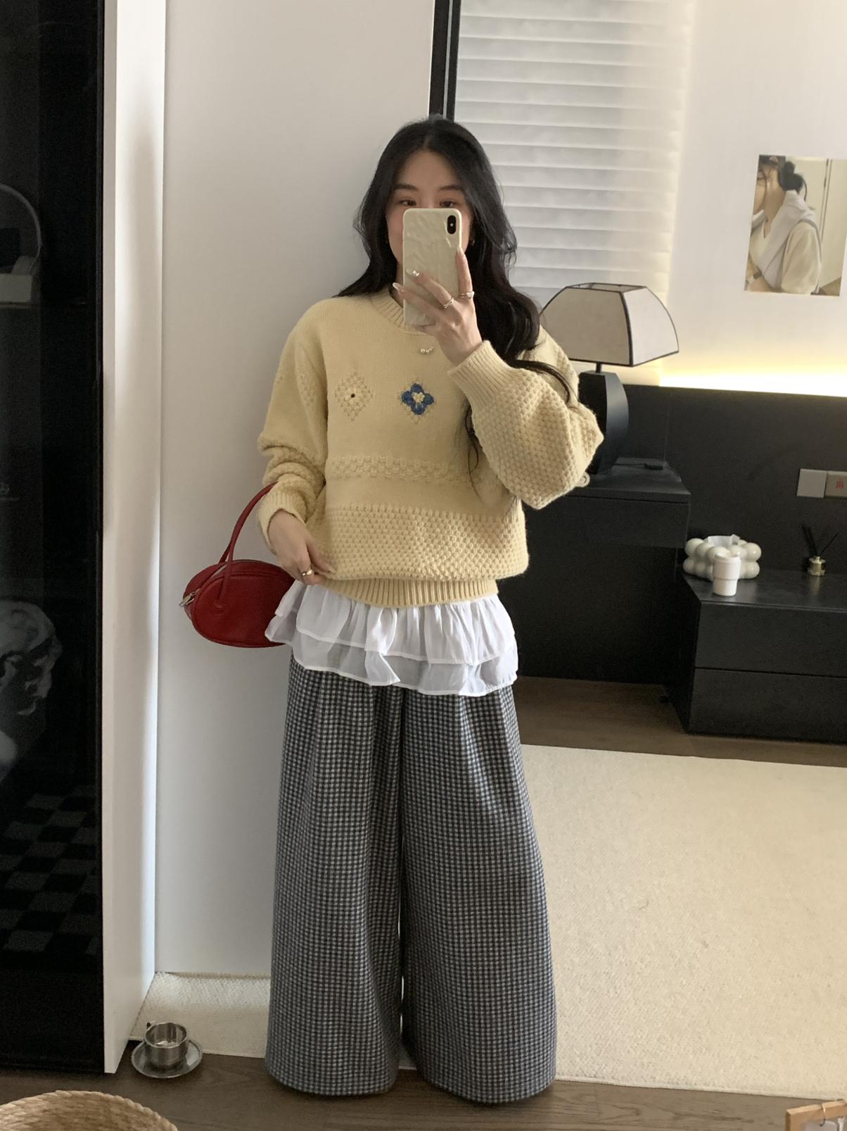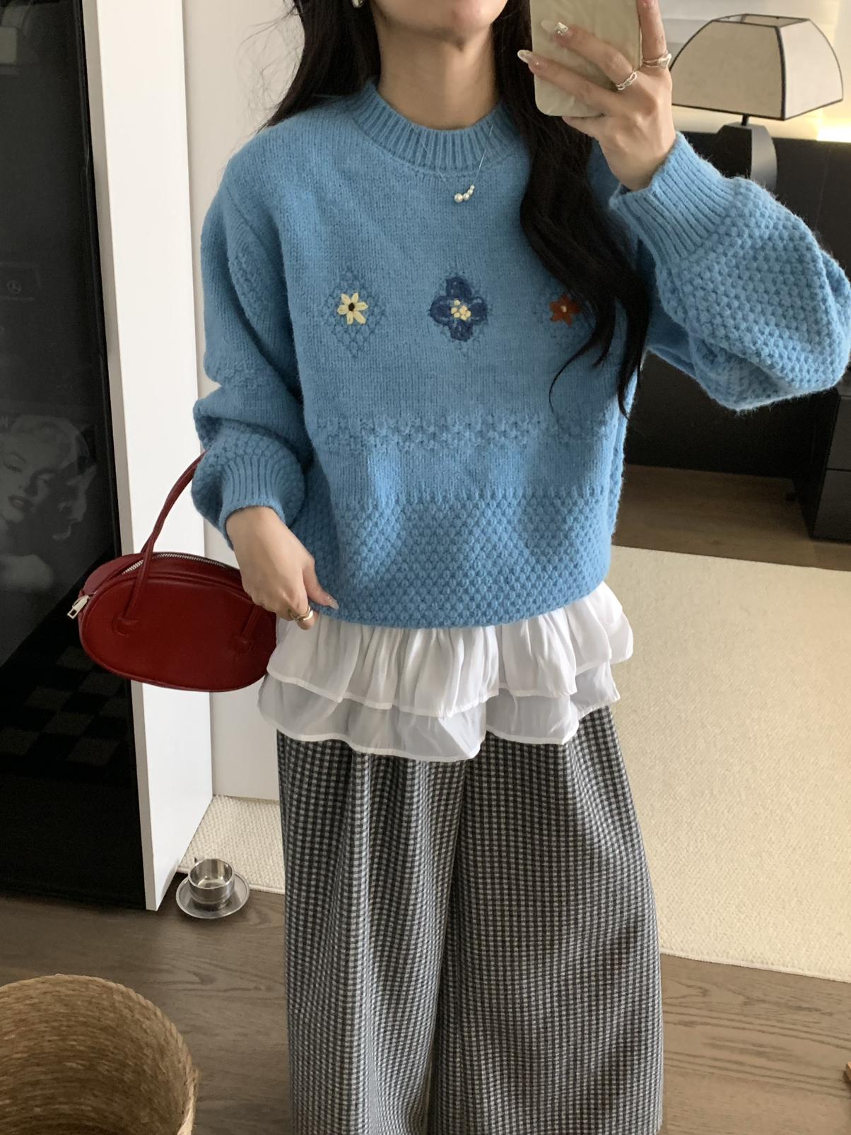 3. 【C8231】韓系鉤花菠蘿紋寬鬆套頭保暖毛衣