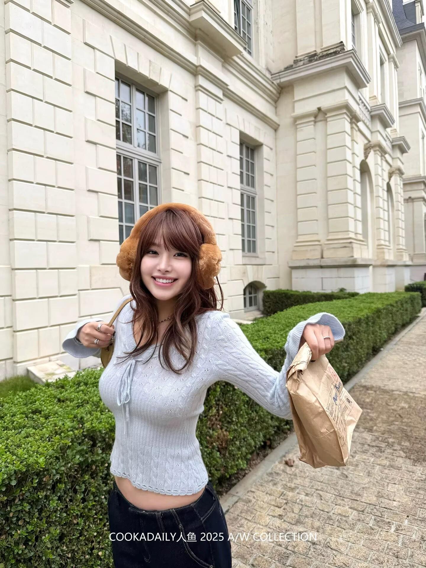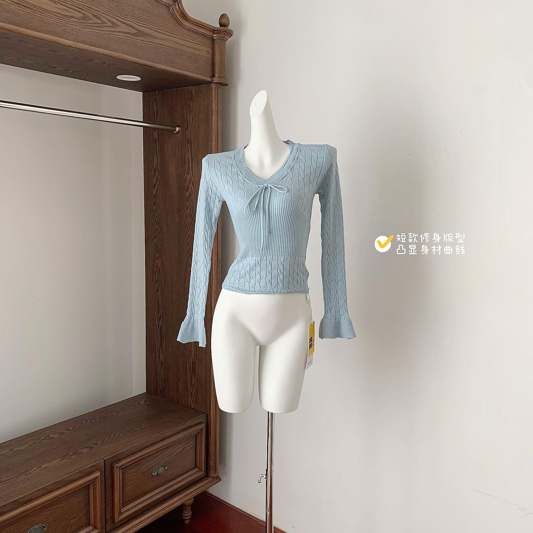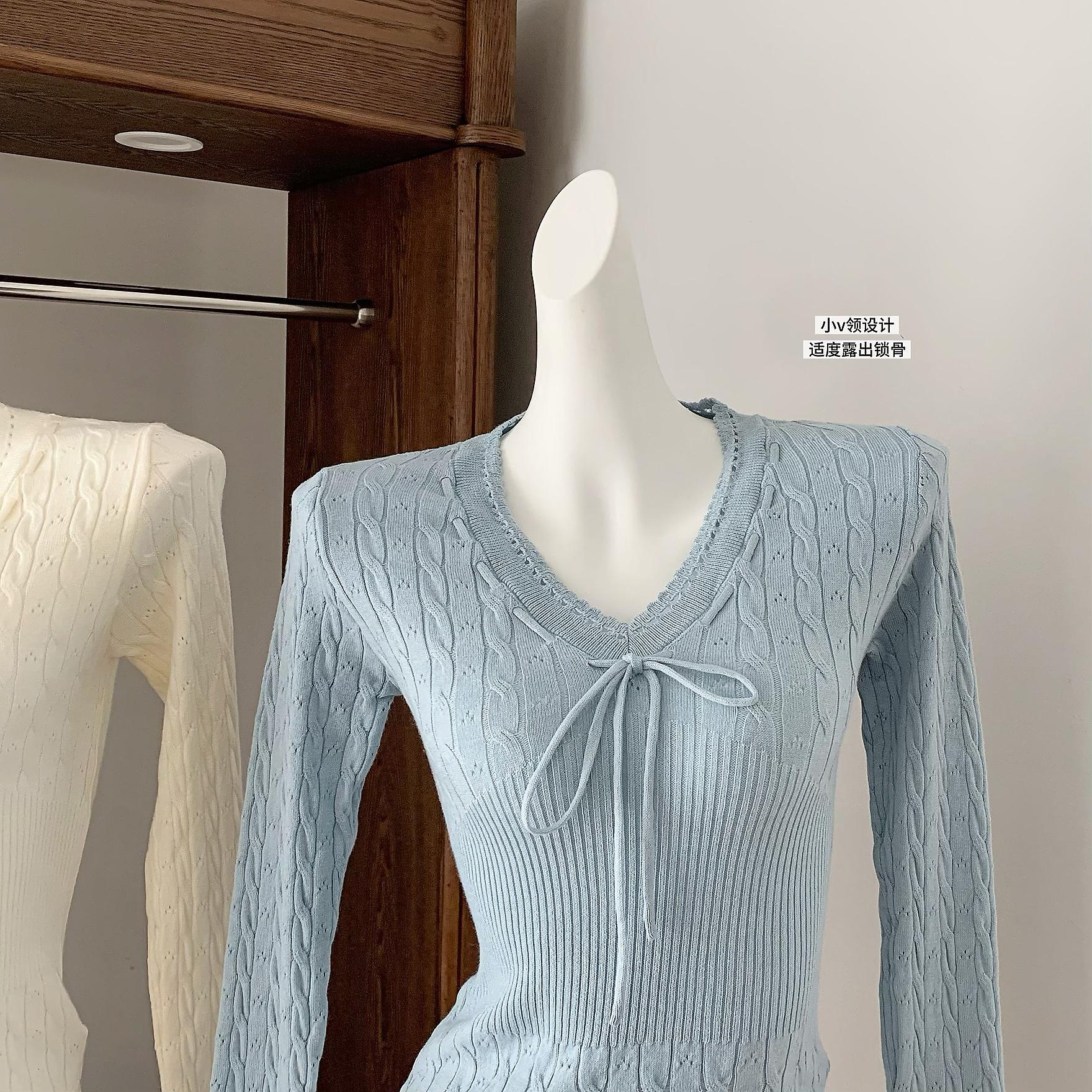 3. 【C8233】韓系羊毛鏤空肌理綁帶內搭打底針織衫