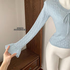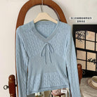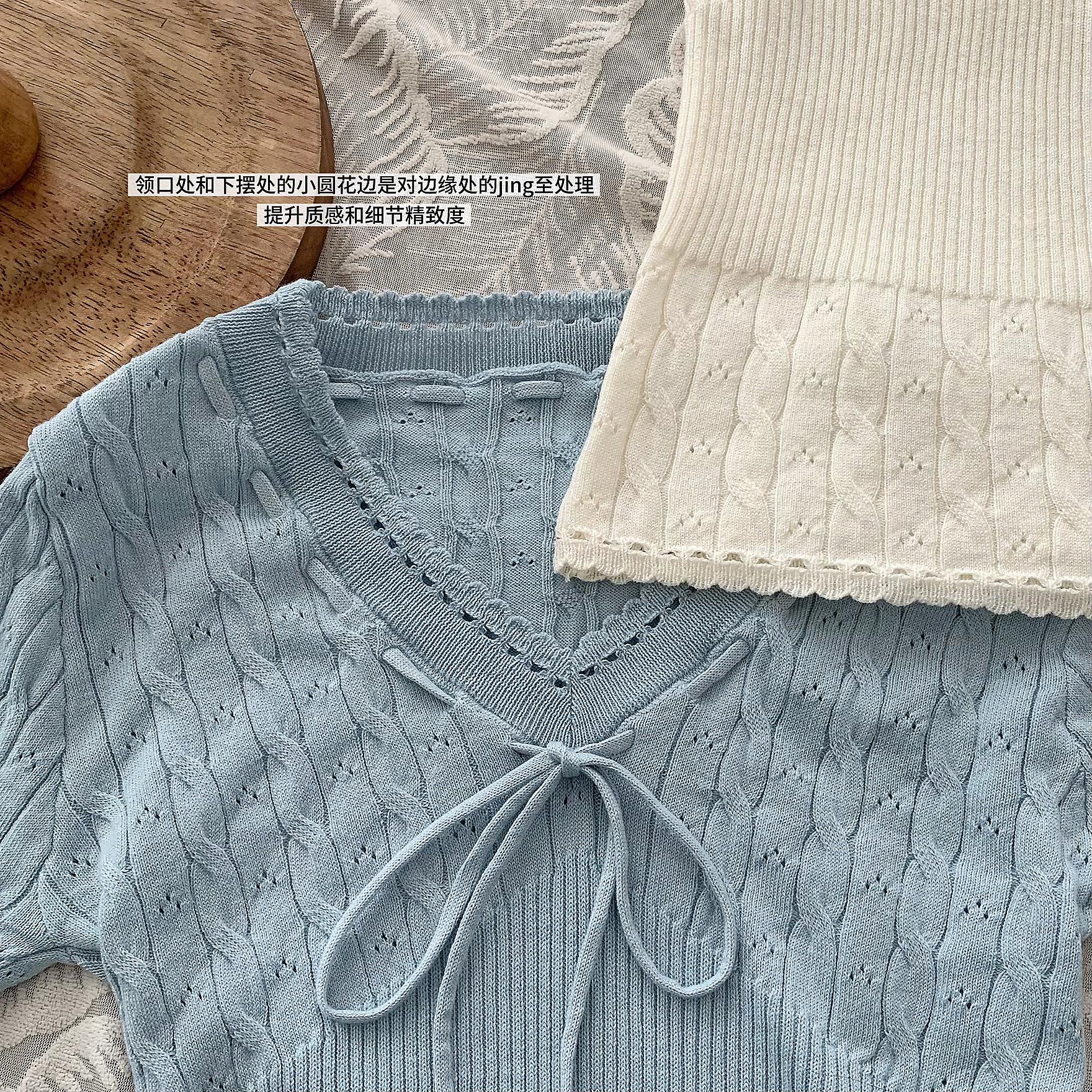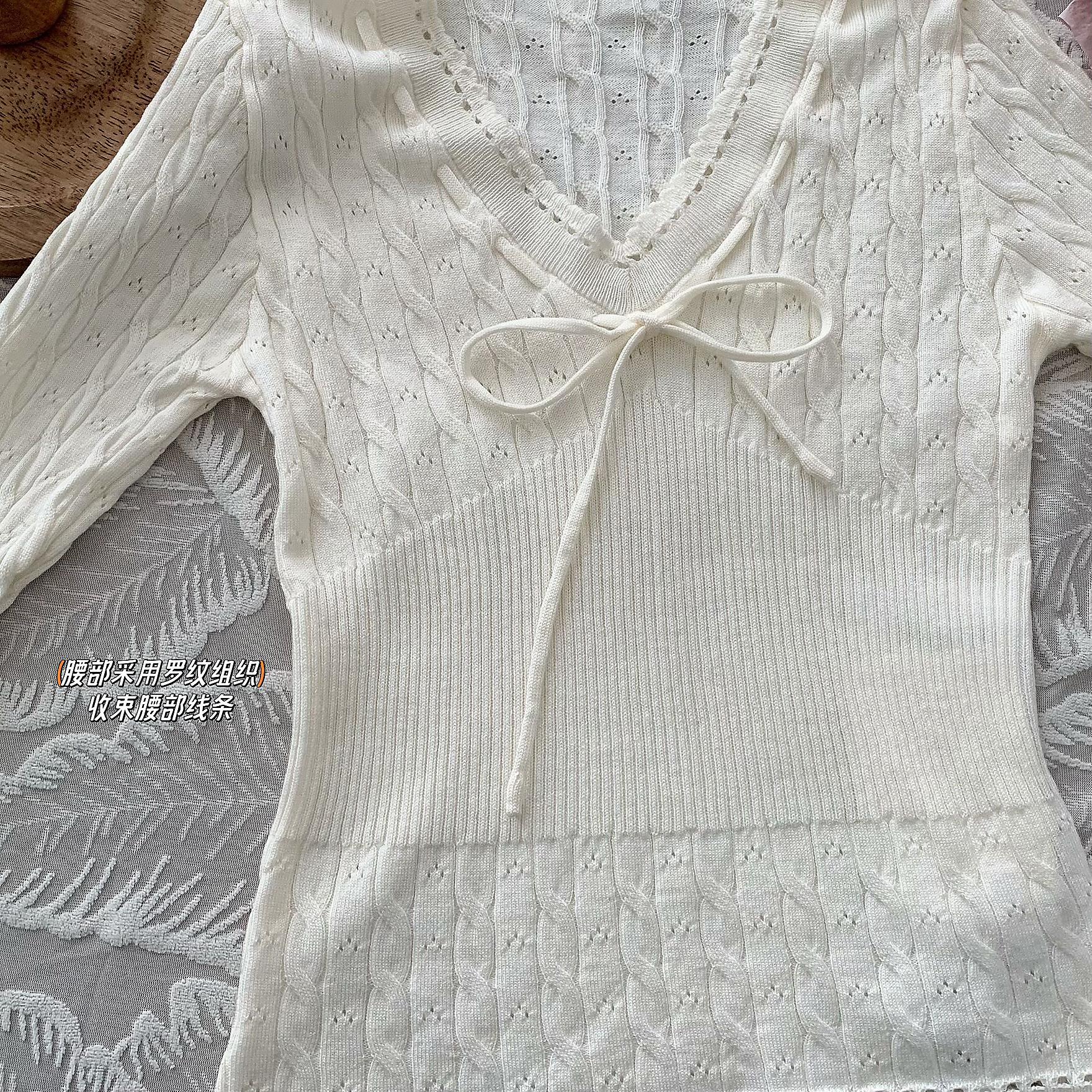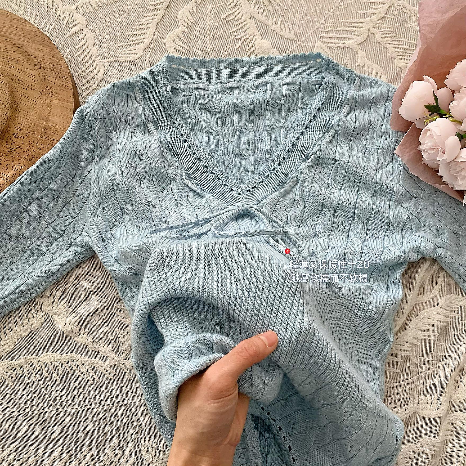 【C8233】韓系羊毛鏤空肌理綁帶內搭打底針織衫