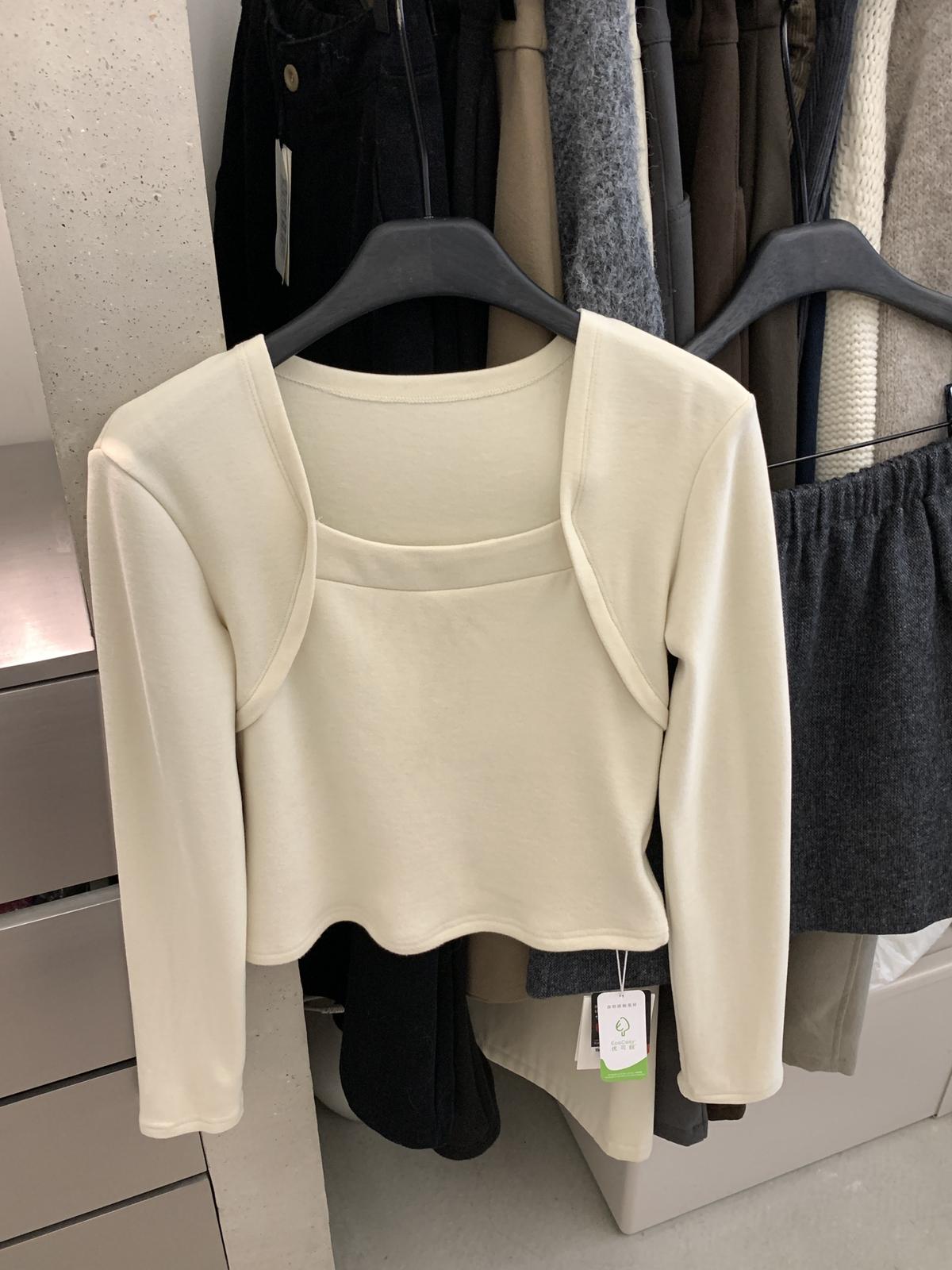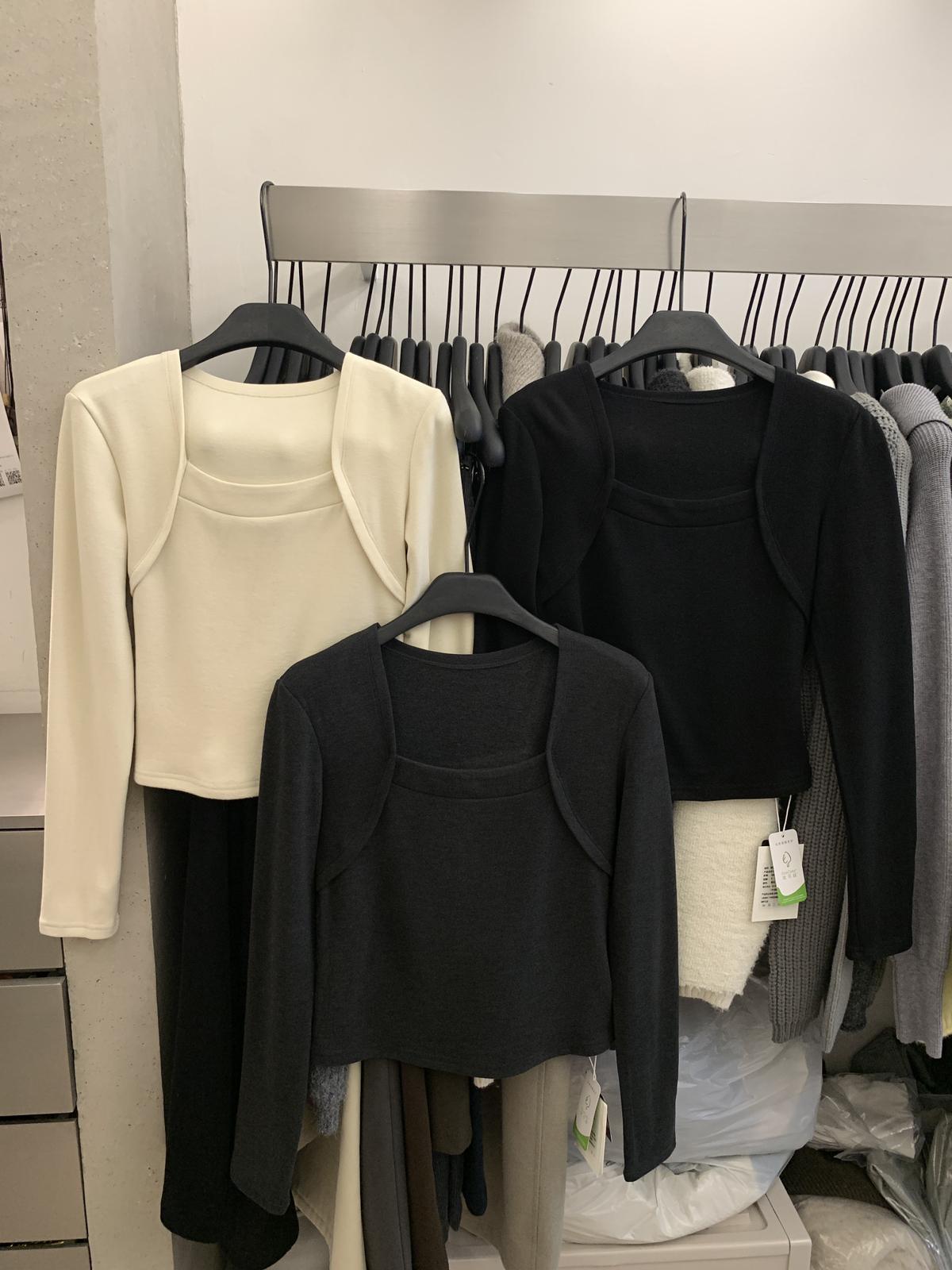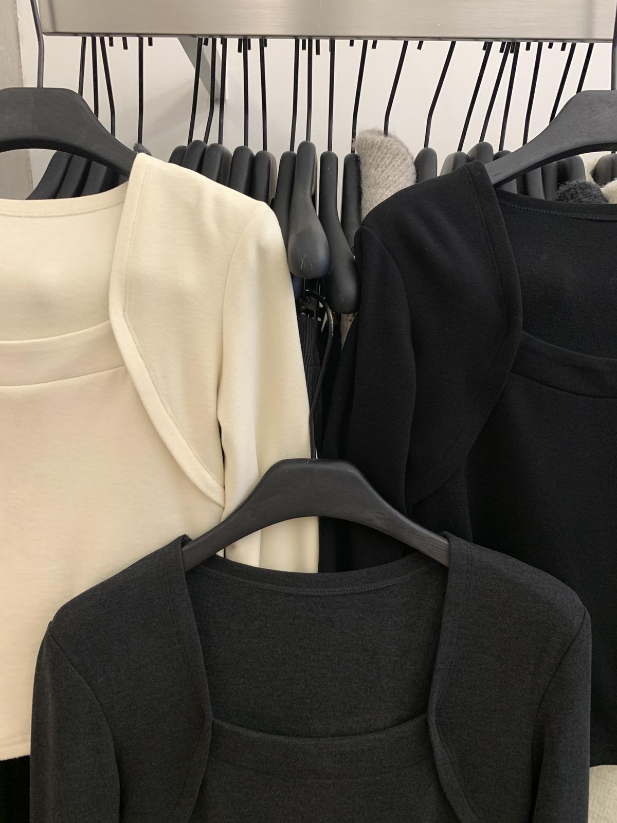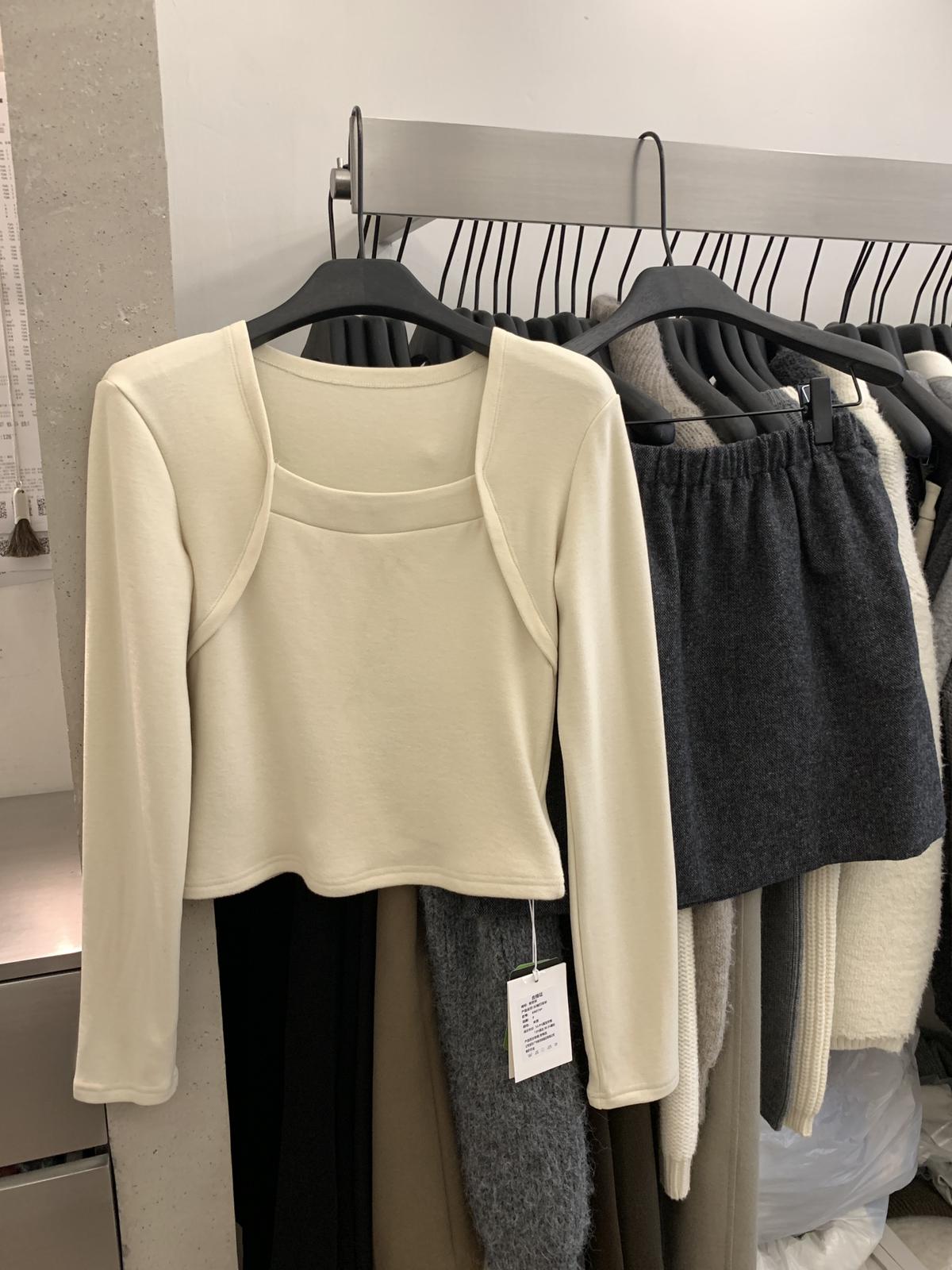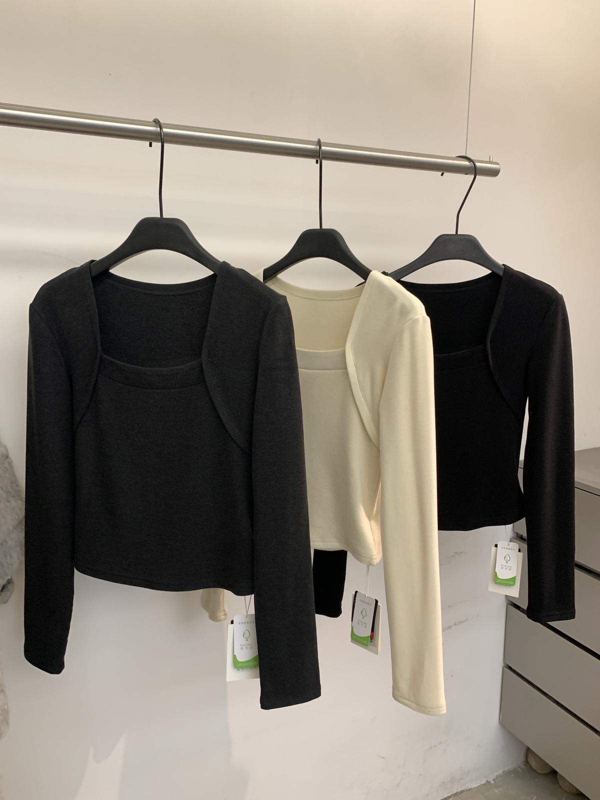 3. 【C8234】蓄熱保暖技術✔小女人方領露鎖骨顯瘦百搭短款加絨加厚打底衫