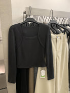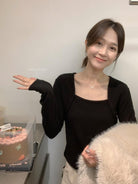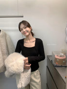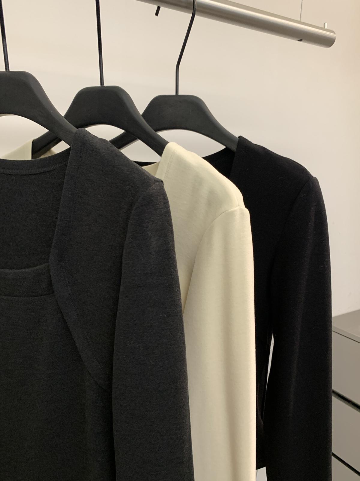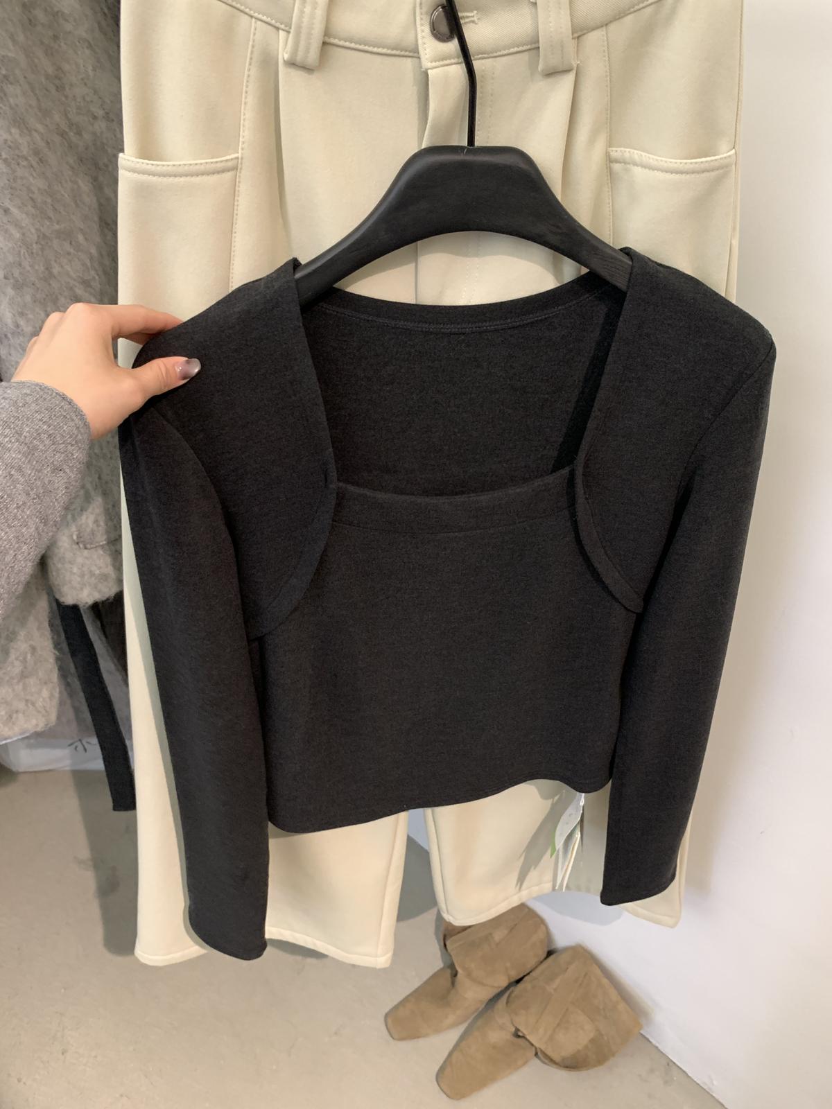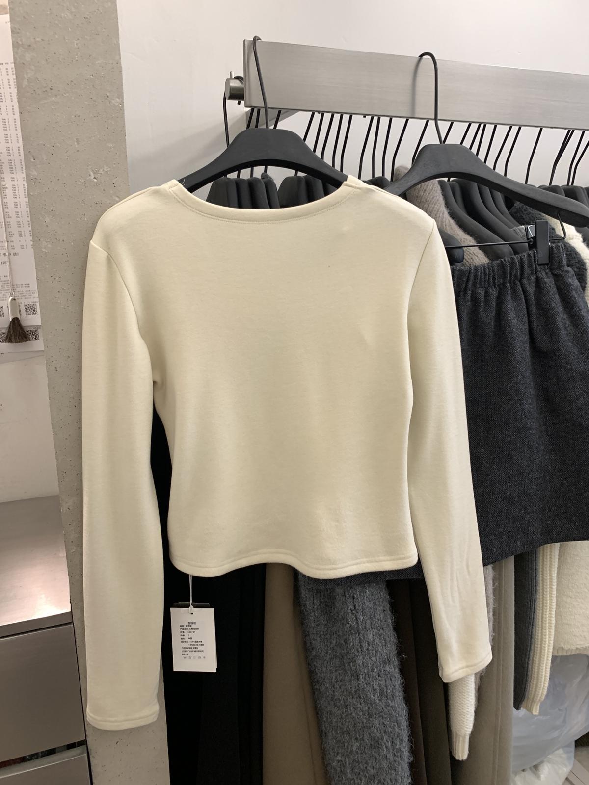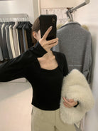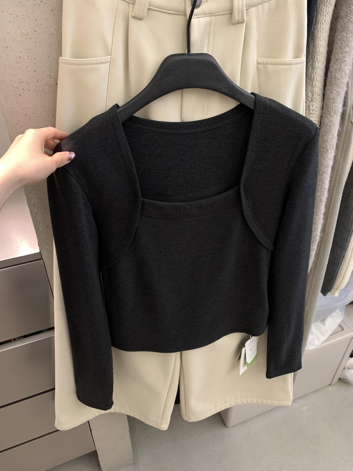 3. 【C8234】蓄熱保暖技術✔小女人方領露鎖骨顯瘦百搭短款加絨加厚打底衫