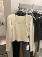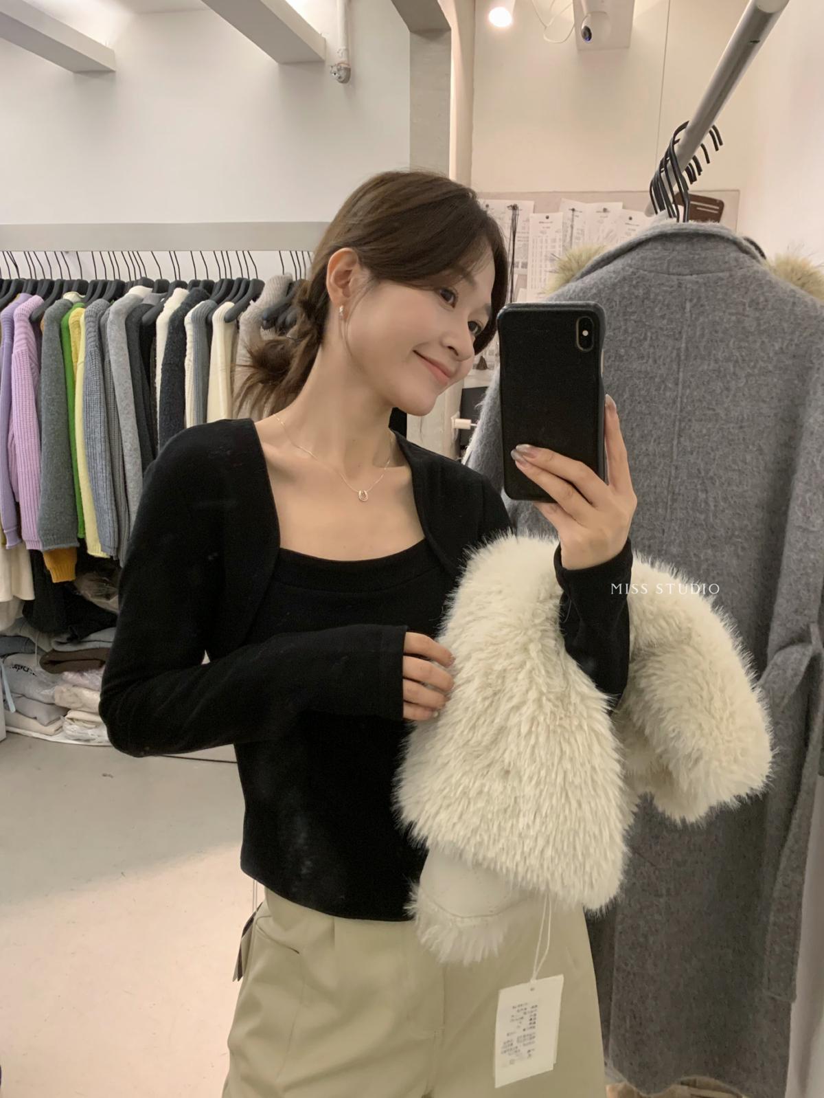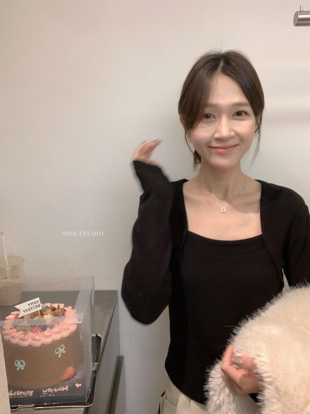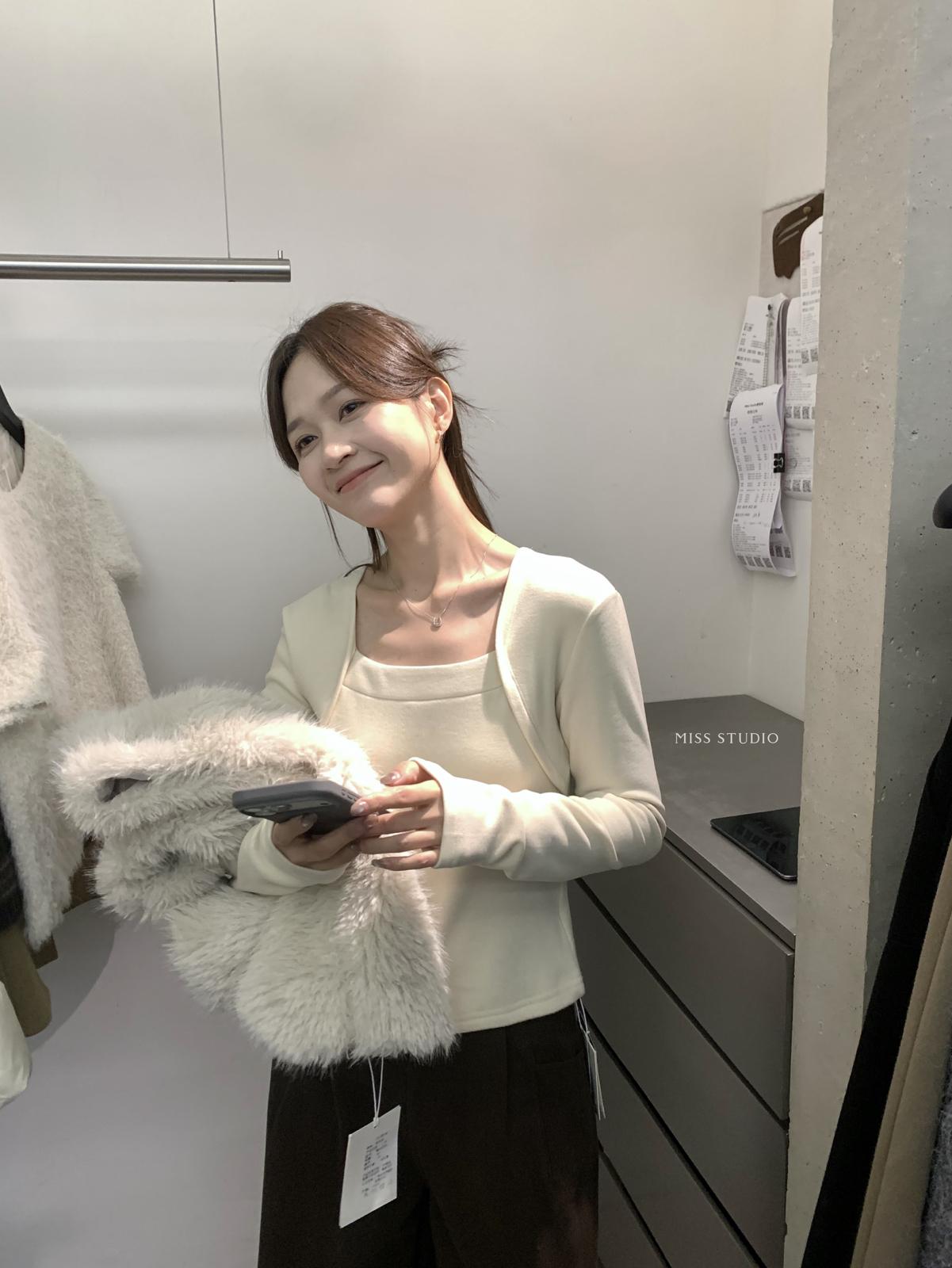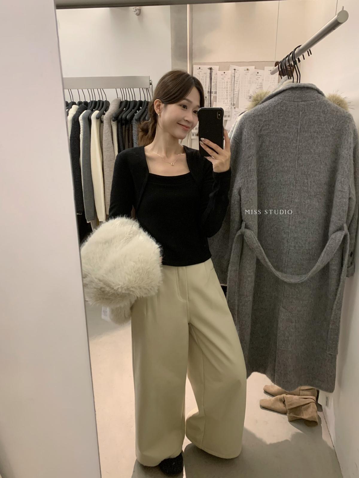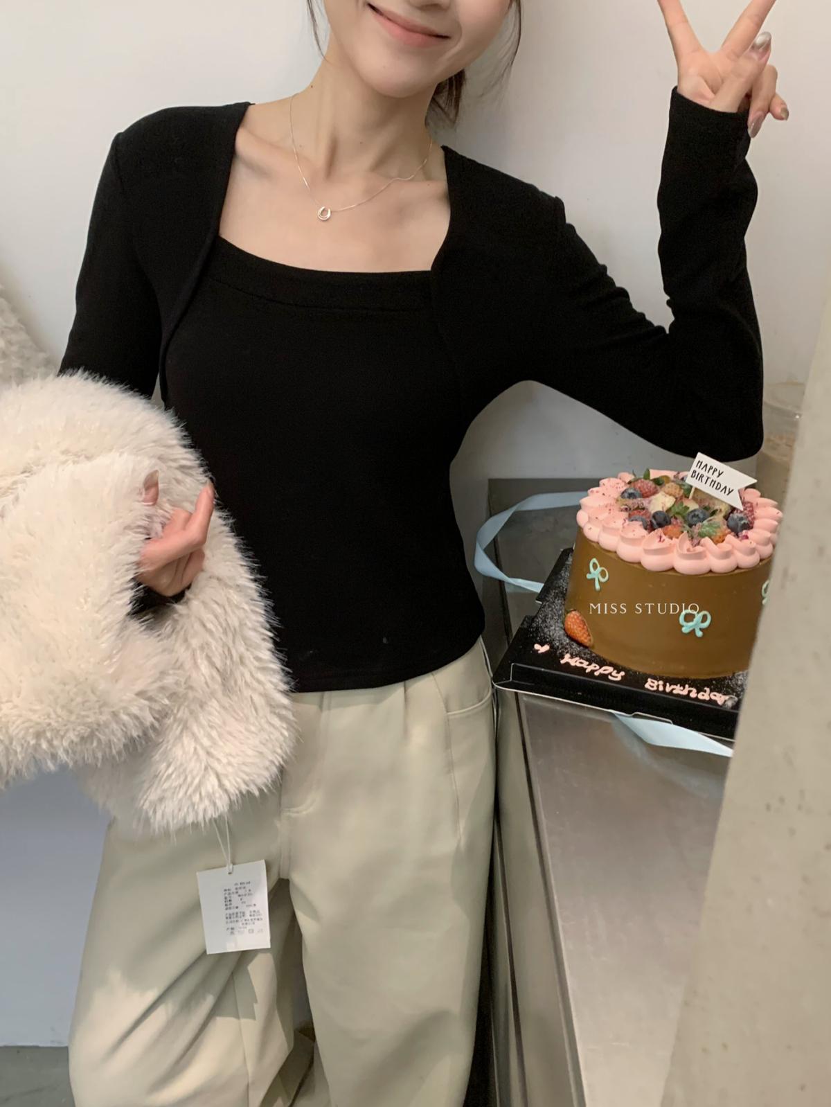 3. 【C8234】蓄熱保暖技術✔小女人方領露鎖骨顯瘦百搭短款加絨加厚打底衫
