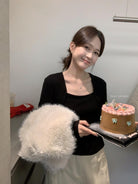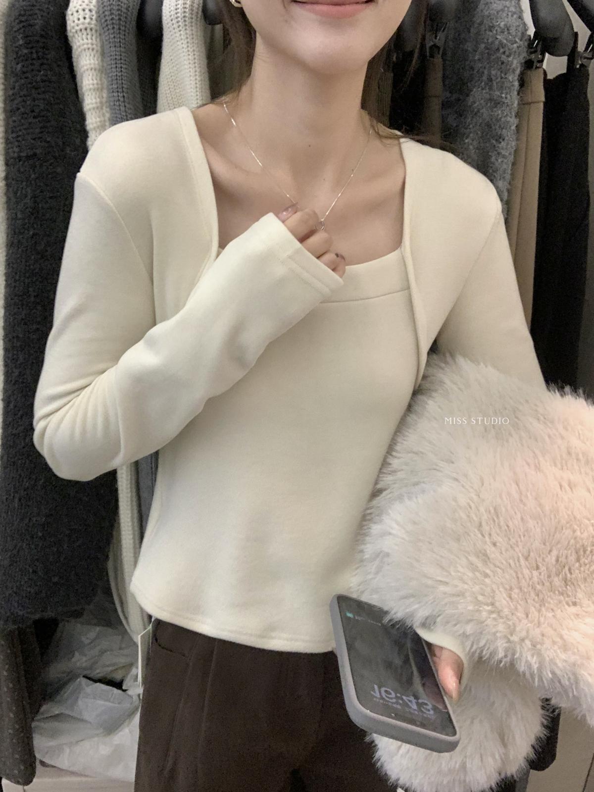 【C8234】蓄熱保暖技術✔小女人方領露鎖骨顯瘦百搭短款加絨加厚打底衫