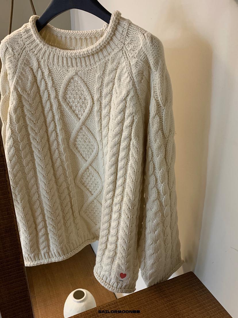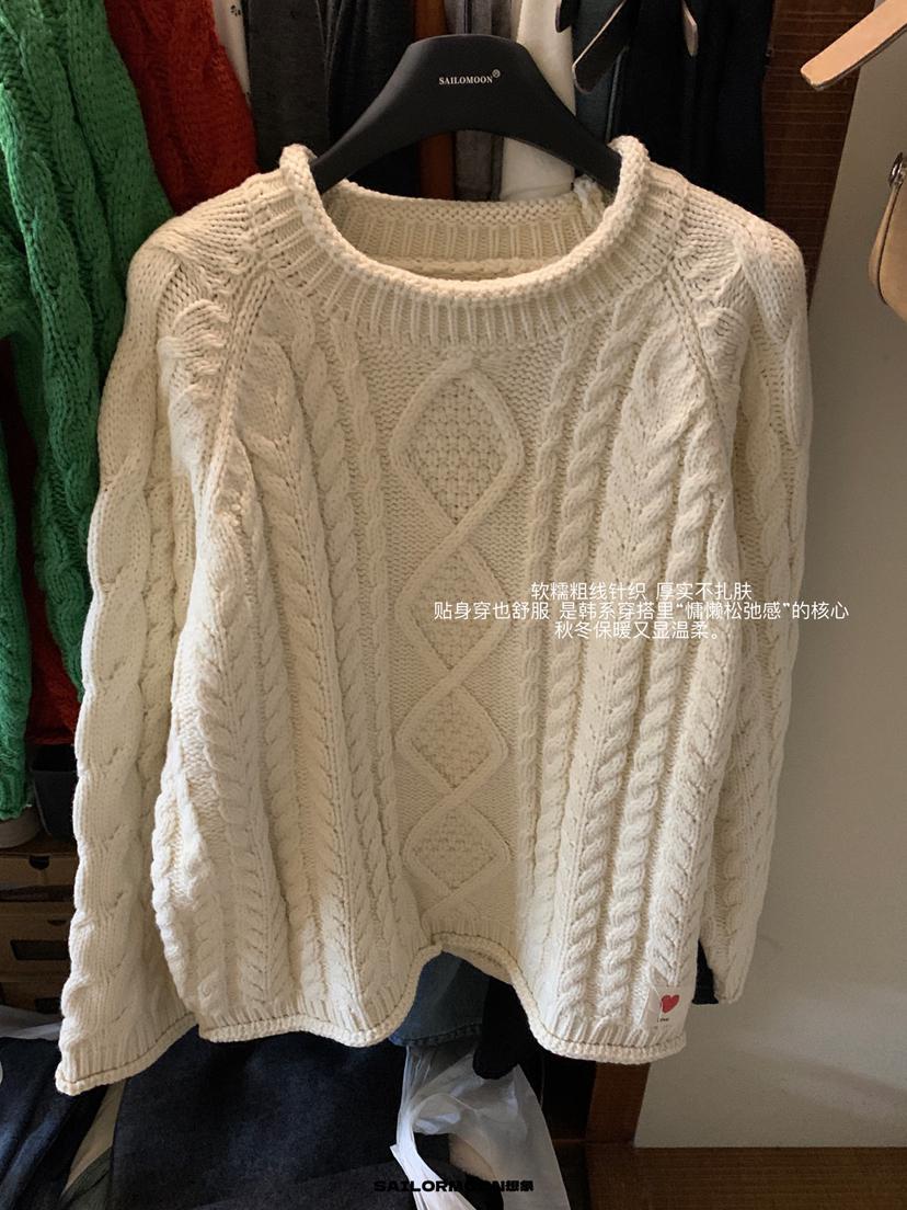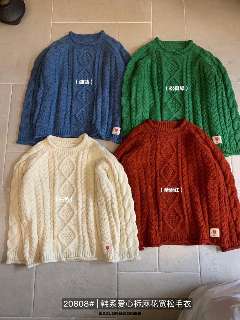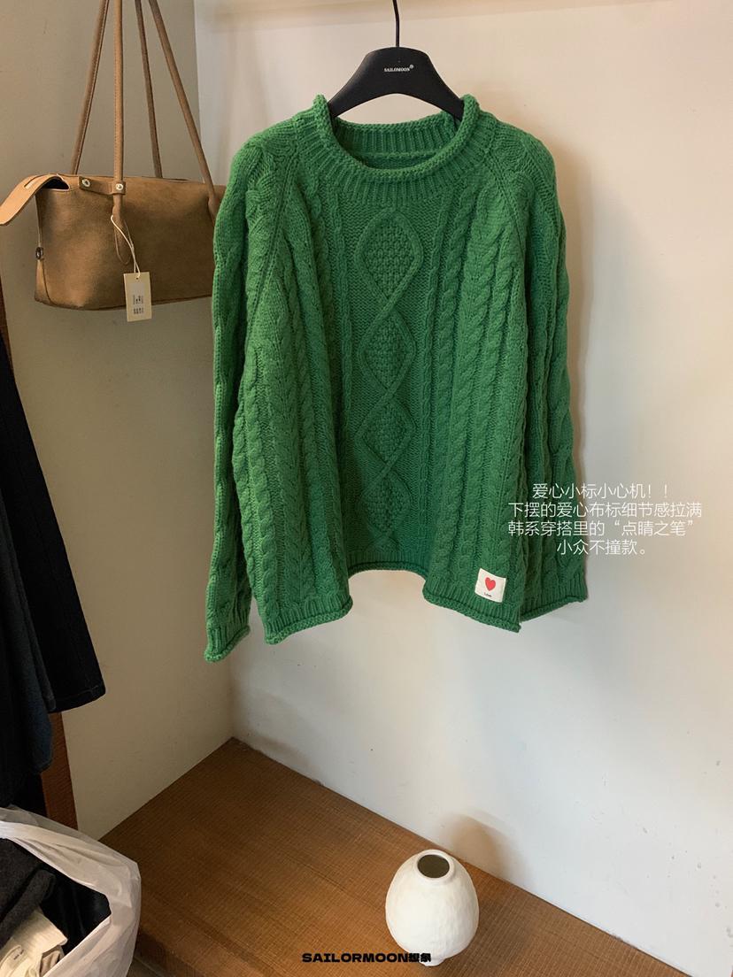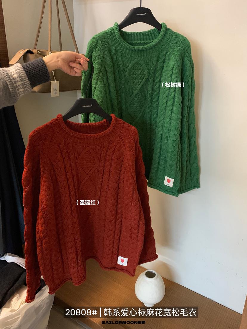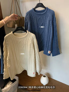 【C8237】韓系愛心標麻花寬鬆毛衣圓領套頭毛衣