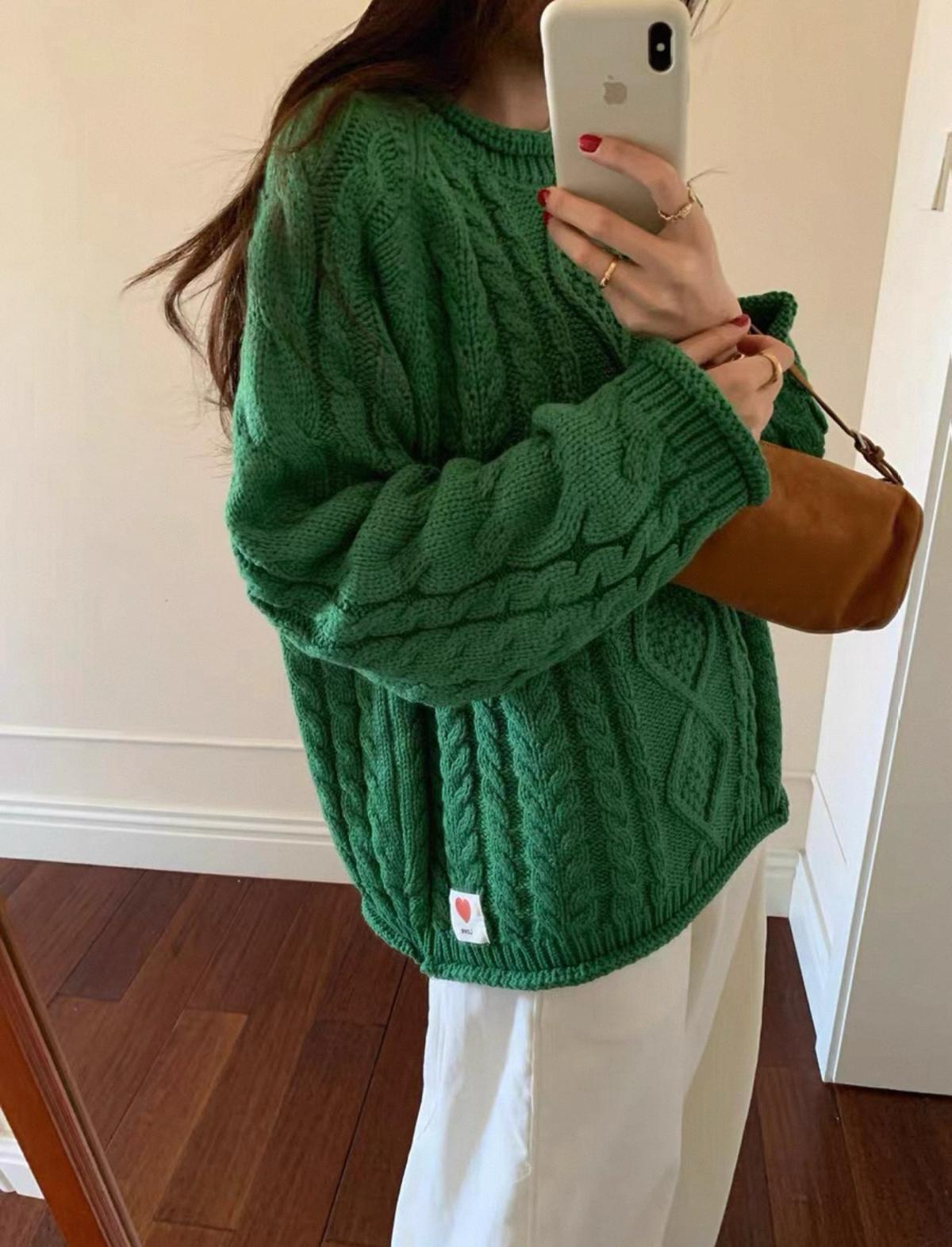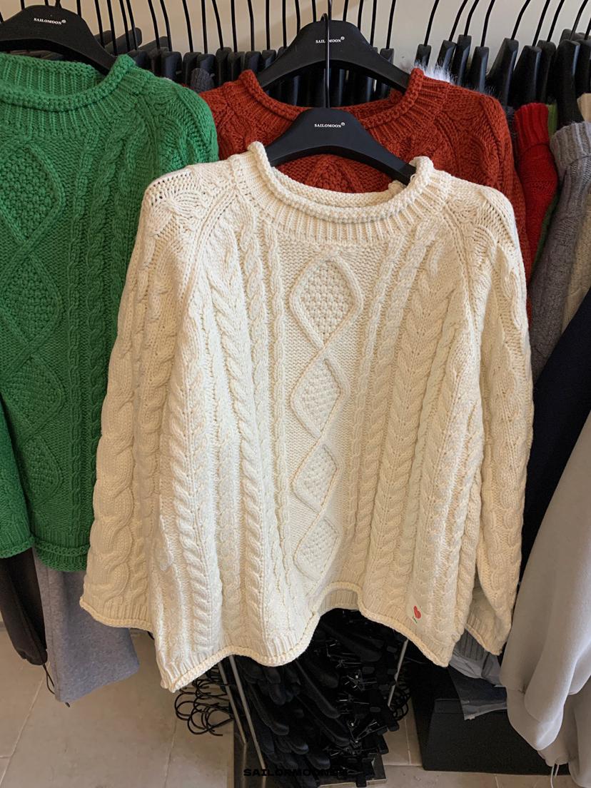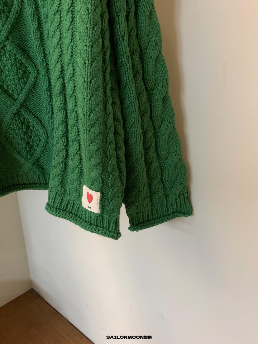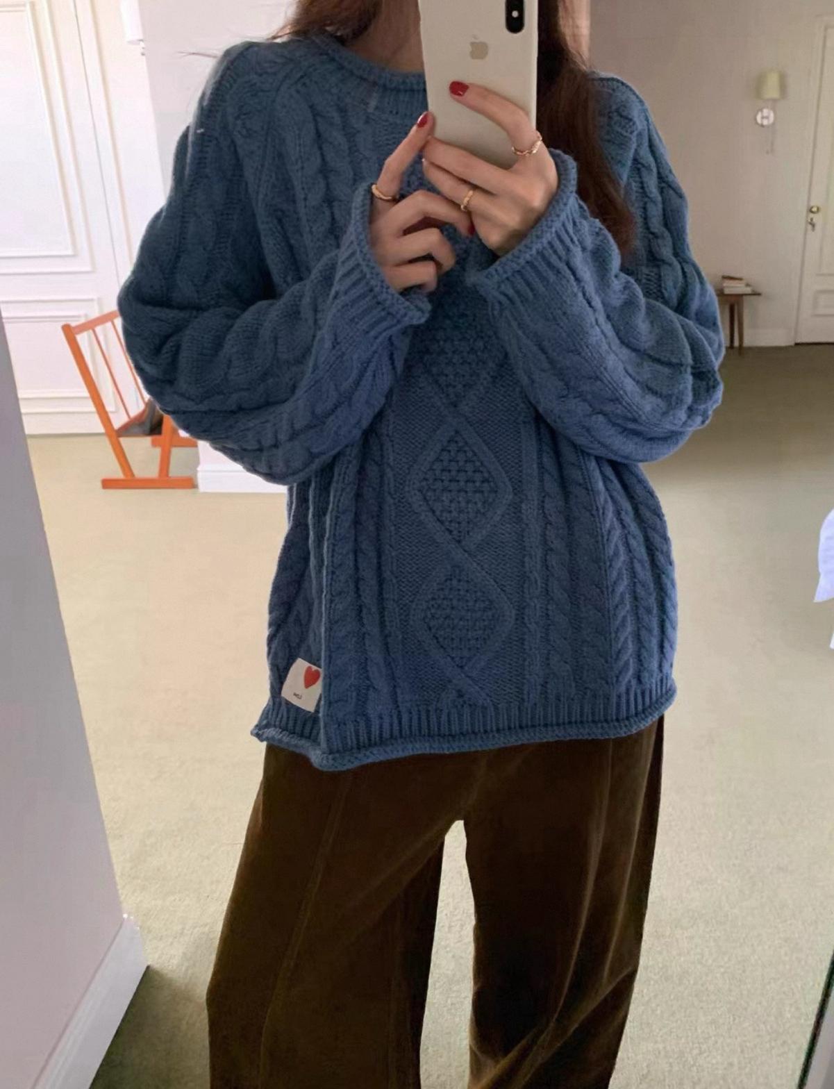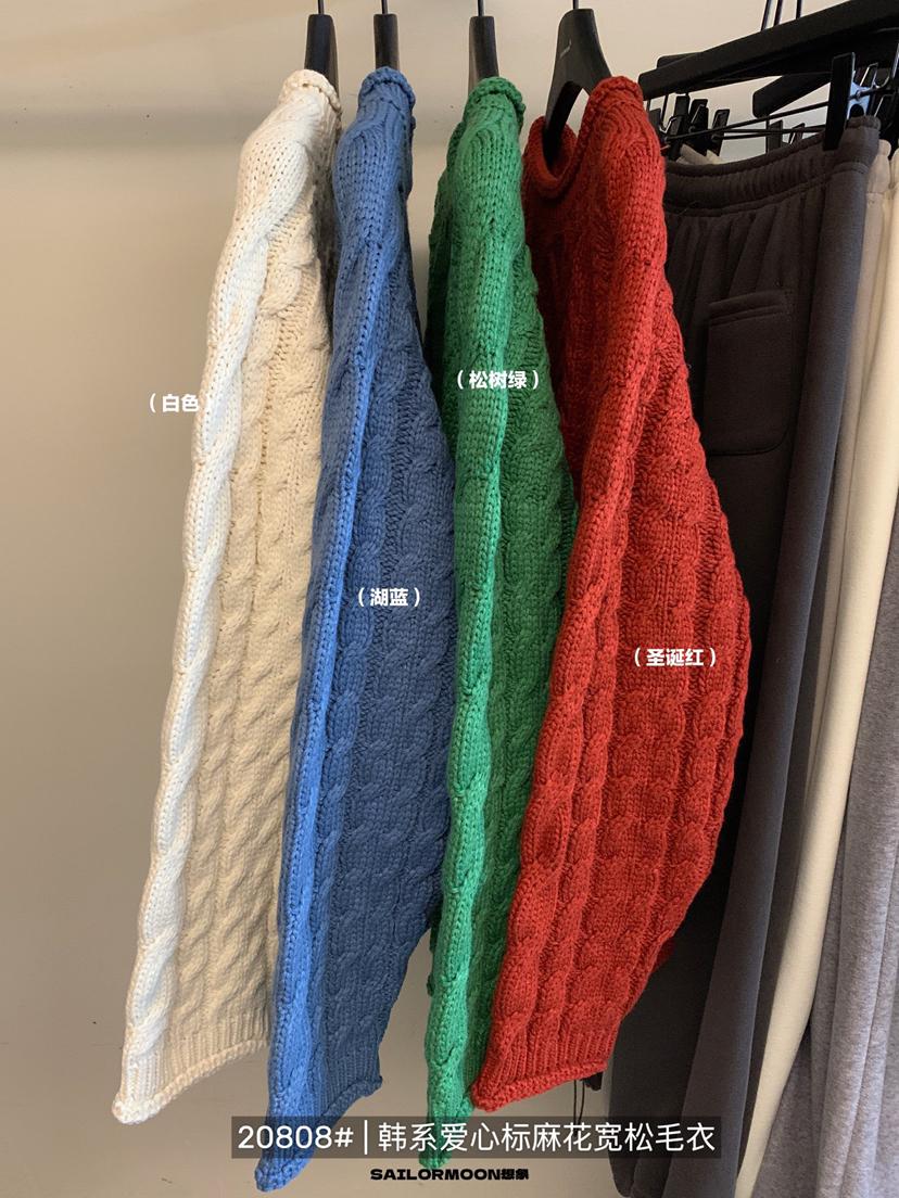 【C8237】韓系愛心標麻花寬鬆毛衣圓領套頭毛衣