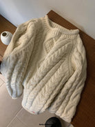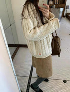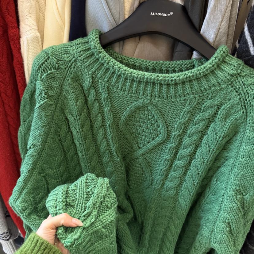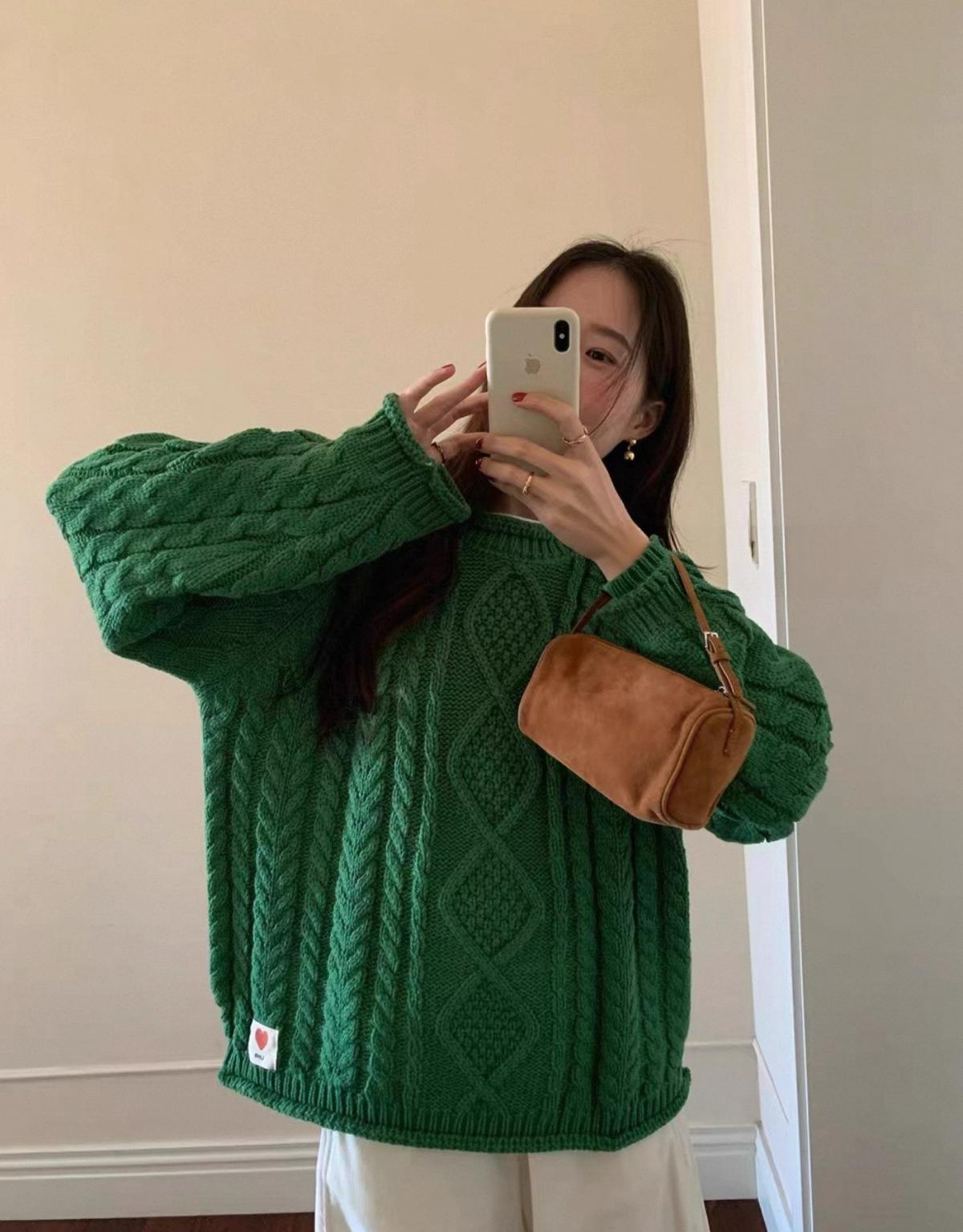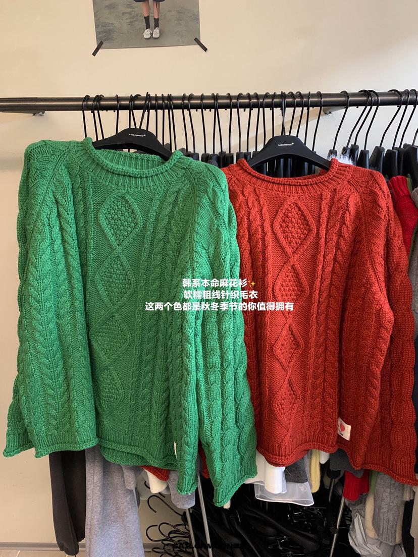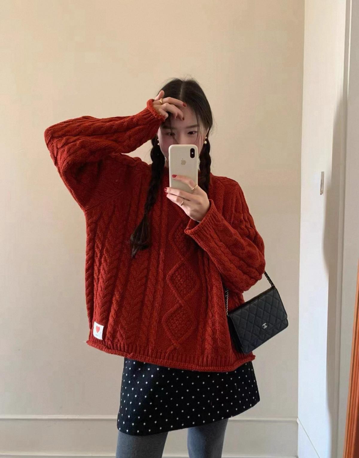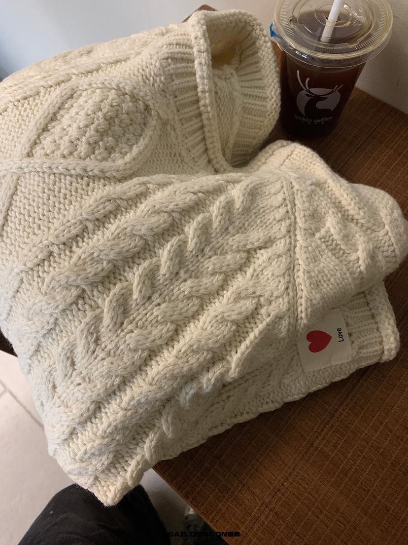 【C8237】韓系愛心標麻花寬鬆毛衣圓領套頭毛衣
