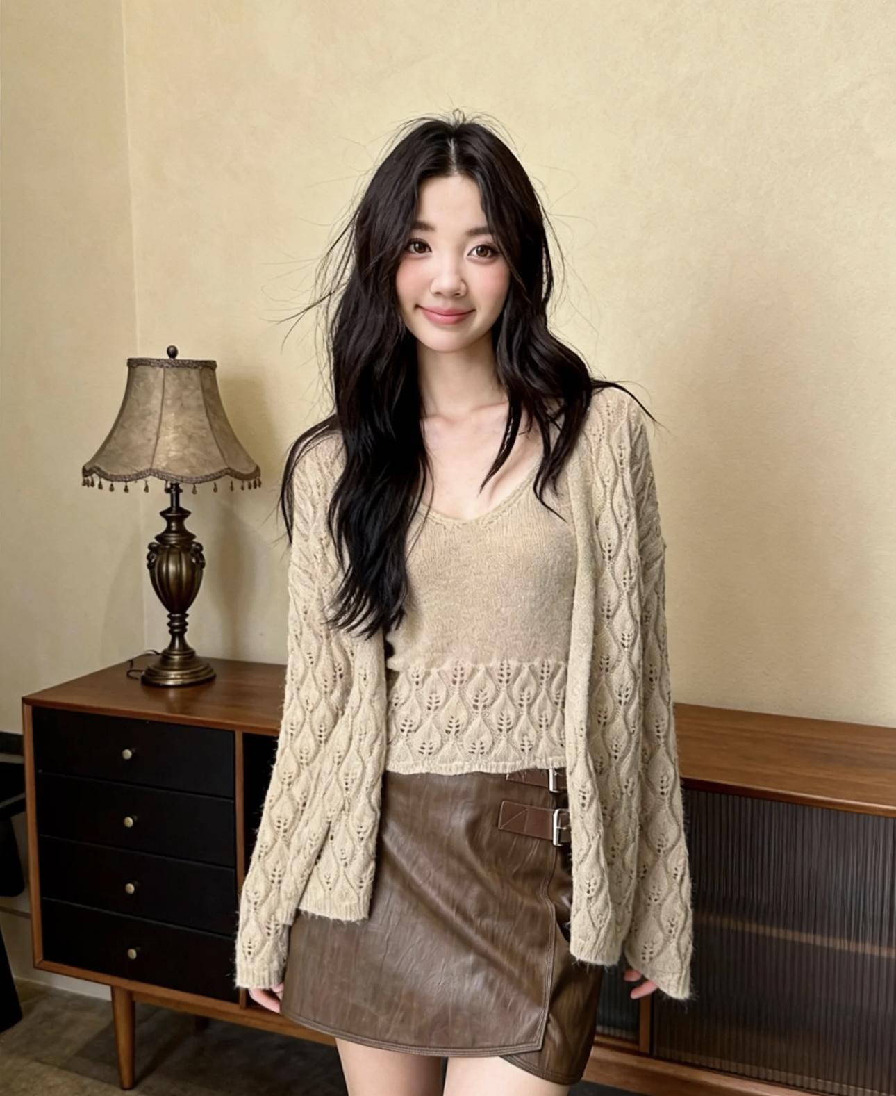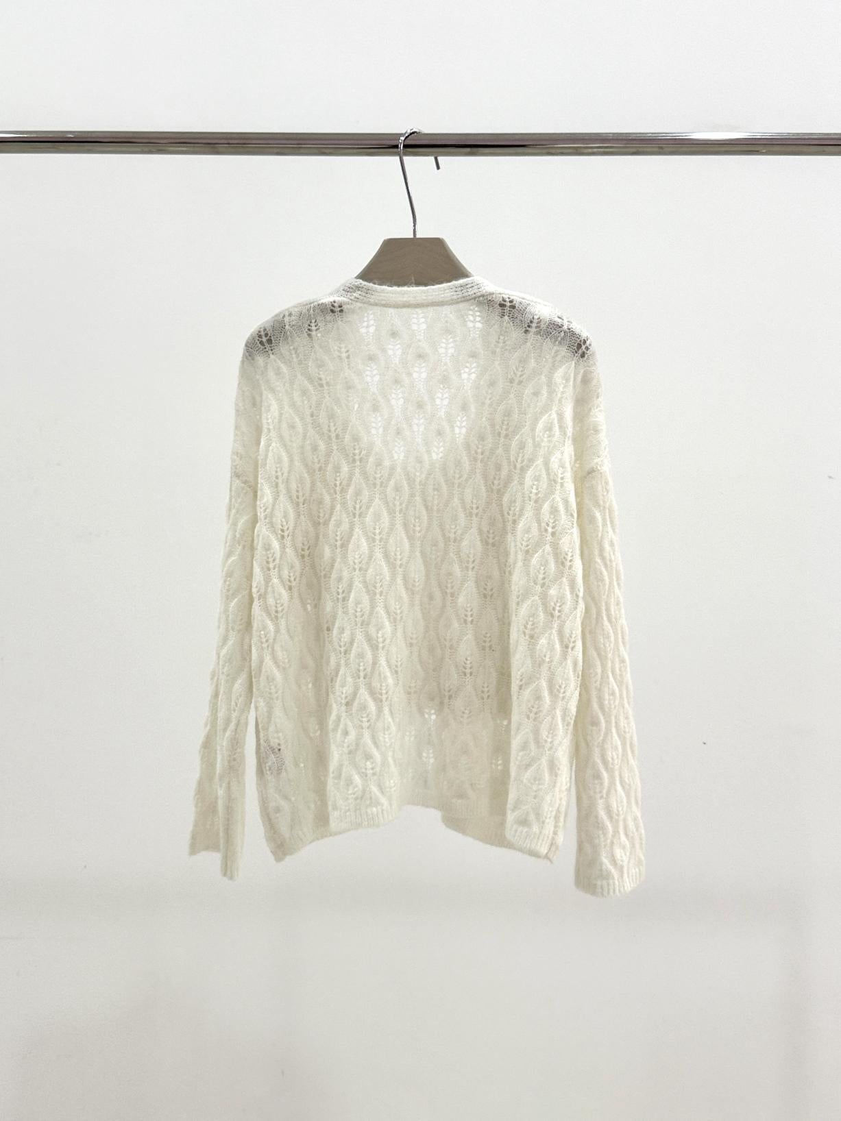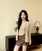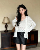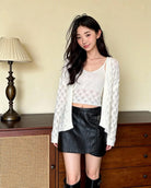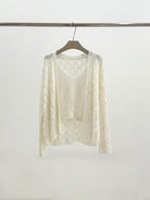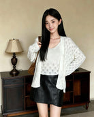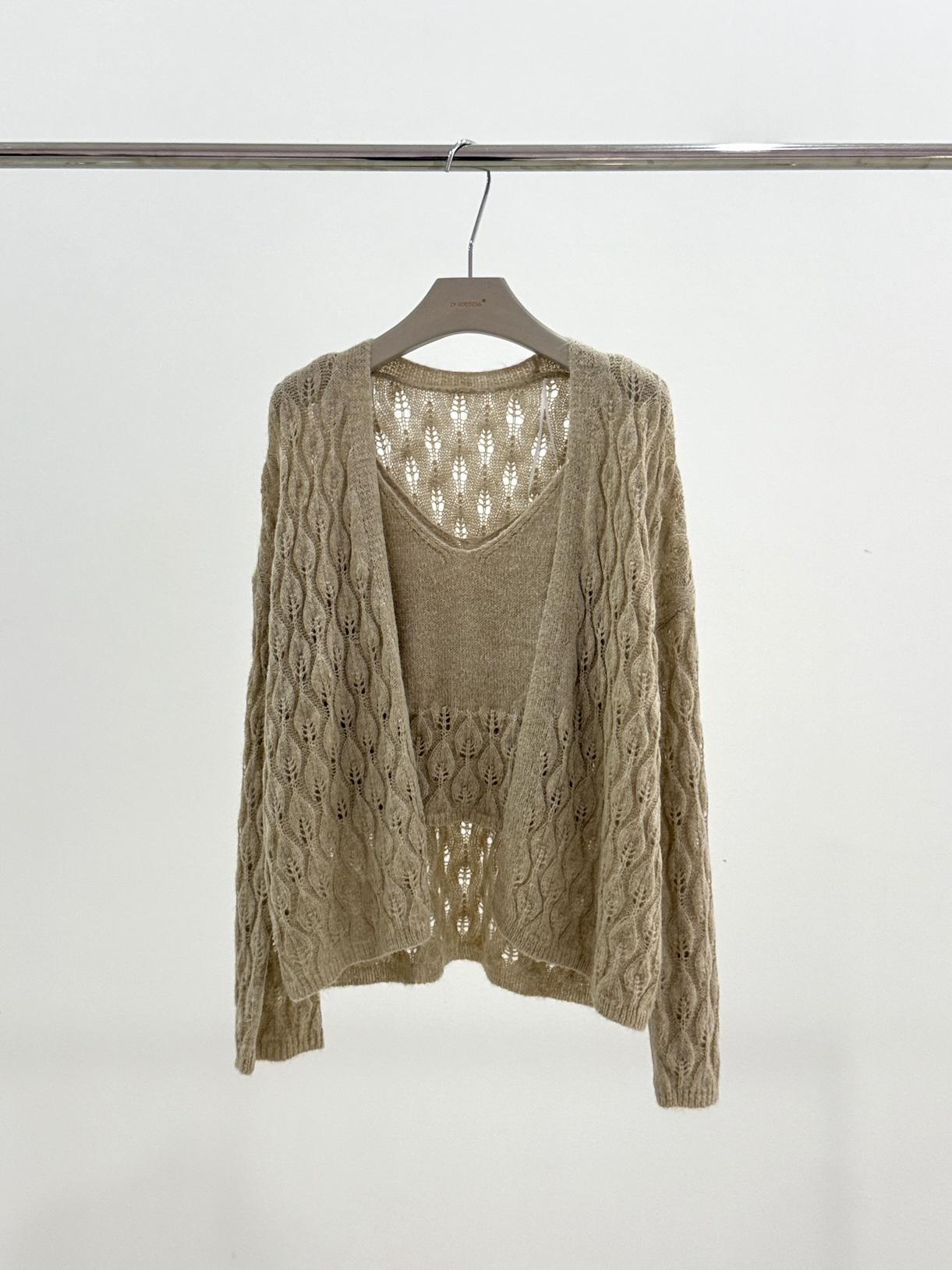 【C8240】韓版溫柔特色樹葉肌理感鏤空氣質針織開衫+吊帶背心套裝(含10%羊毛)
