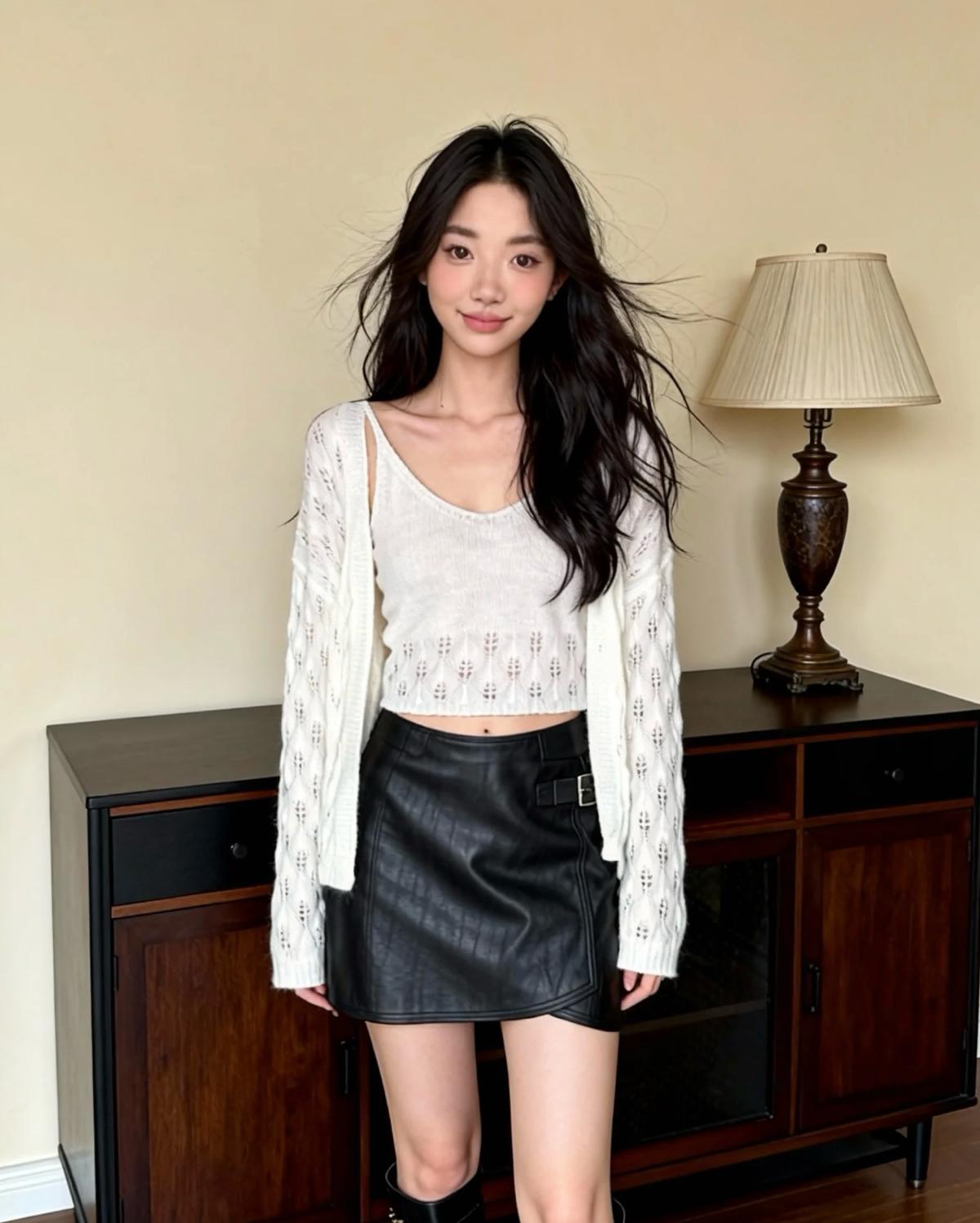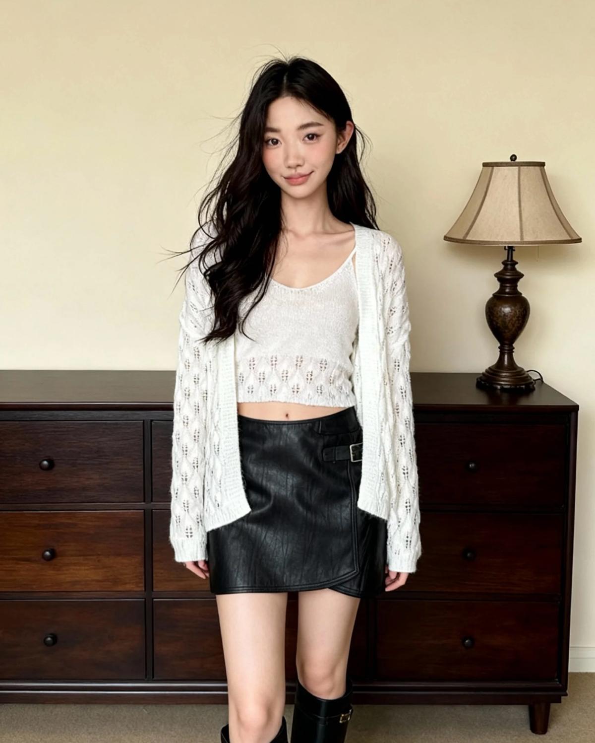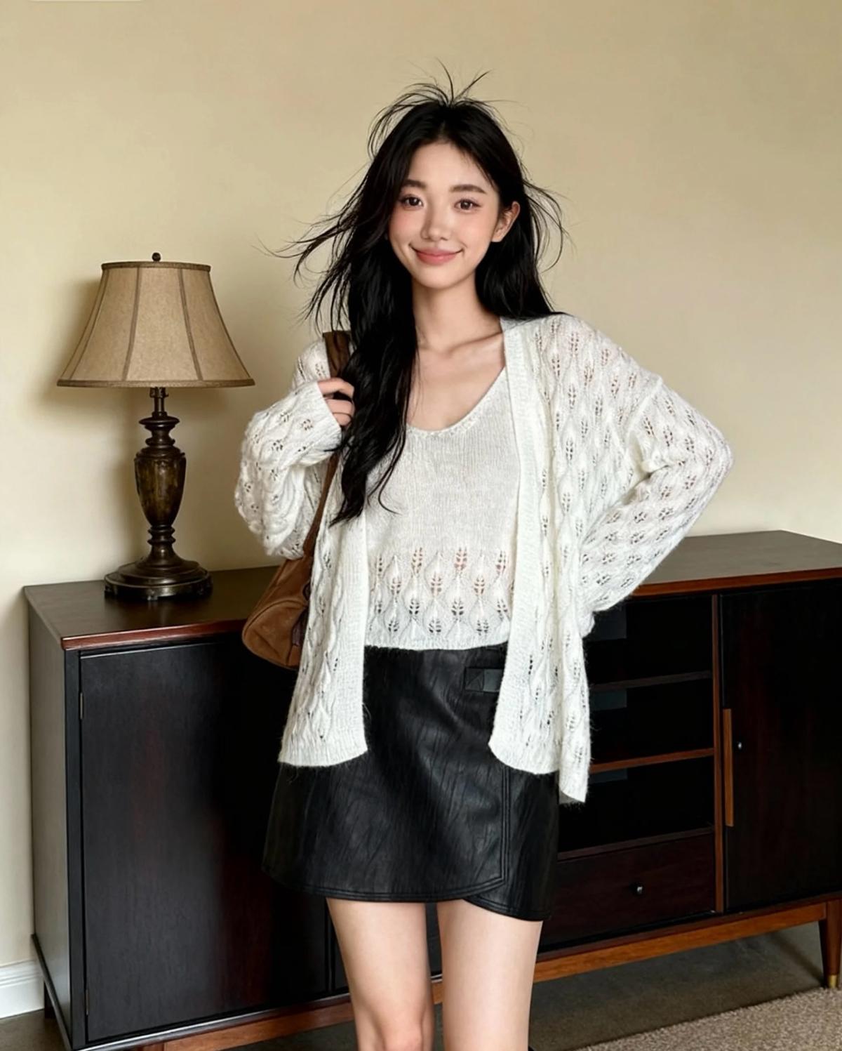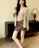 【C8240】韓版溫柔特色樹葉肌理感鏤空氣質針織開衫+吊帶背心套裝(含10%羊毛)